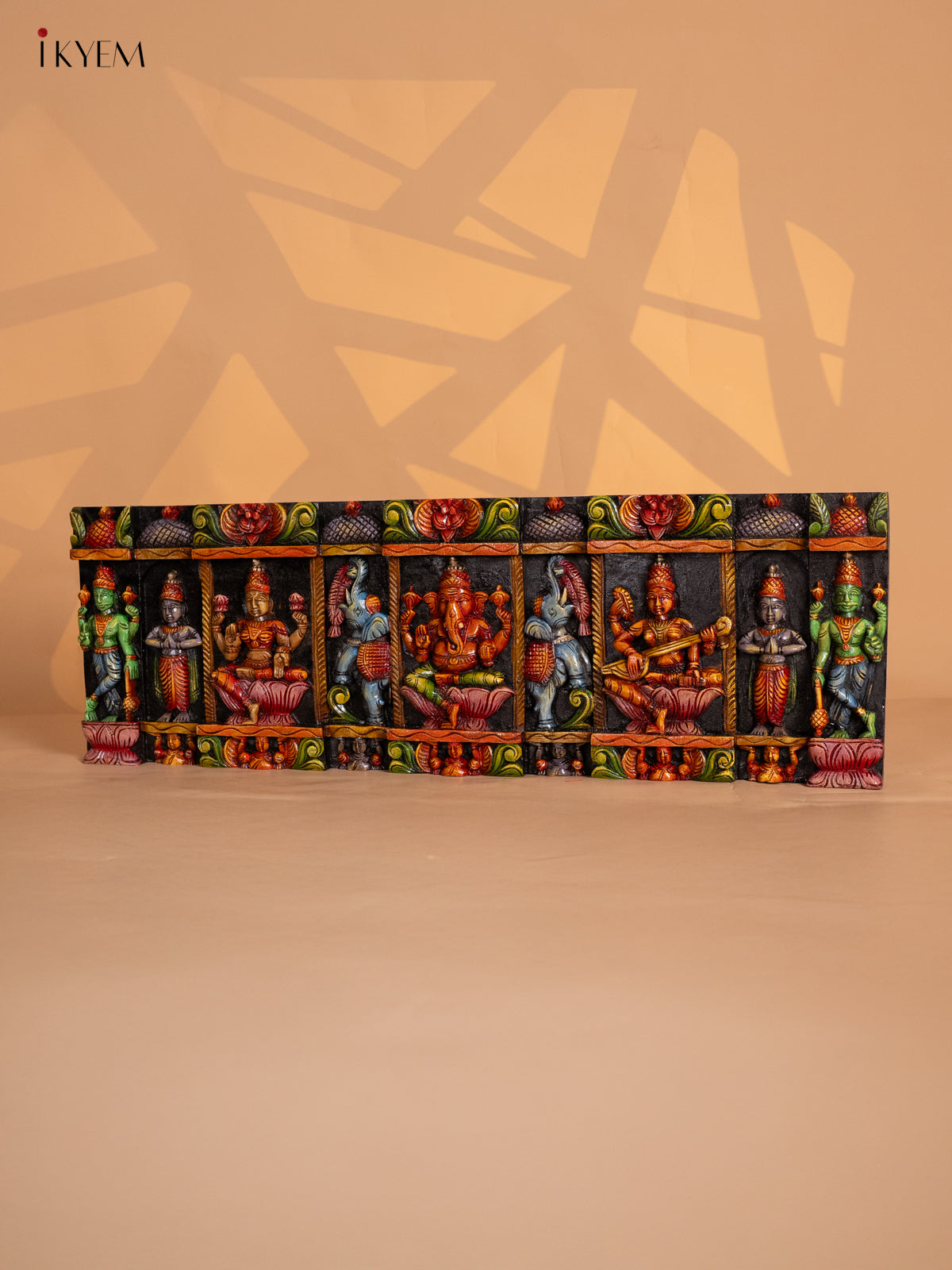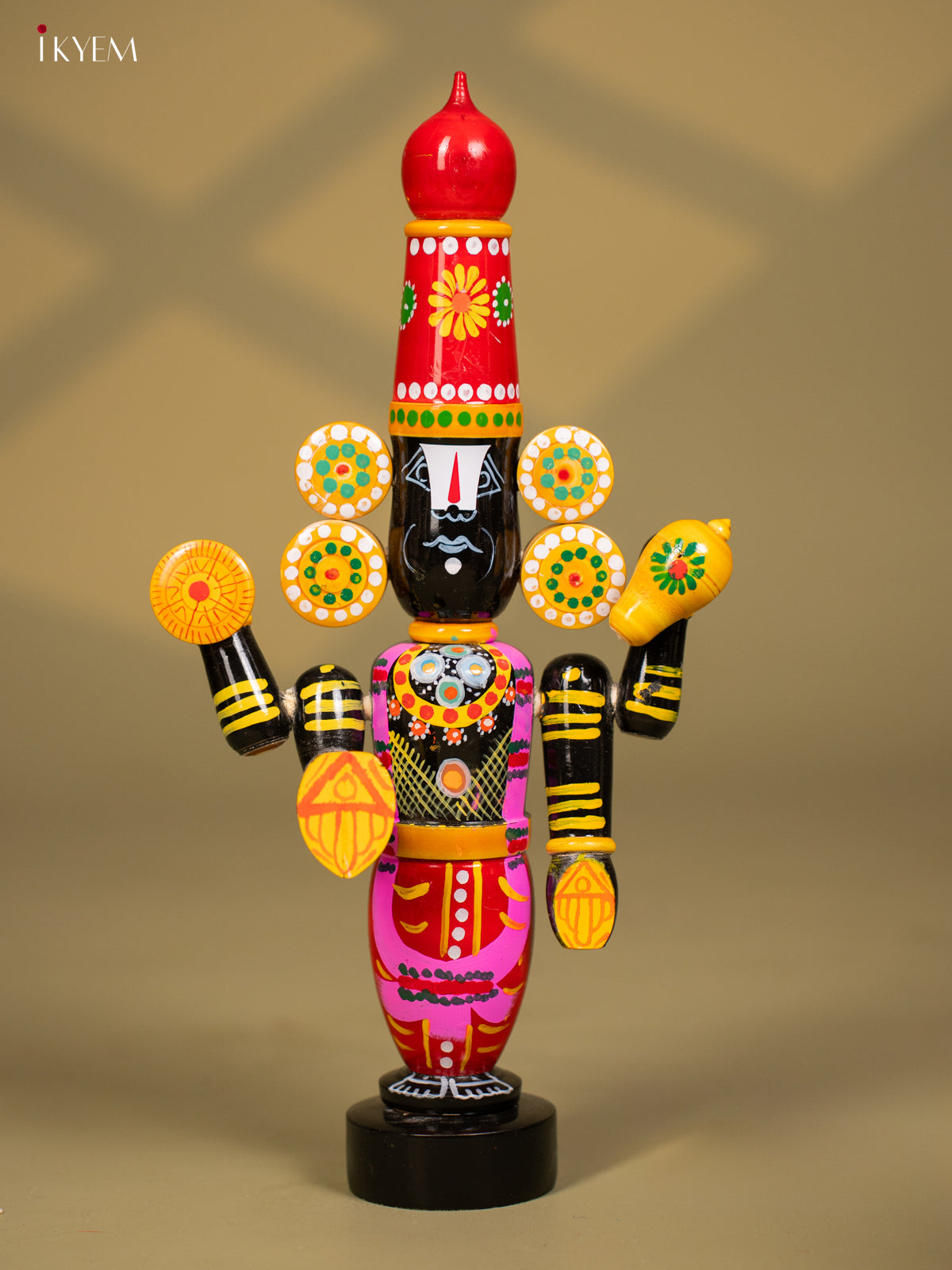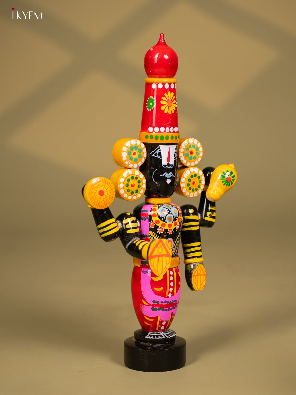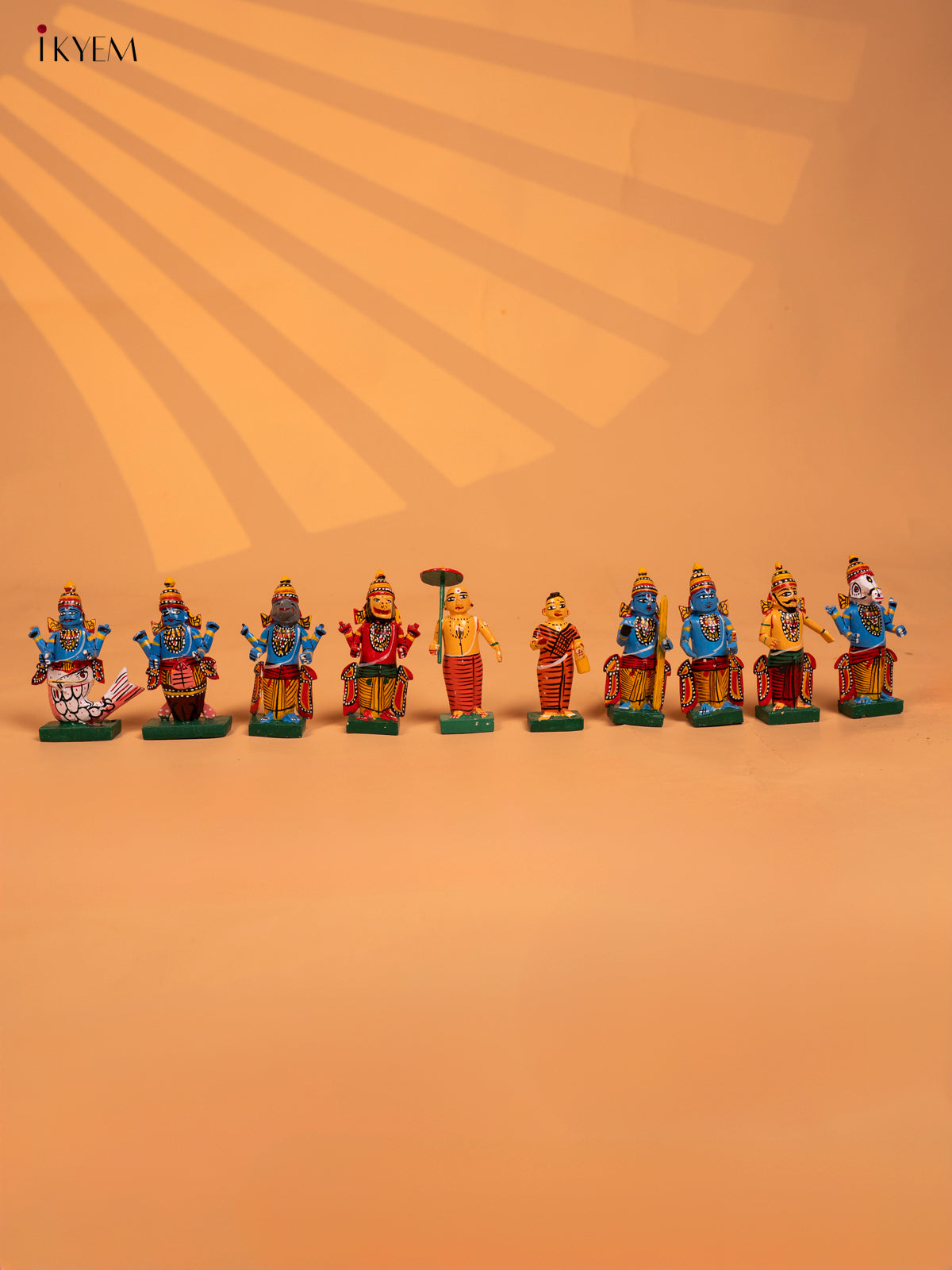 Wooden Octagonal Frame with Kondapalli Dasavatharam Idols - Yellow - KD28116