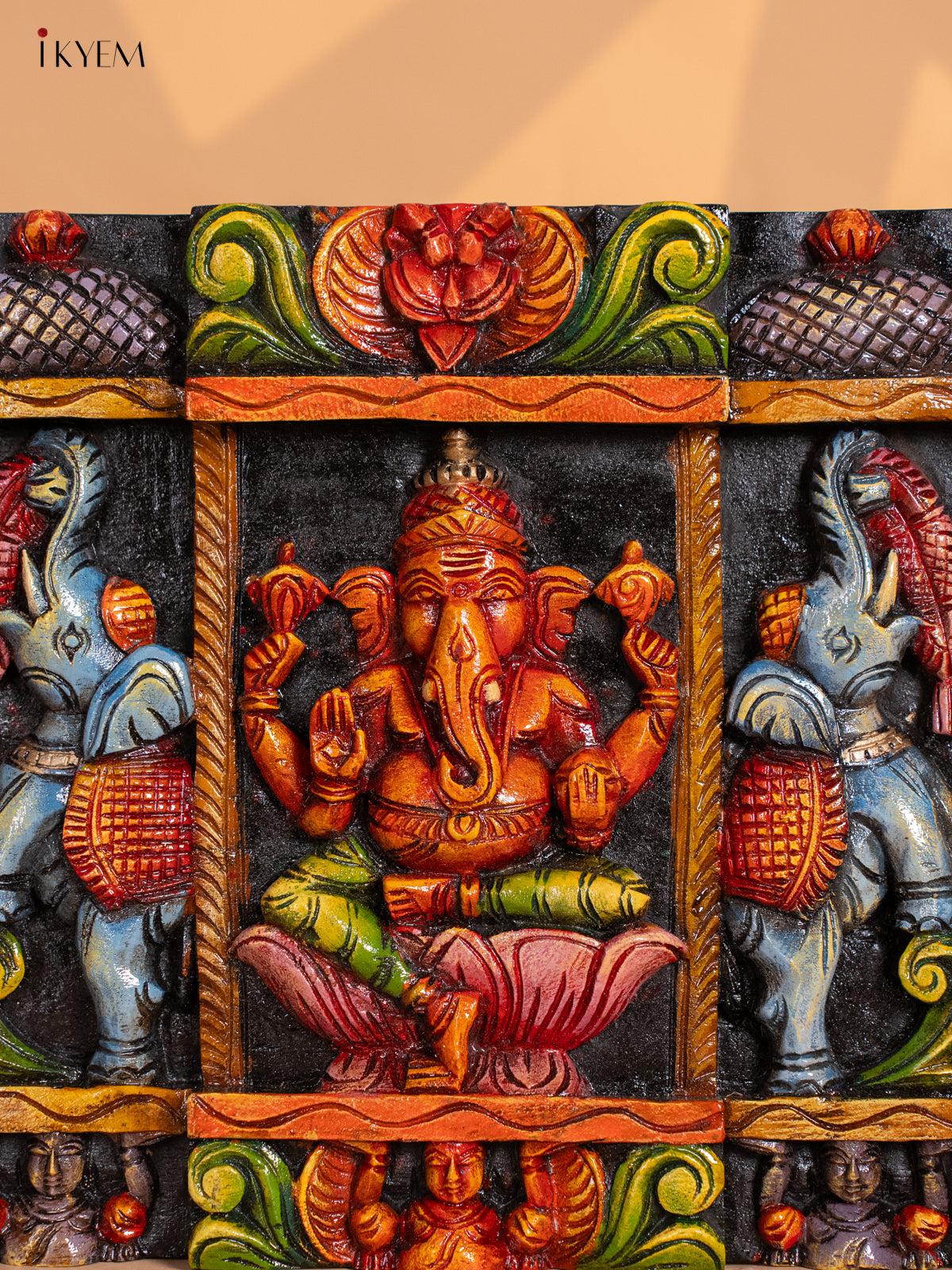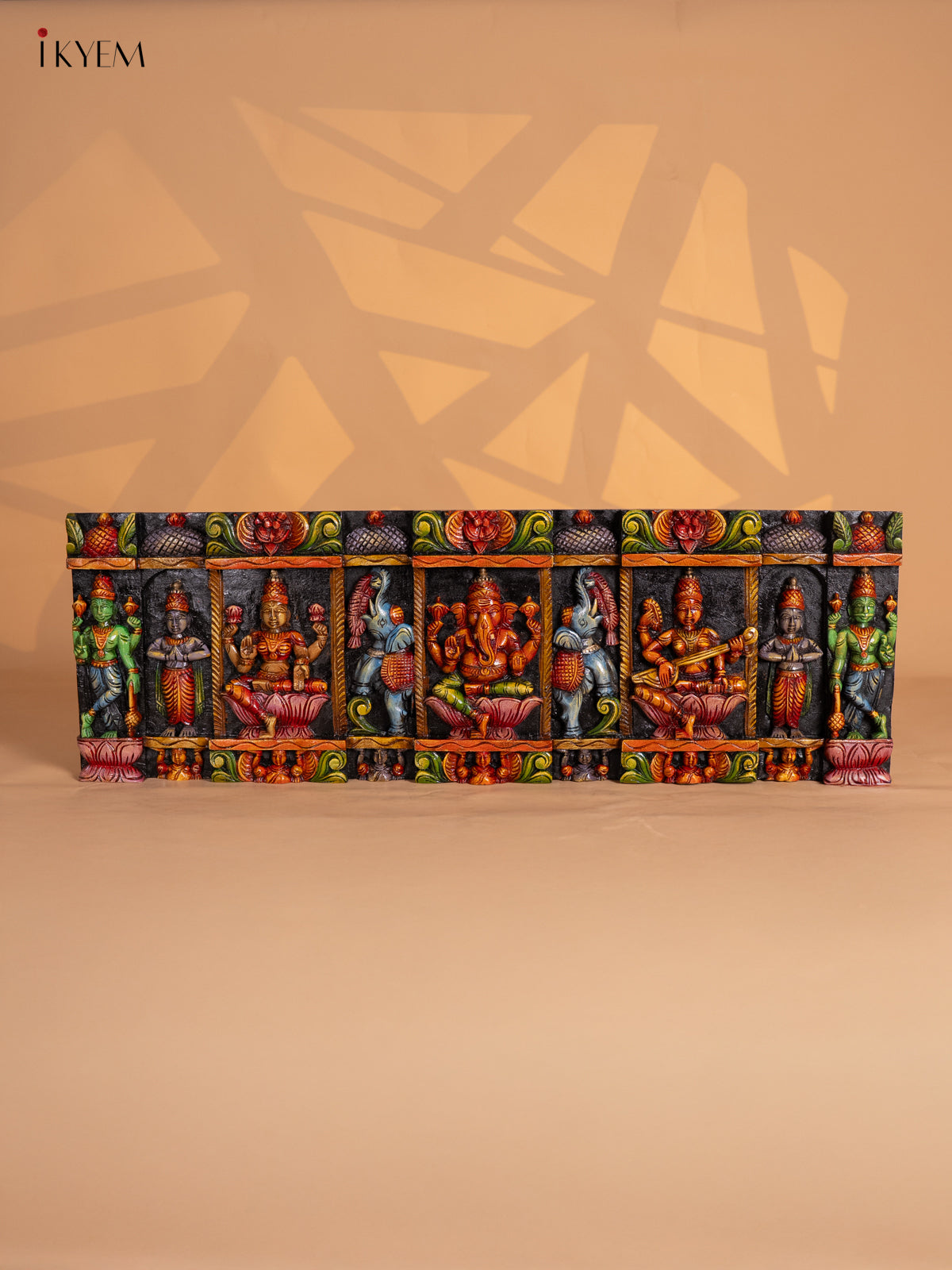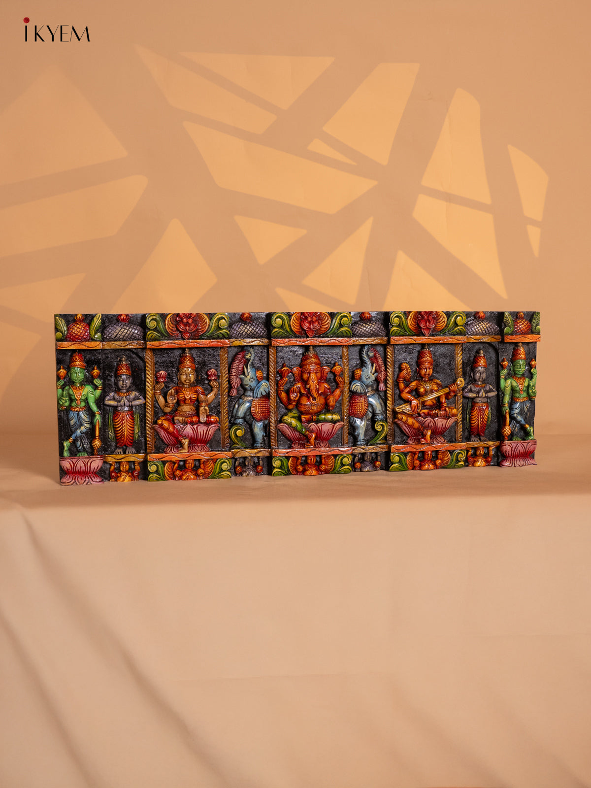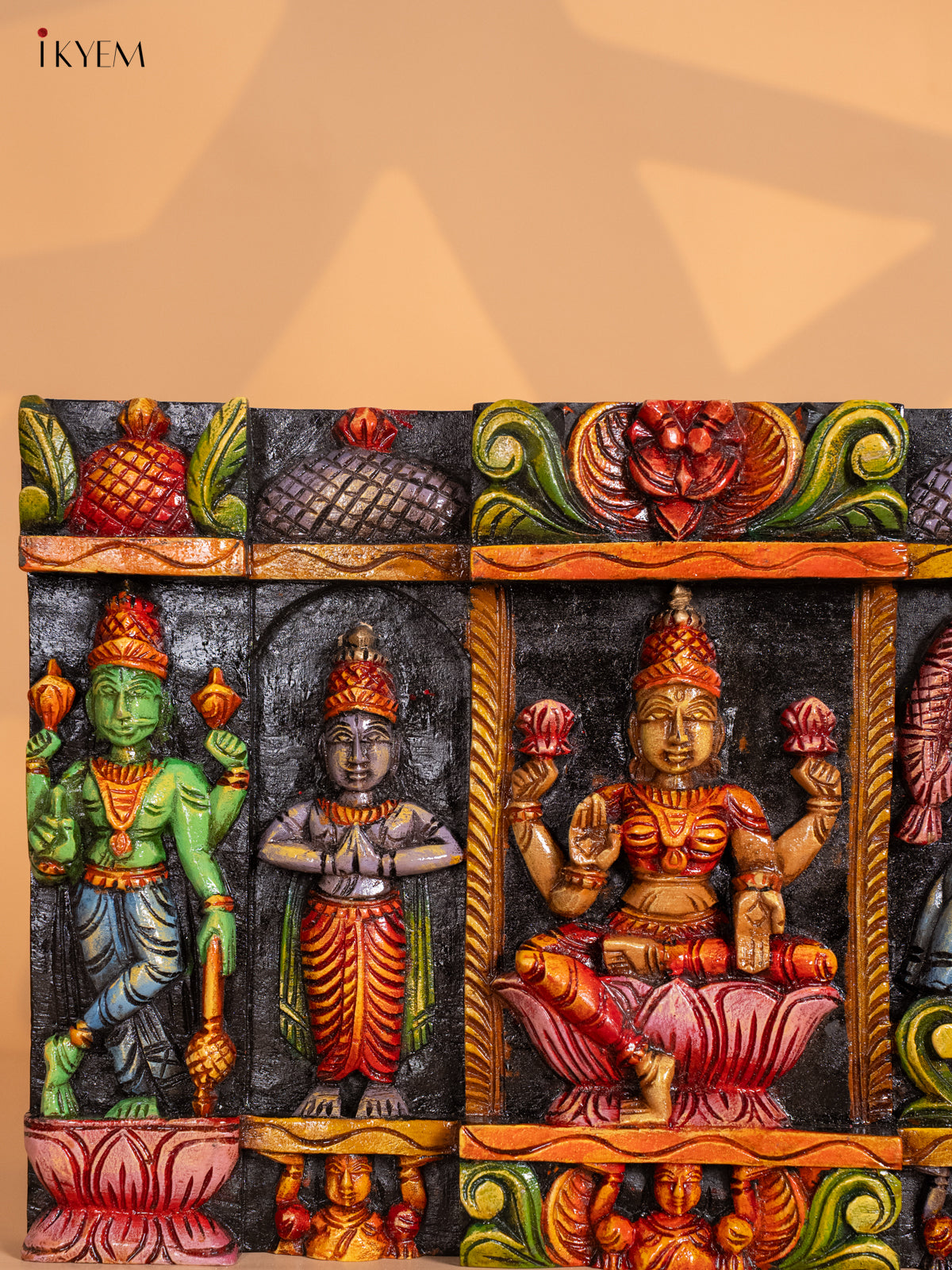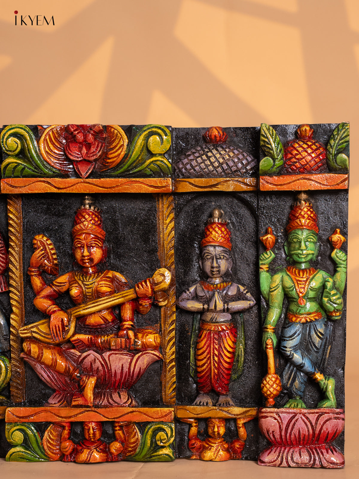 Wooden Octagonal Frame with Kondapalli Dasavatharam Idols - Yellow - KD28116