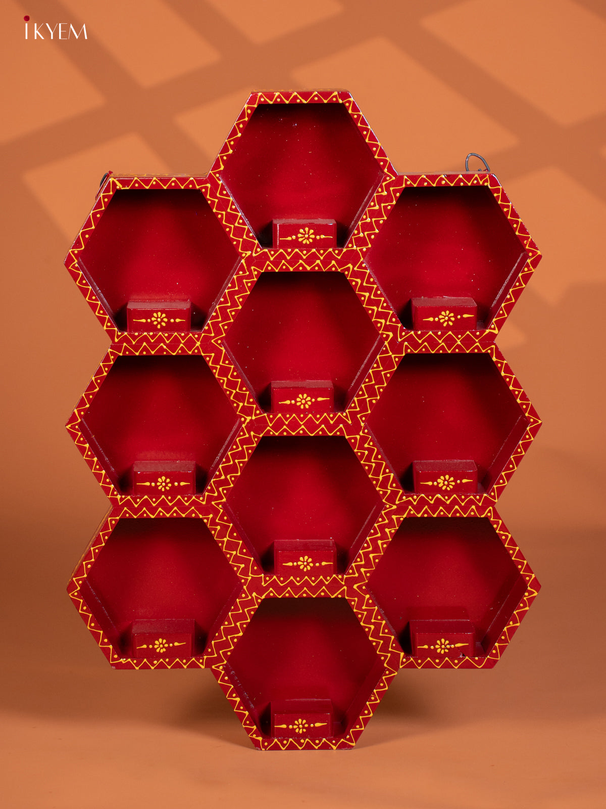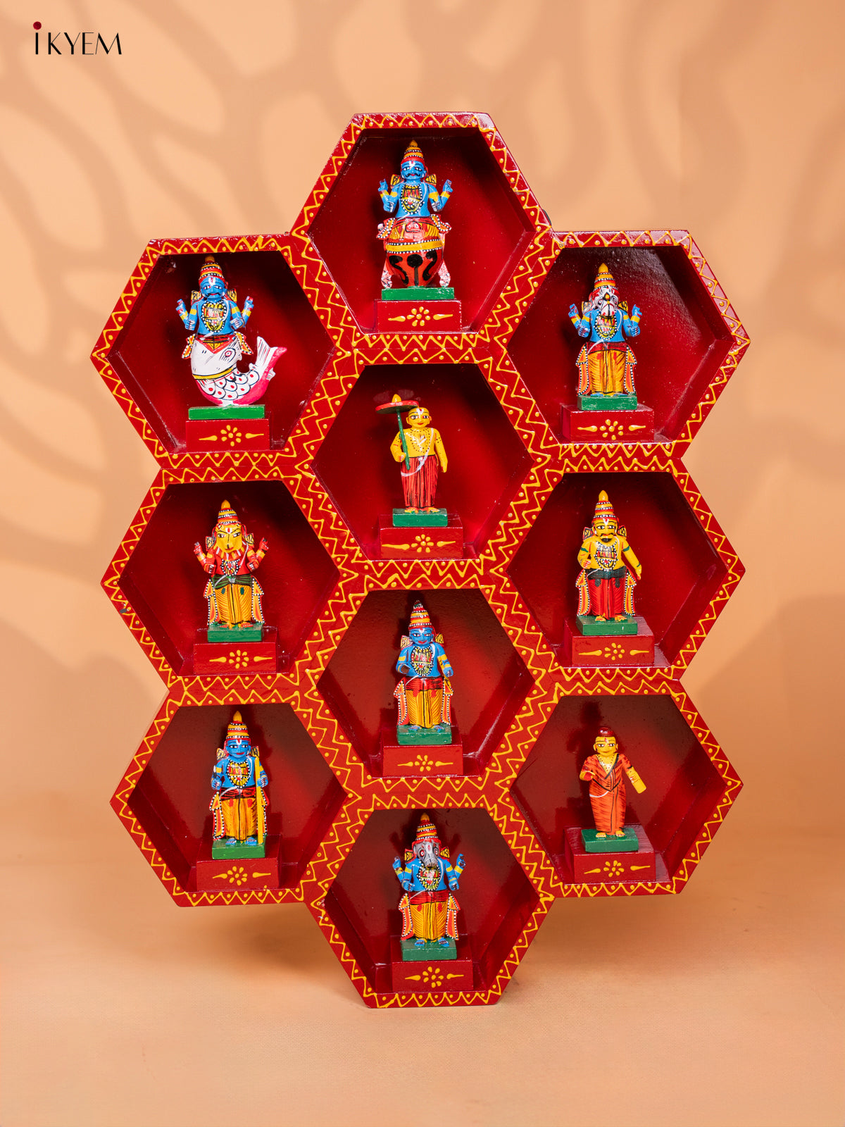Wooden Octagonal Frame with Kondapalli Dasavatharam Idols - Red - KD28112