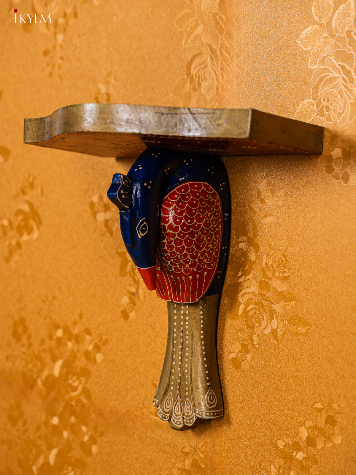 Wooden Peacock Wall Shelf