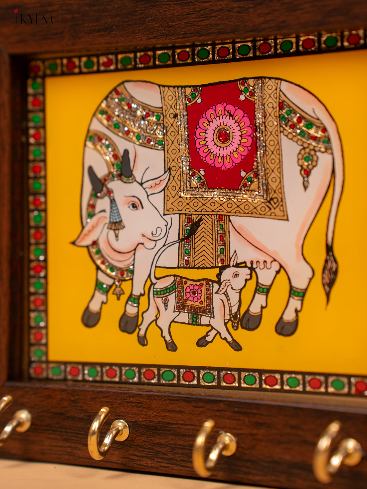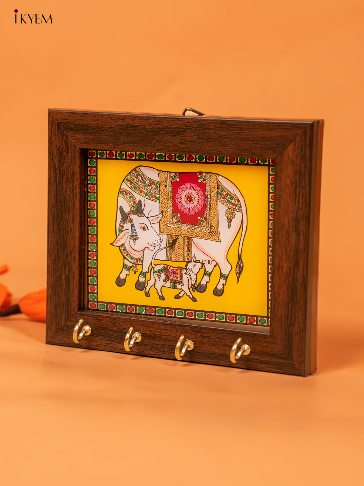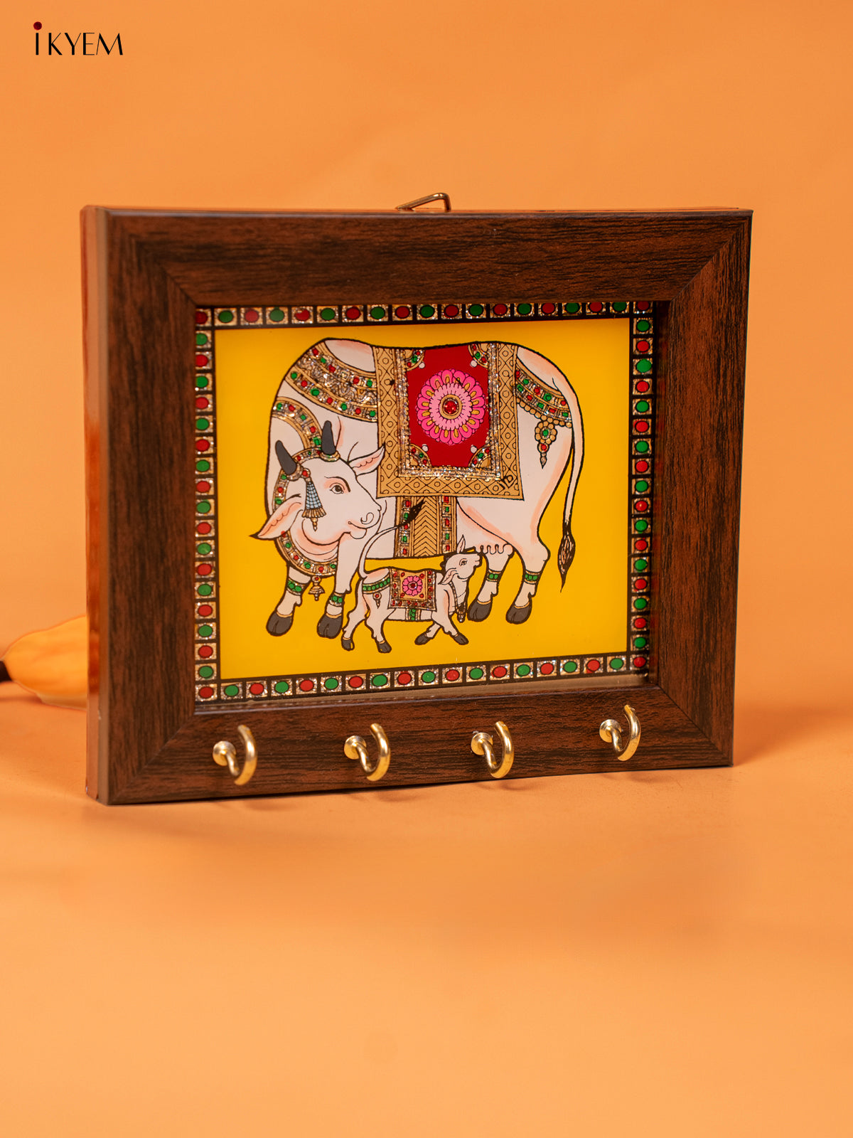 Yellow cow & calf Reverse Glass Painted Keyhanger - KC07118