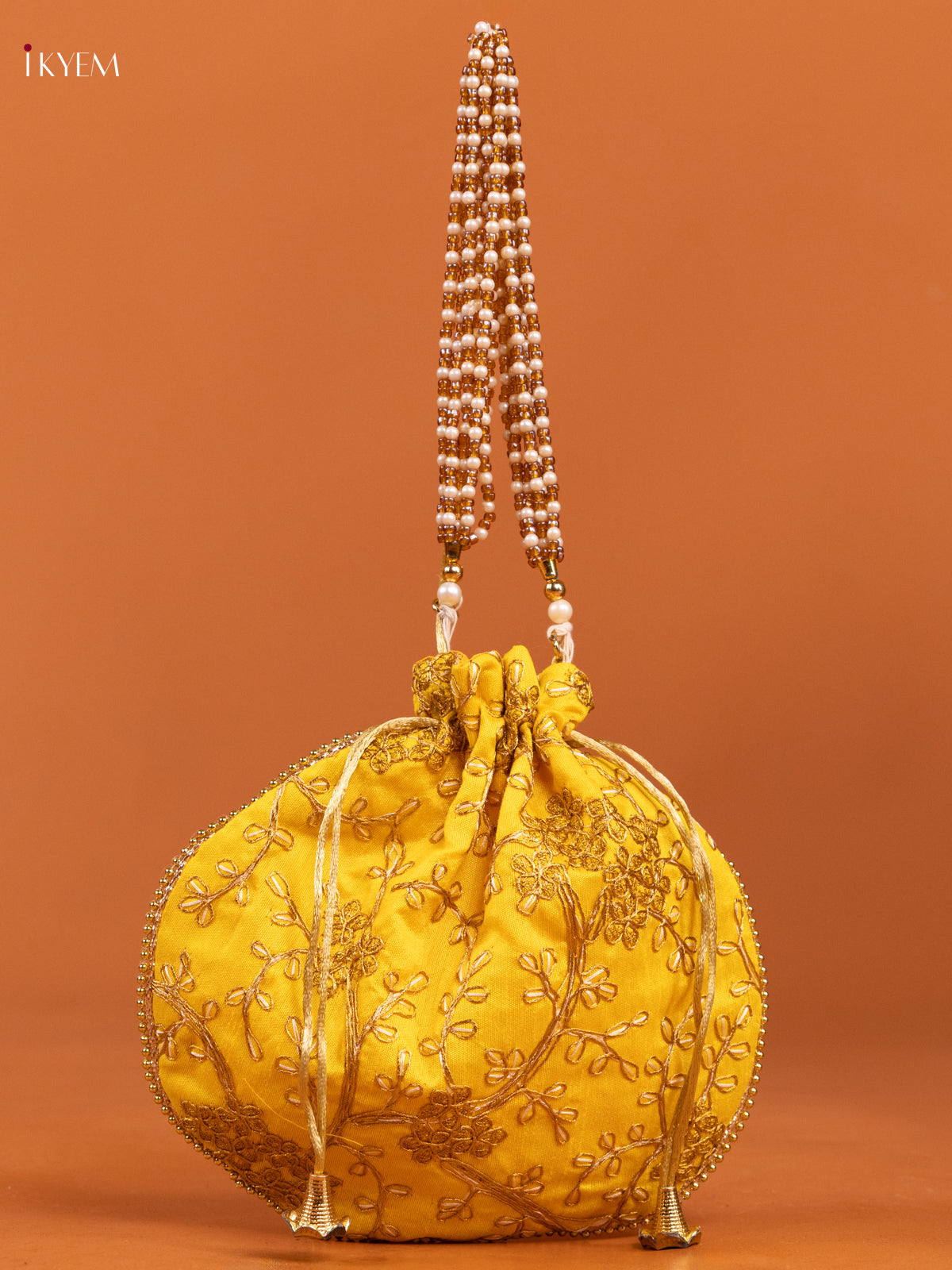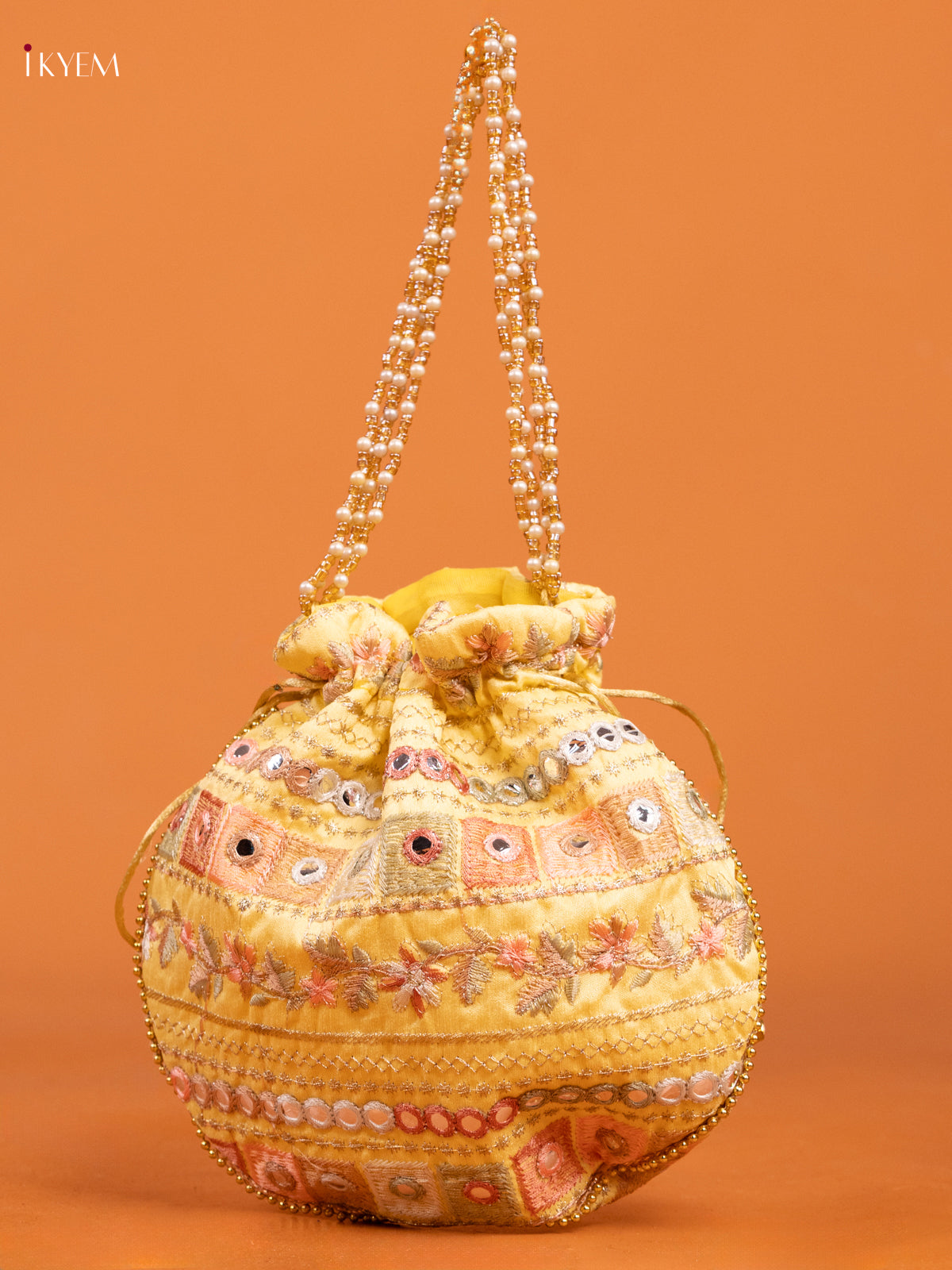 Yellow Embroidered Floral Design Potli Bag - KD26513