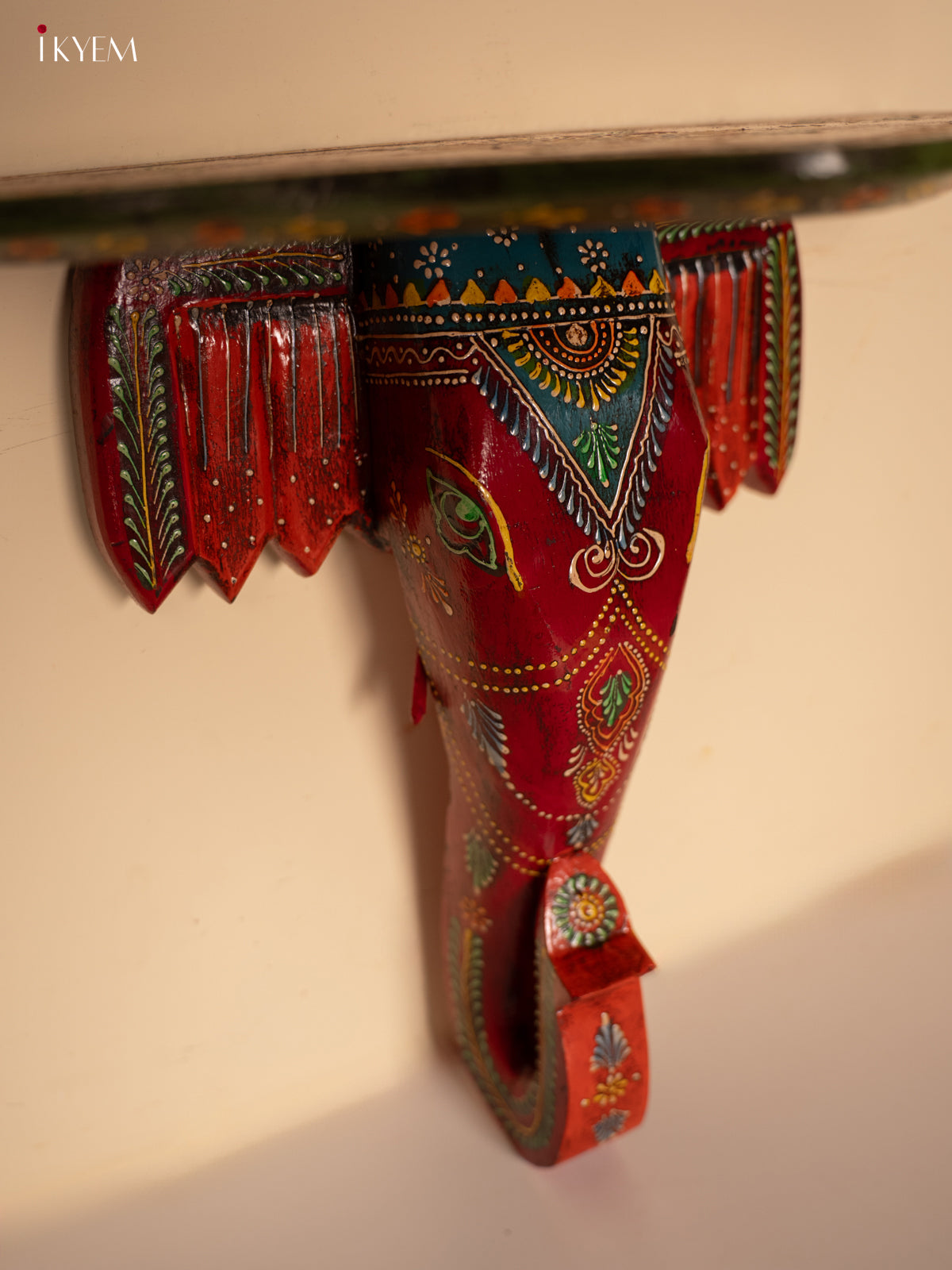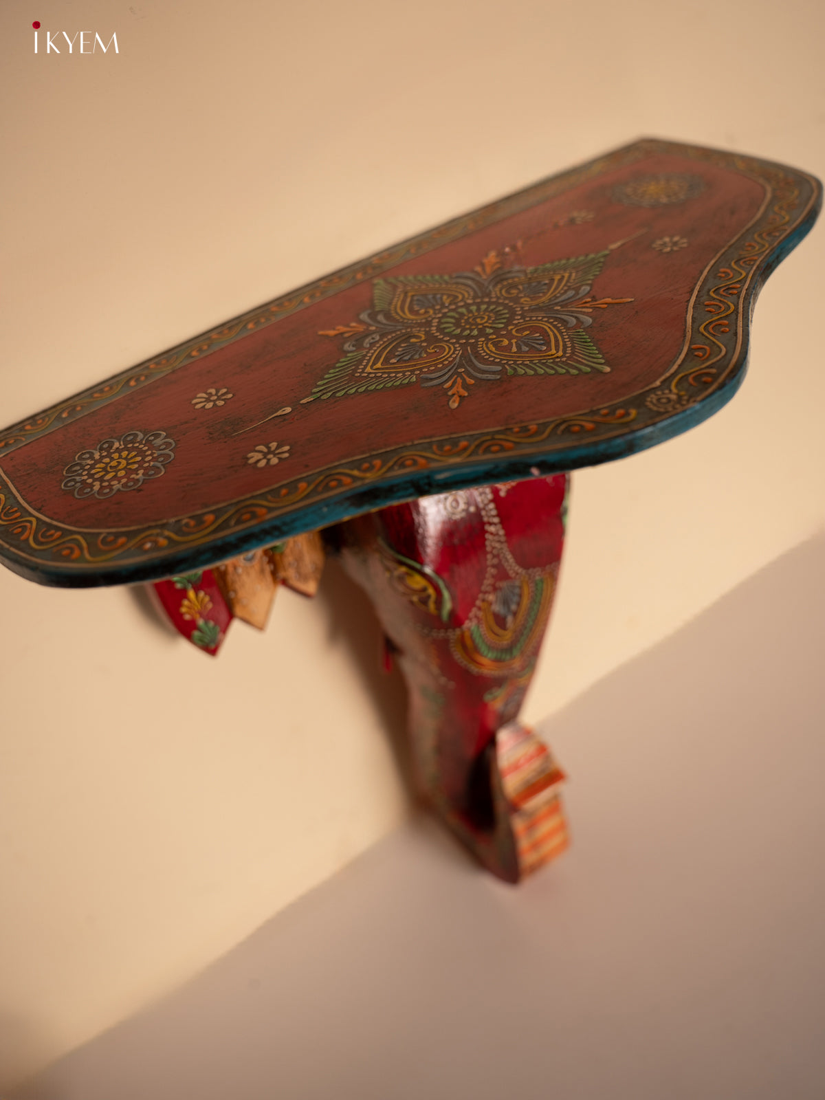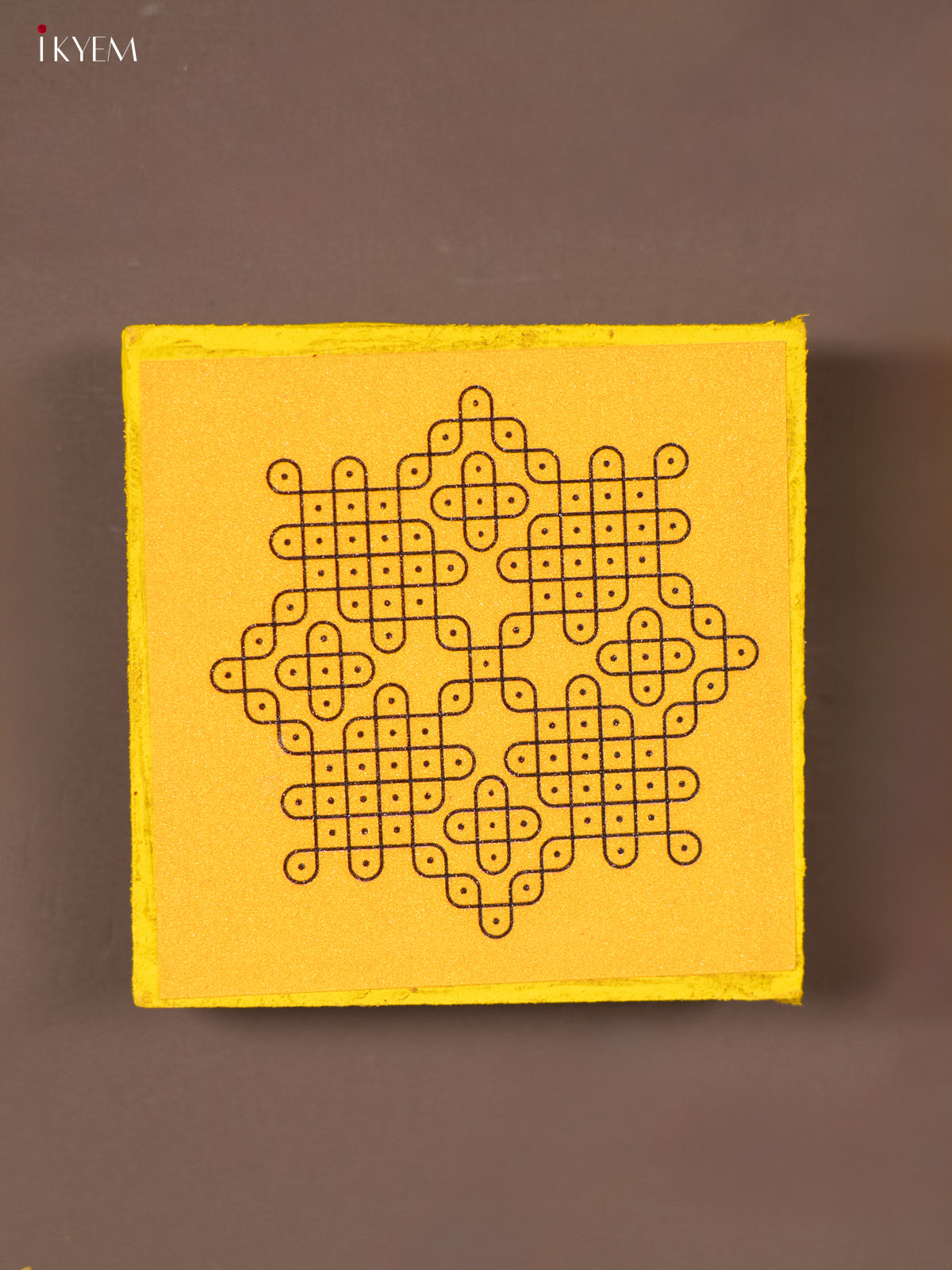 Yellow Kolam Printed Wooden Manai - KE29146
