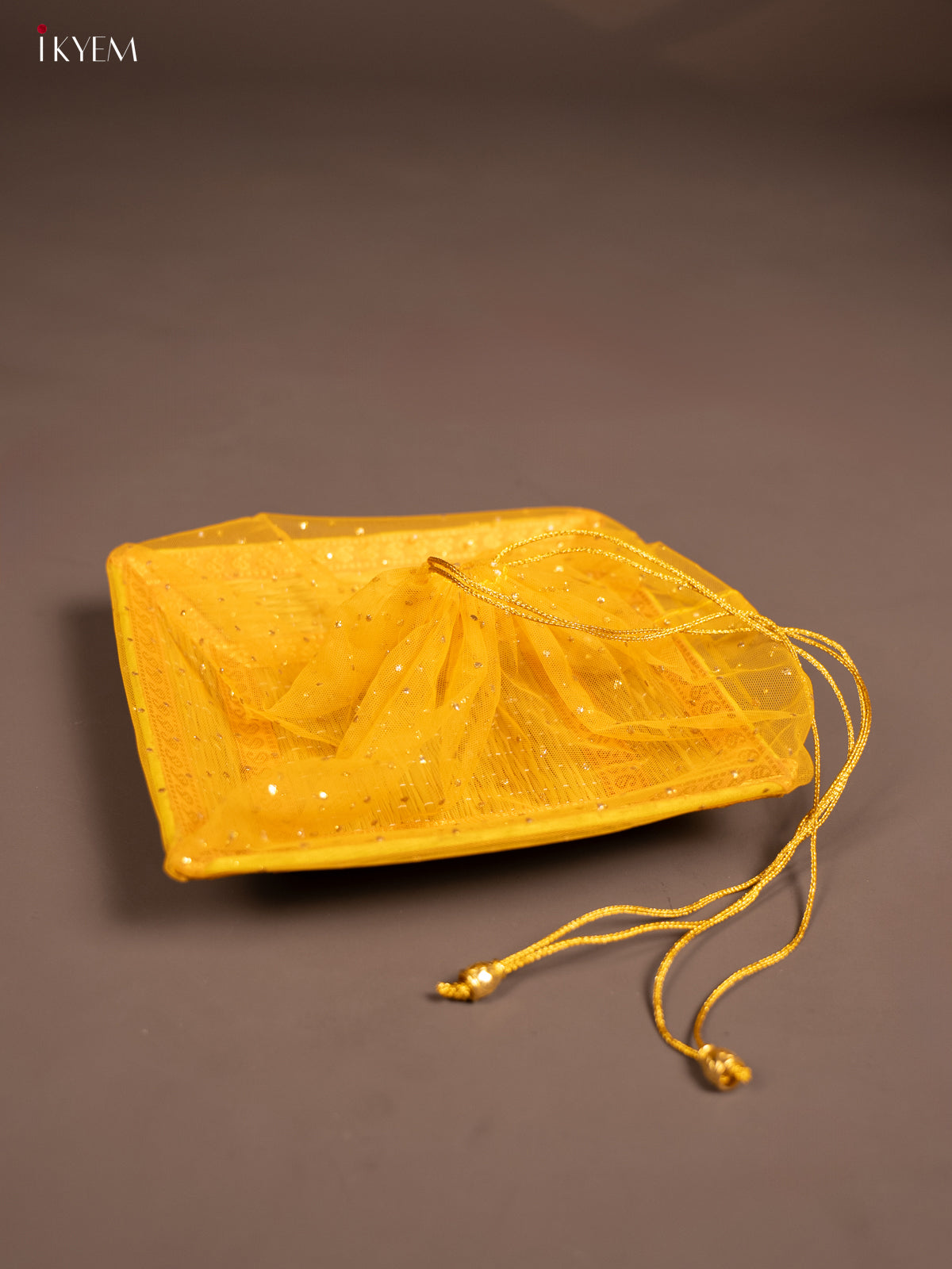 Yellow Korai tray with Potli - KE29176