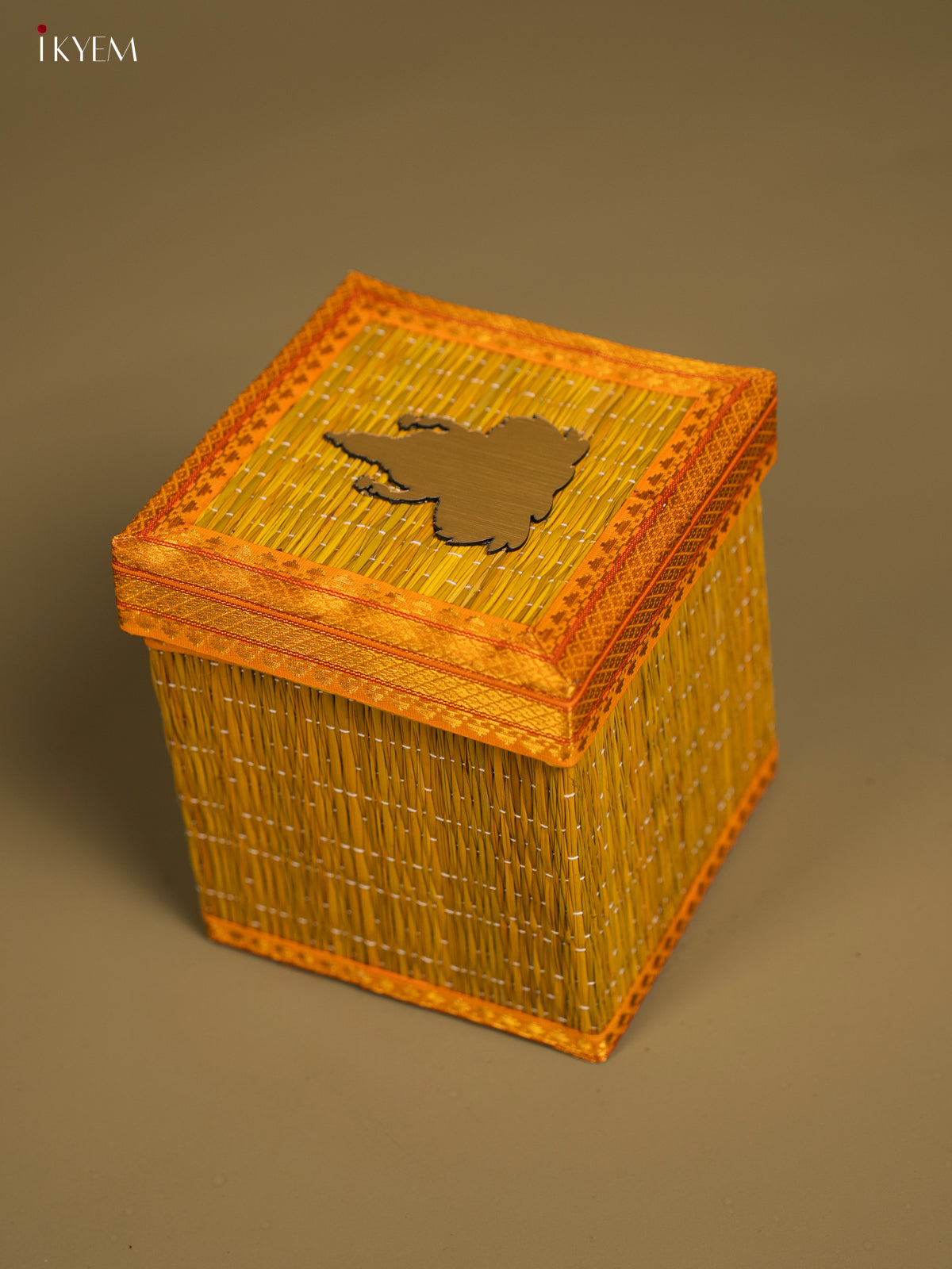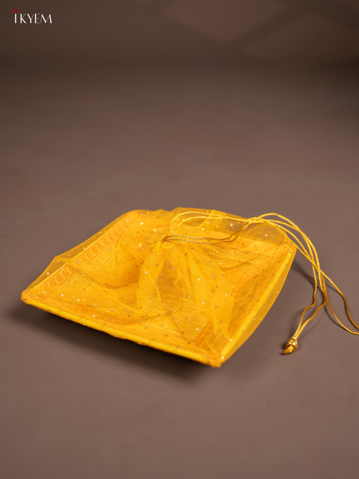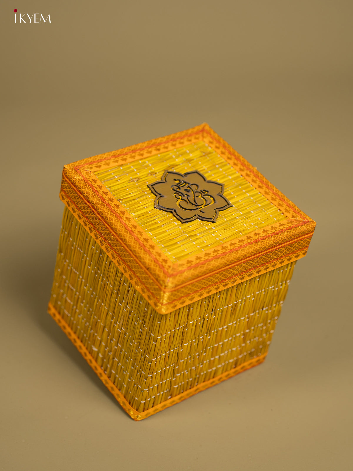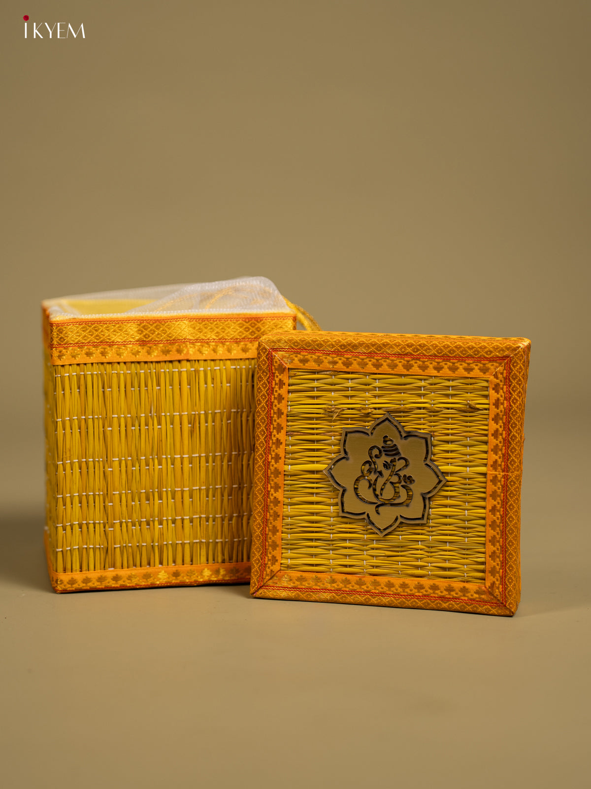 Yellow Korai Gift Box with Net Potli & Ganesha Motif - KF25164