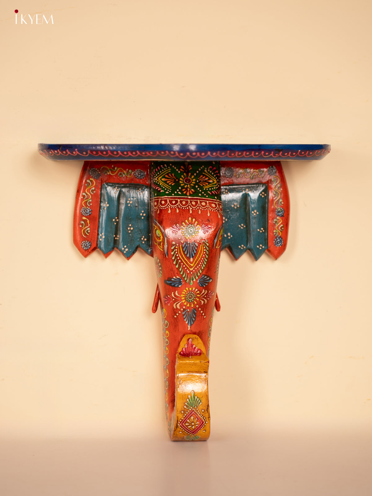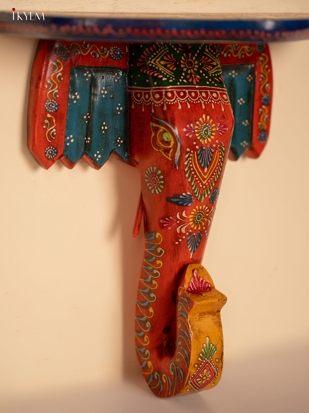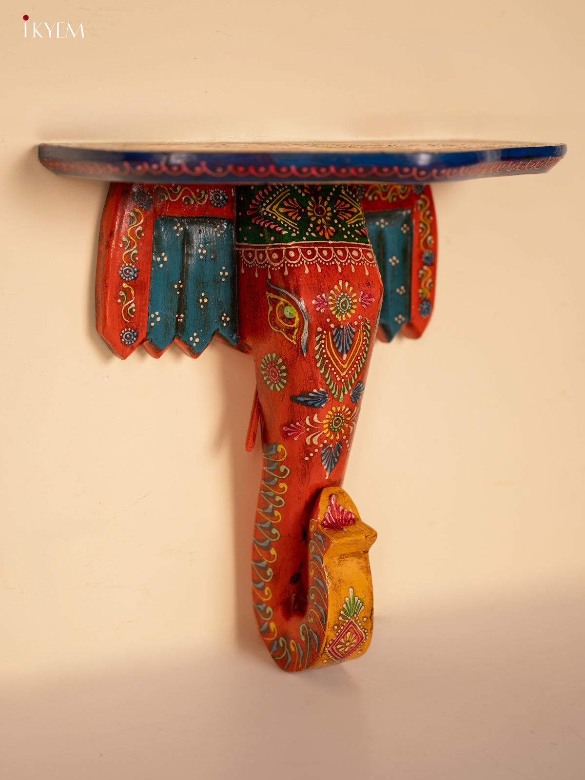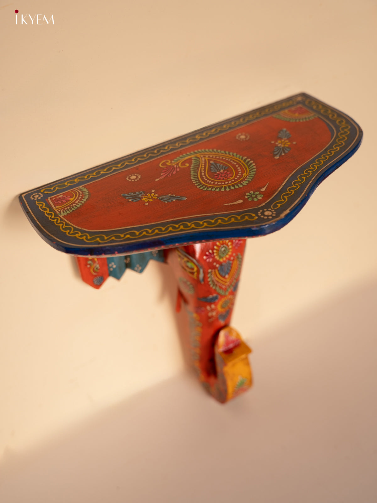 Yellow & Blue Kolam Printed Wooden Manai - KE29162
