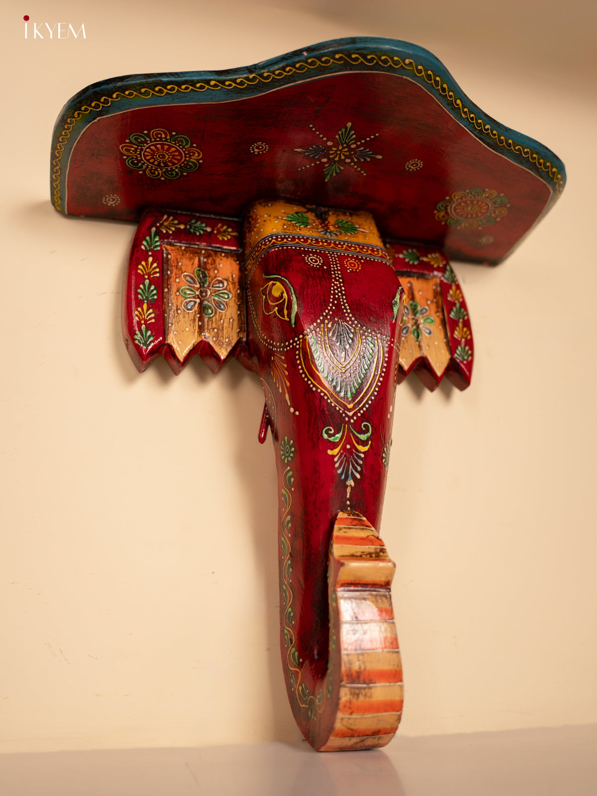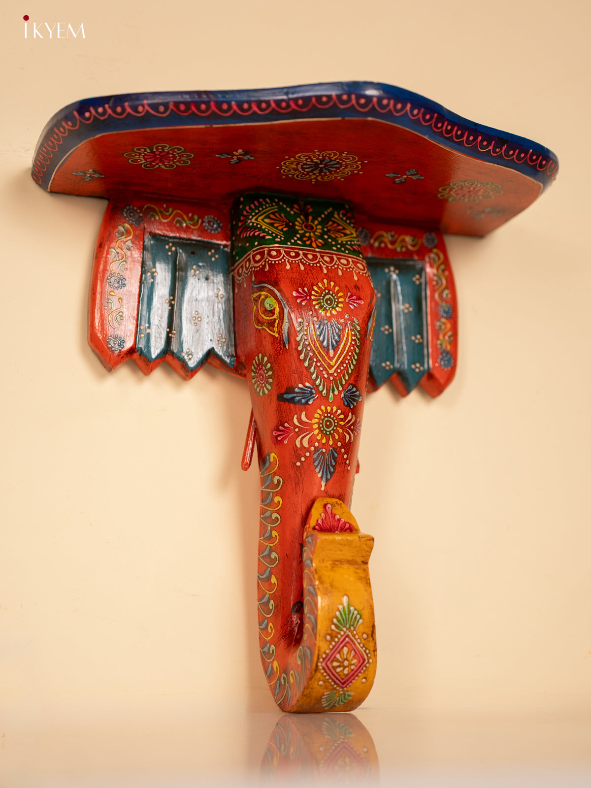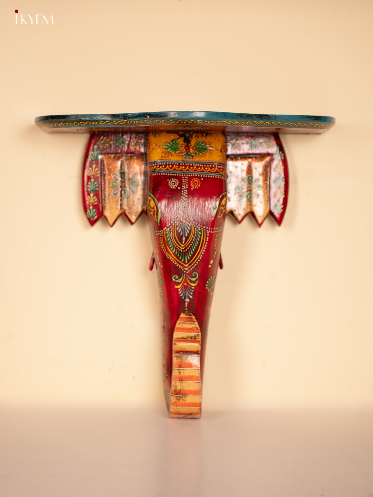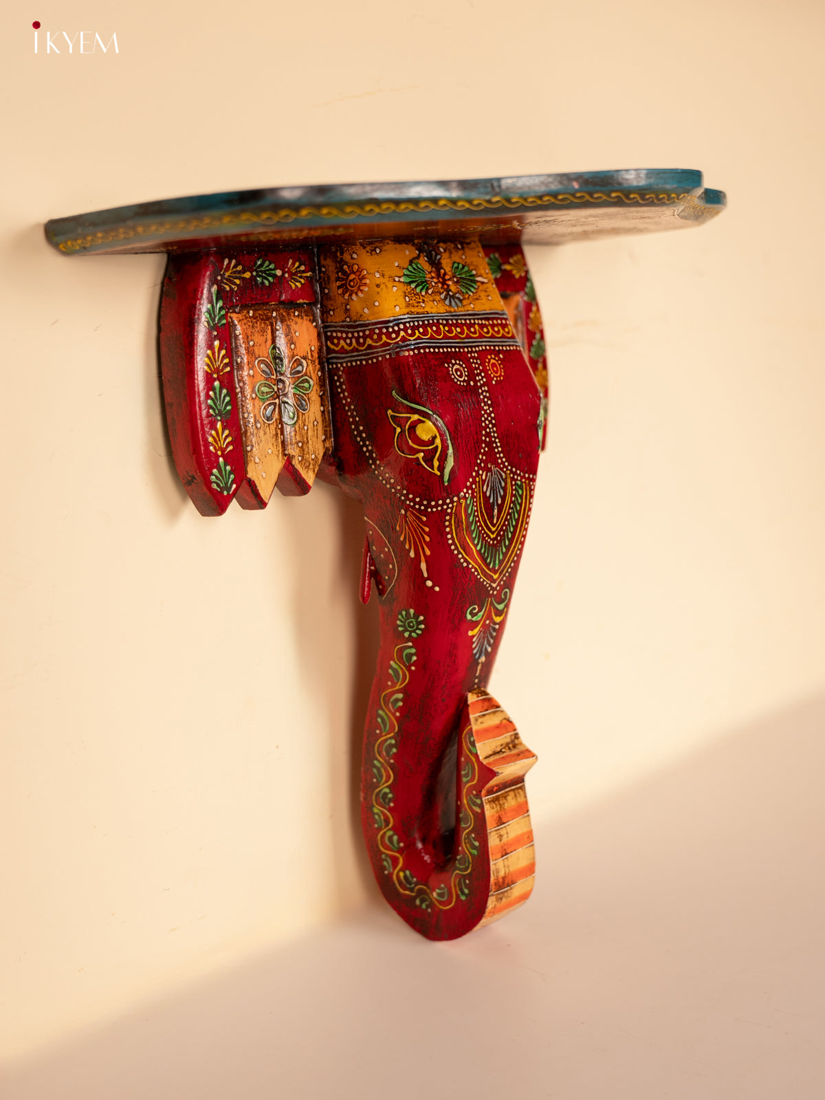 Yellow & Blue Kolam Printed Wooden Manai - KE29162