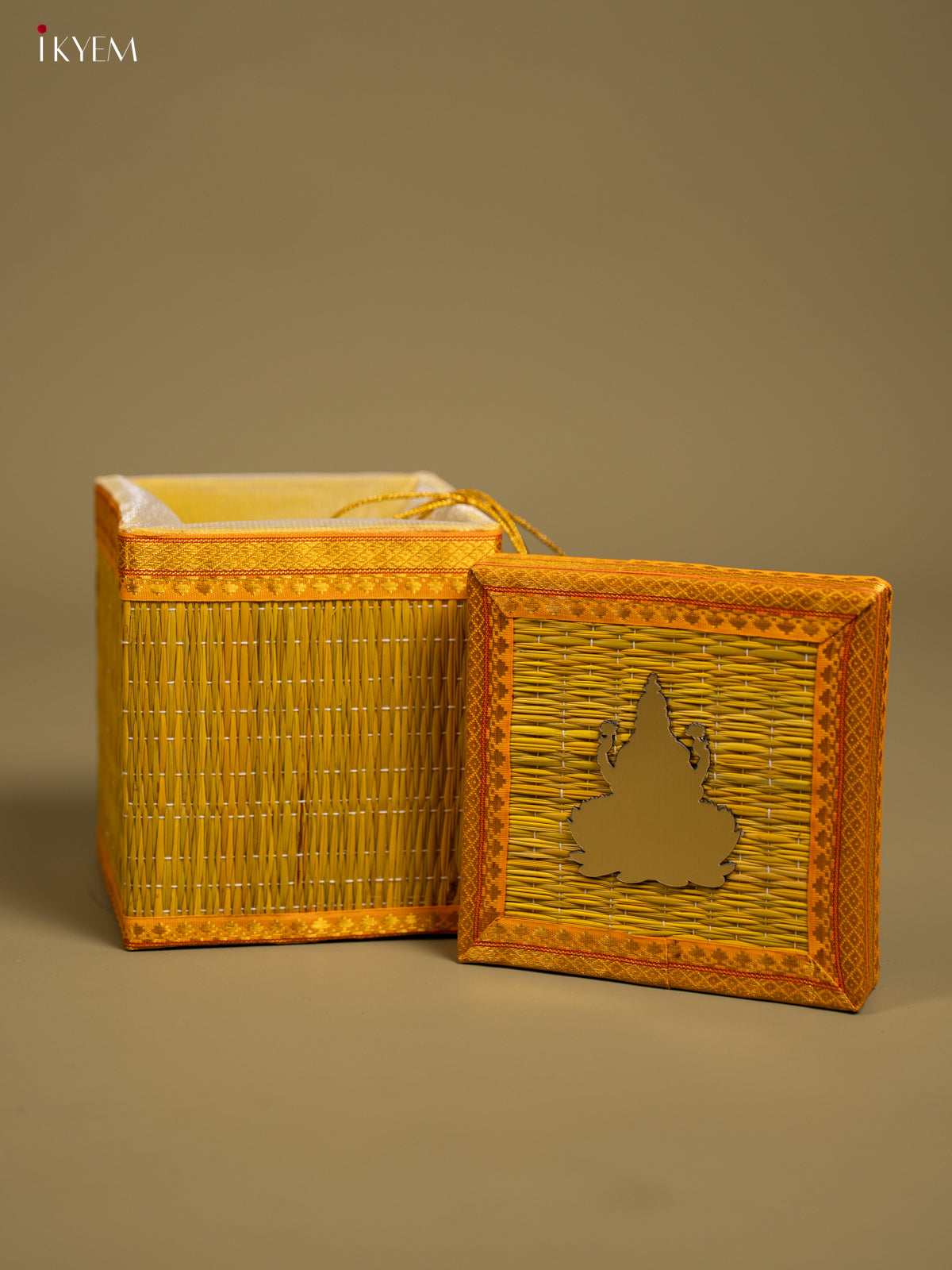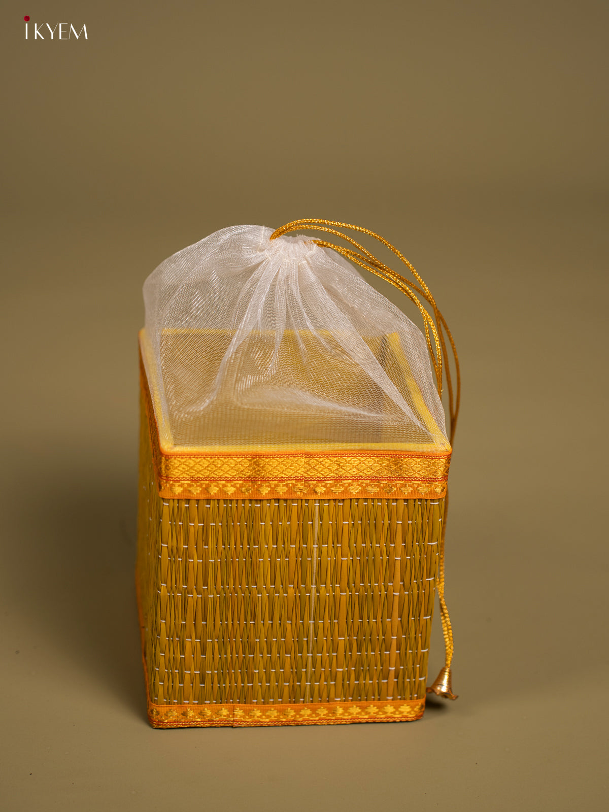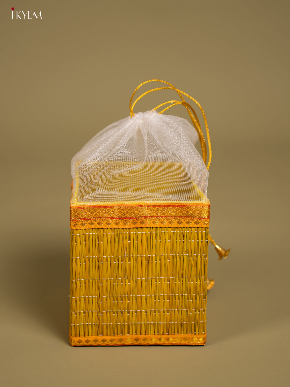 Yellow Korai Gift Box with Net Potli & Lakshmi Motif - KF25163