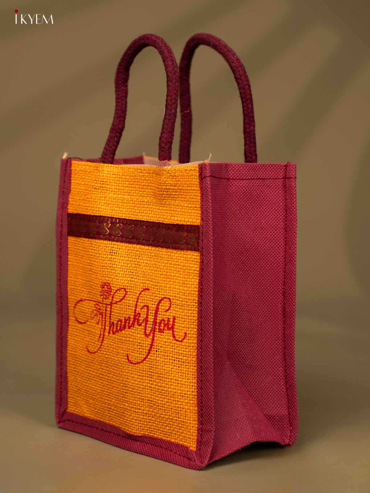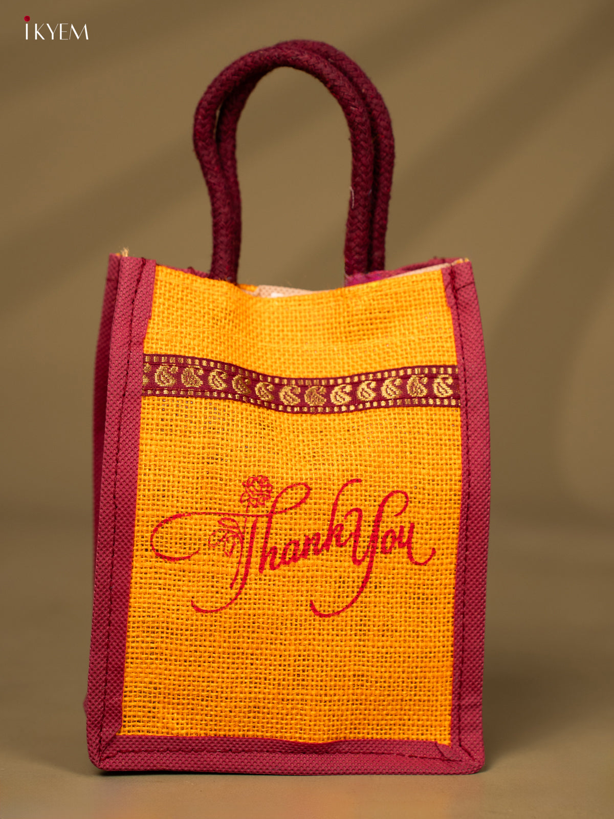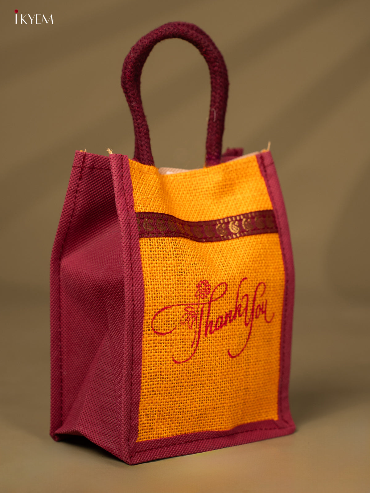 Yellow & Maroon Colour "Thank You" Printed Jute Bag - KD04126