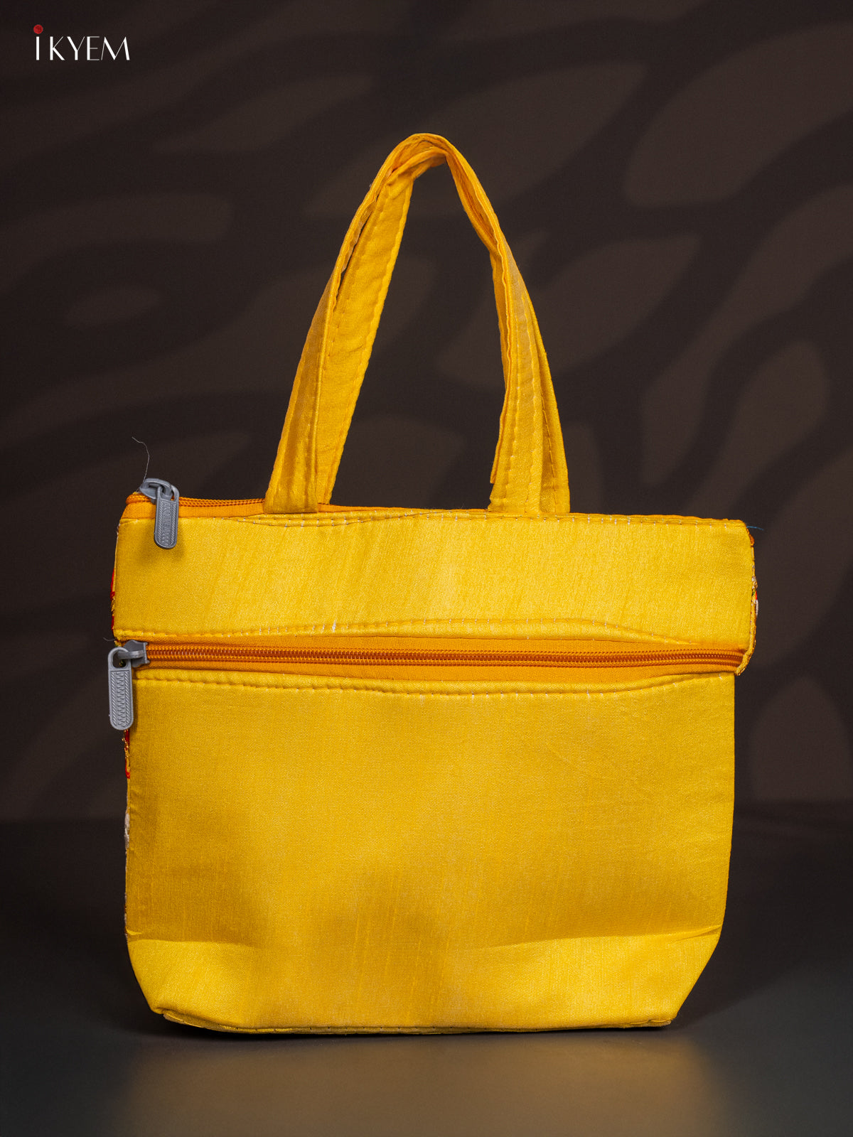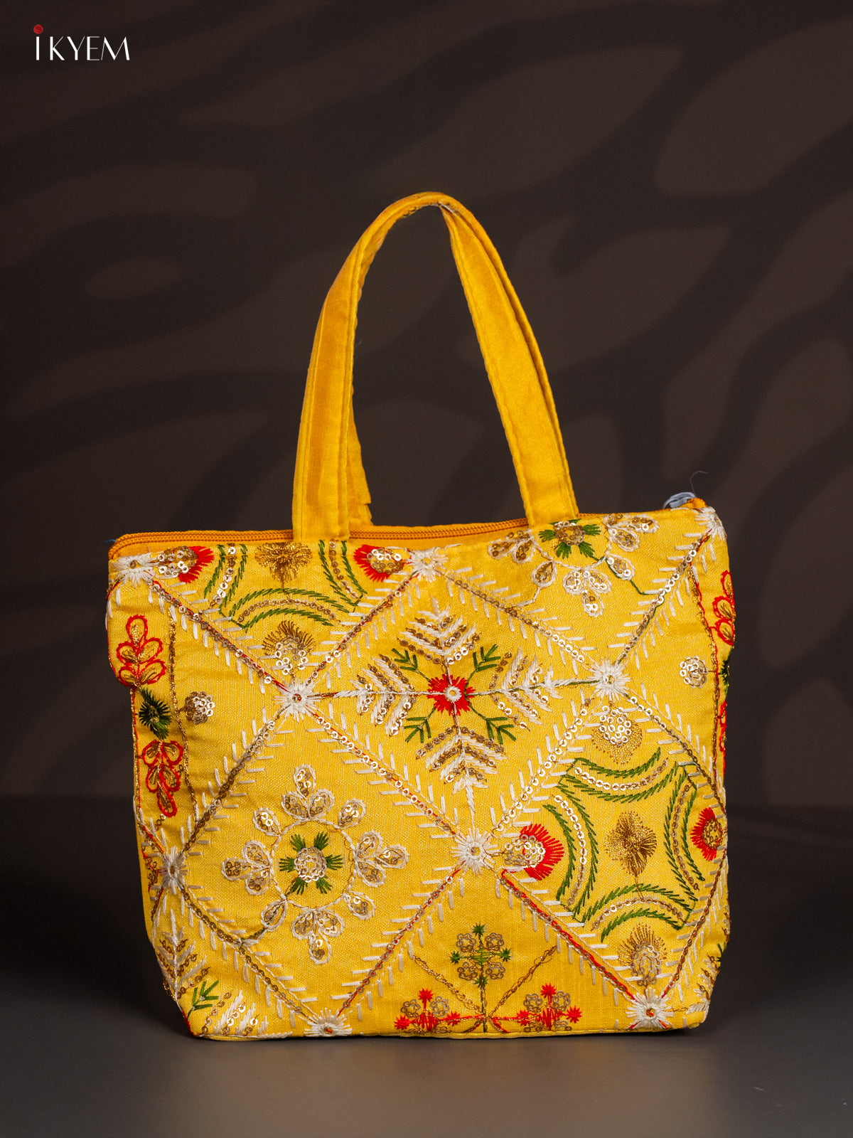 Yellow Designer Floral Embroidered Handbag - 8.5 Inch - KJ04111