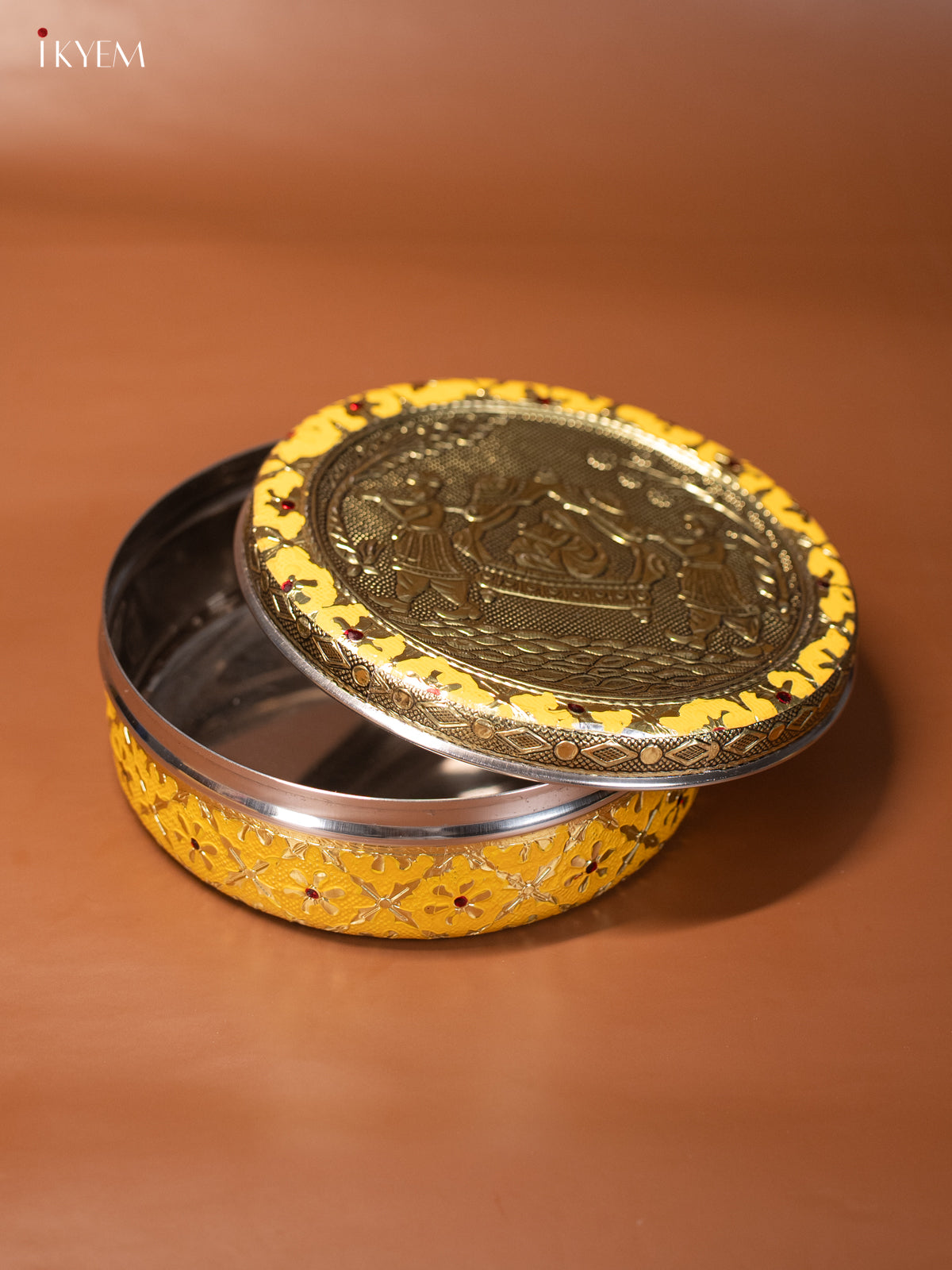 Yellow Meenakari Box with Oxidized Pallakku Design 7.5 Inches - KJ17113