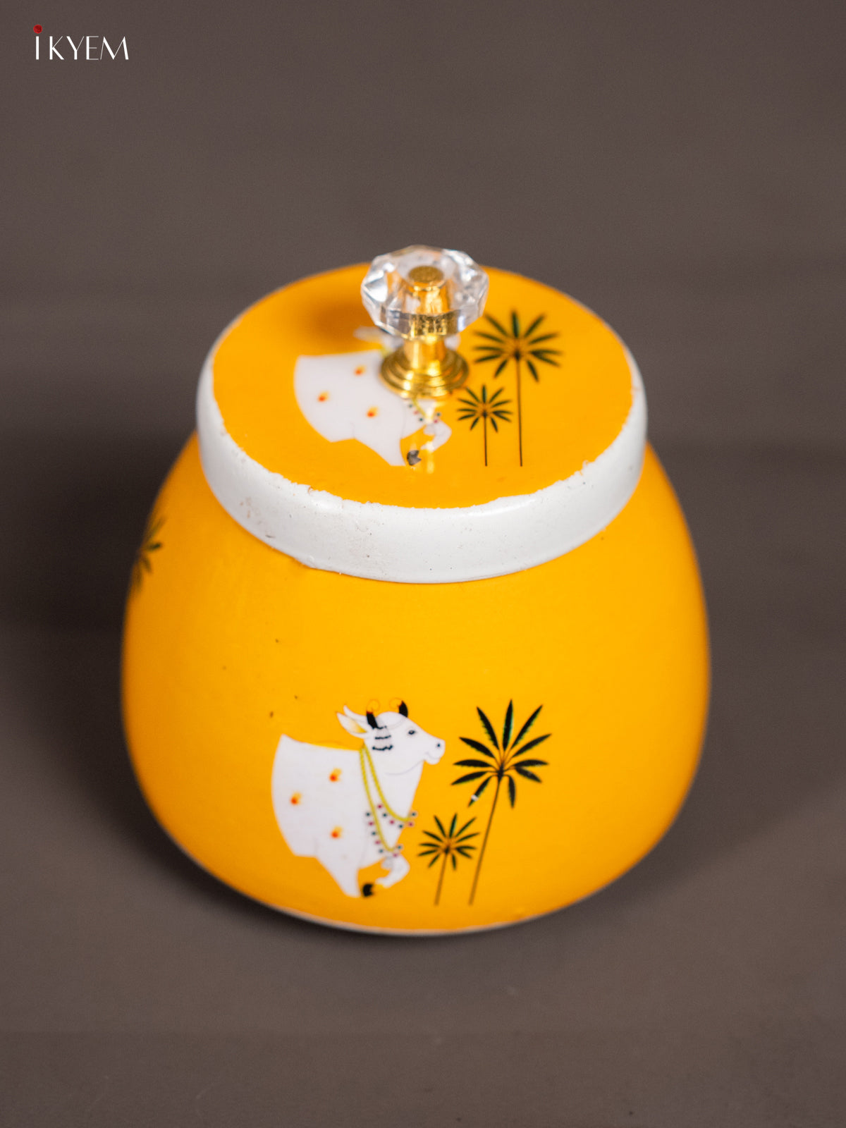 Yellow Digital Printed Cow & Calf Dry Fruit Jar – 4 Inch - KK01134