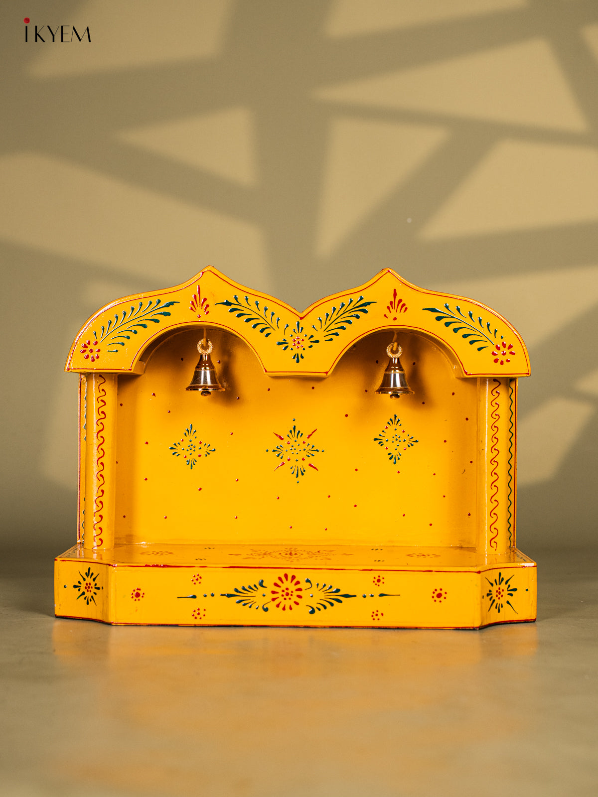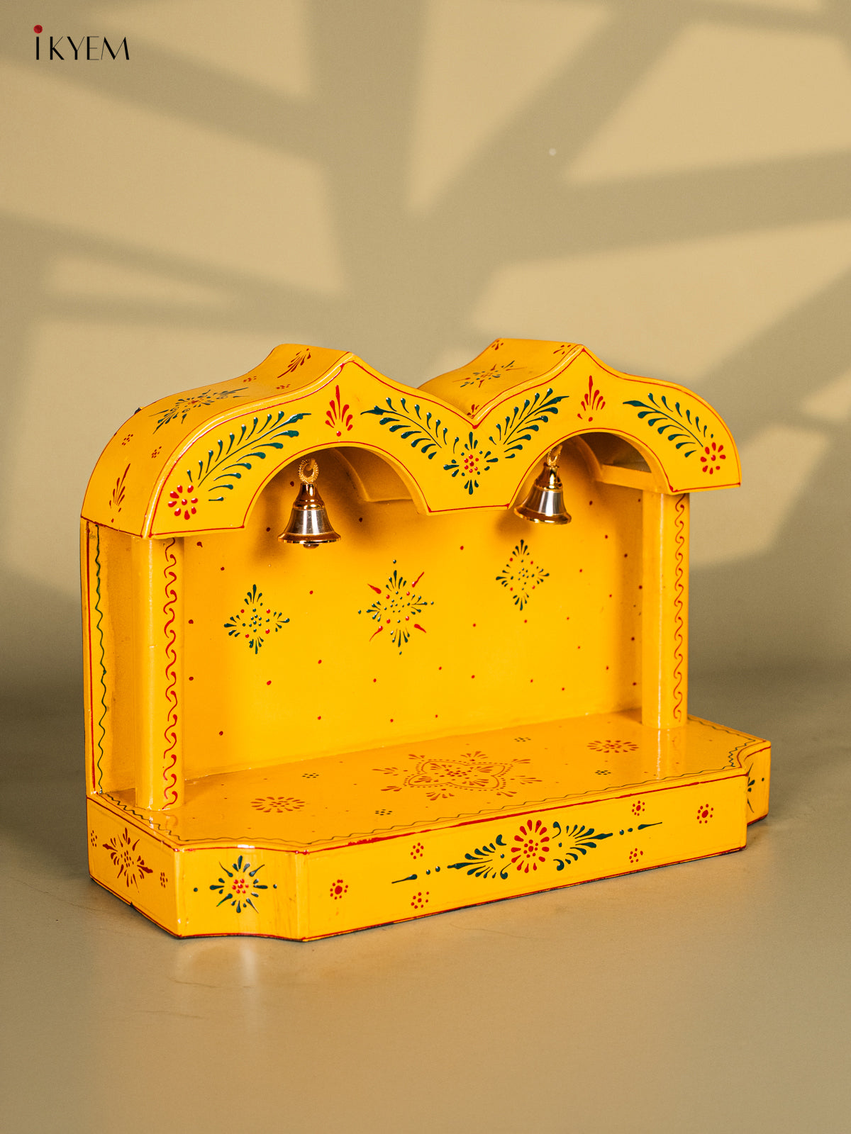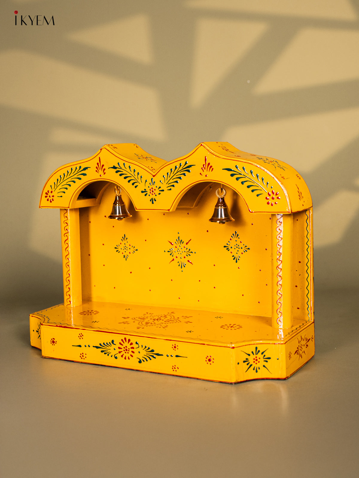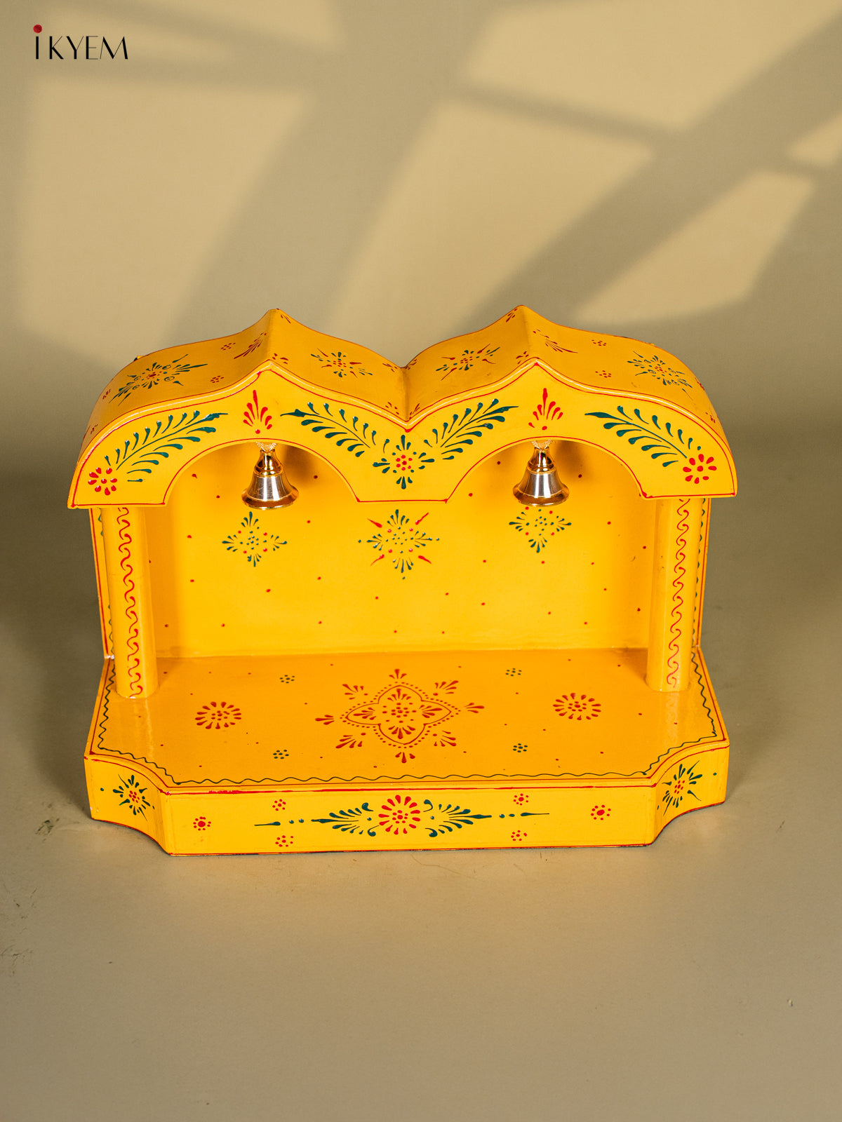Yellow Hand-Painted Wooden Mandapam - 10 Inches - KK20115