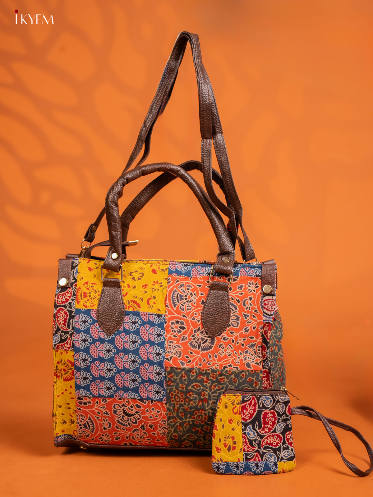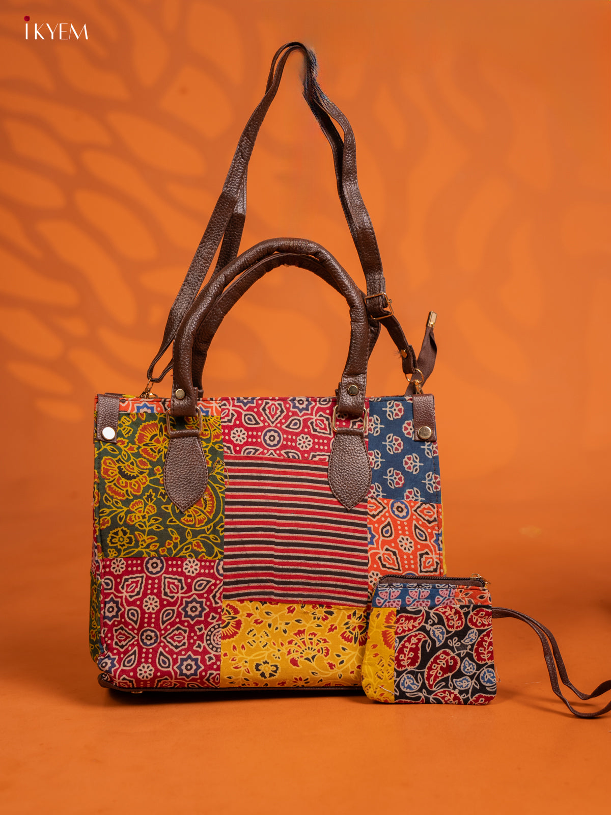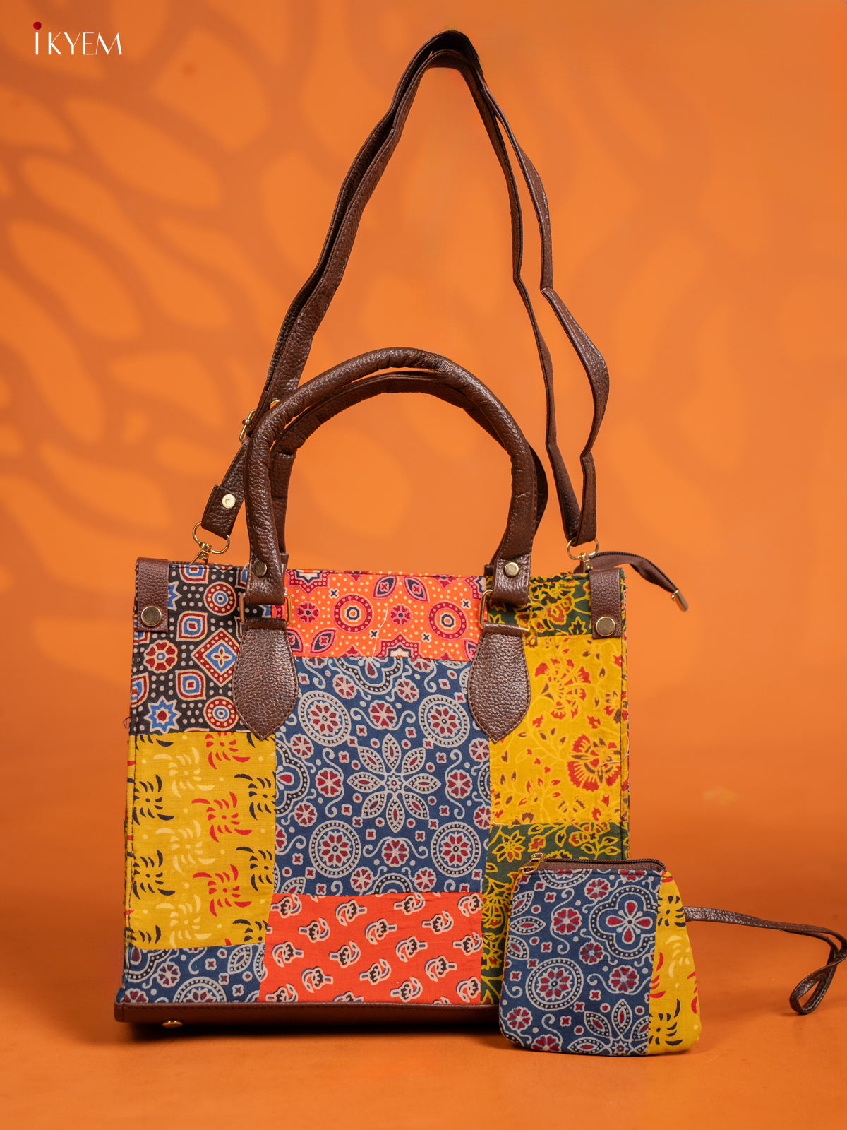 Ajrakh Printed Handbag with Small Pouch - Multicolour - KE16155