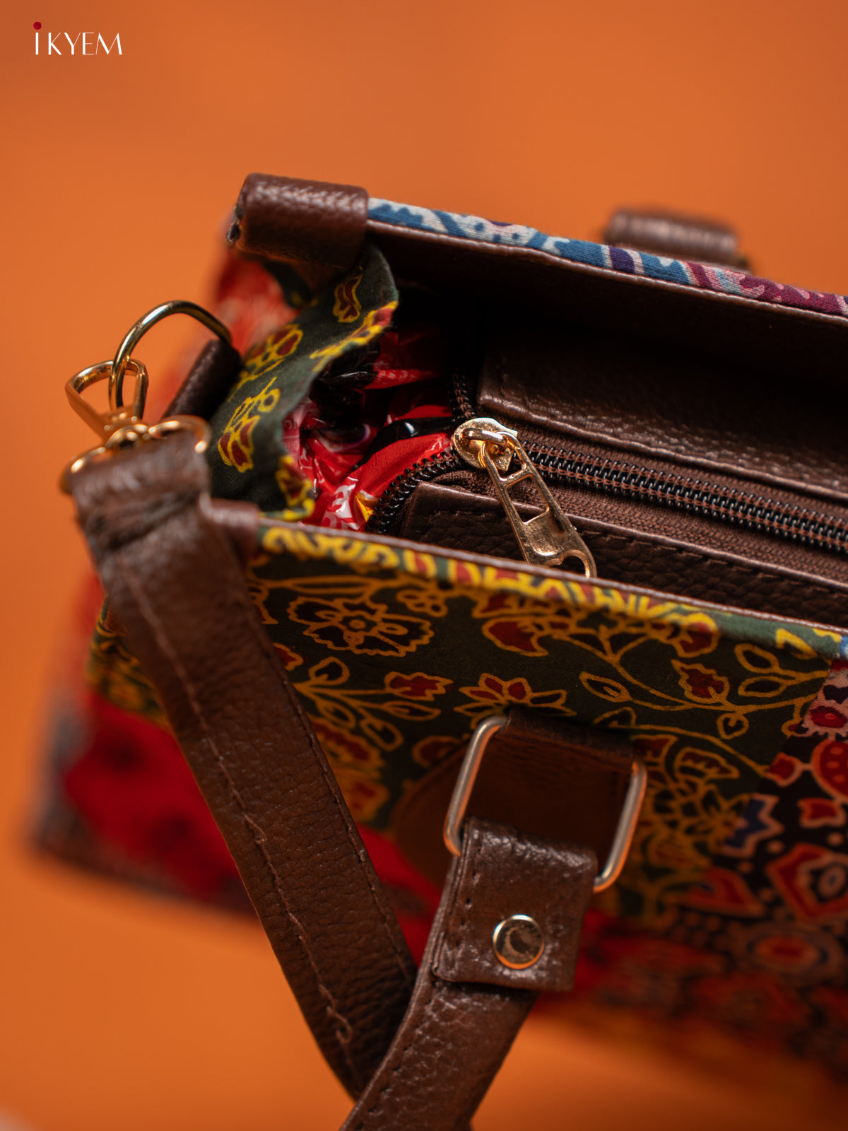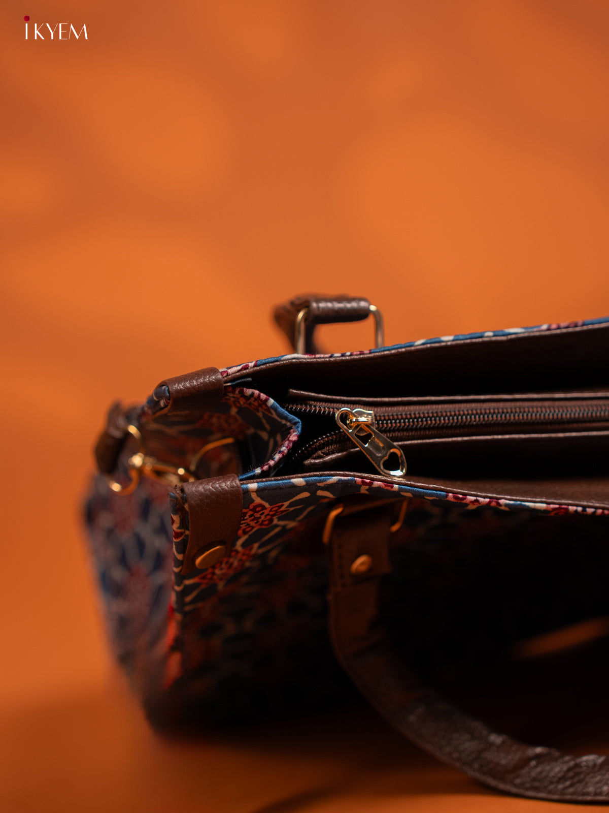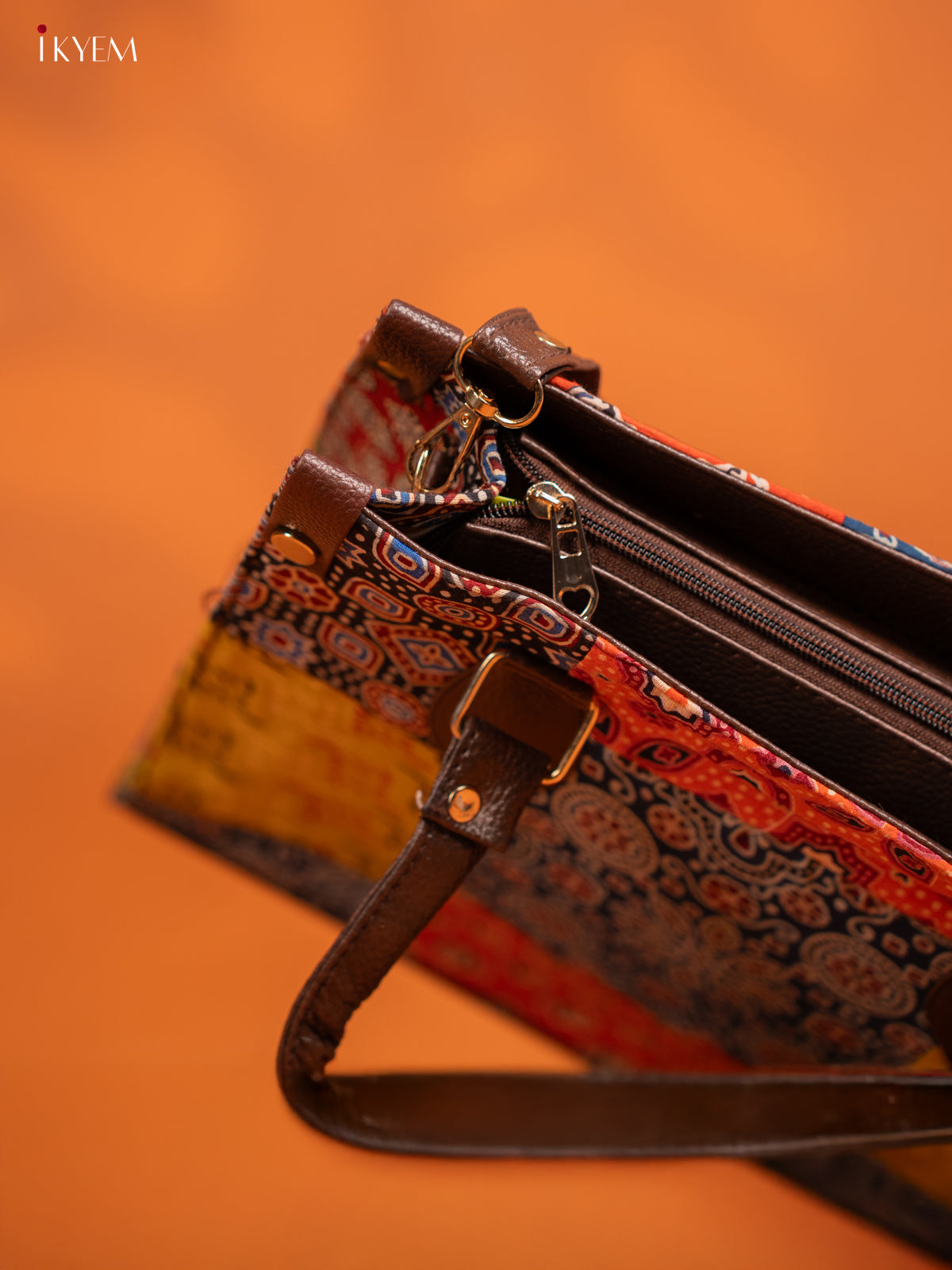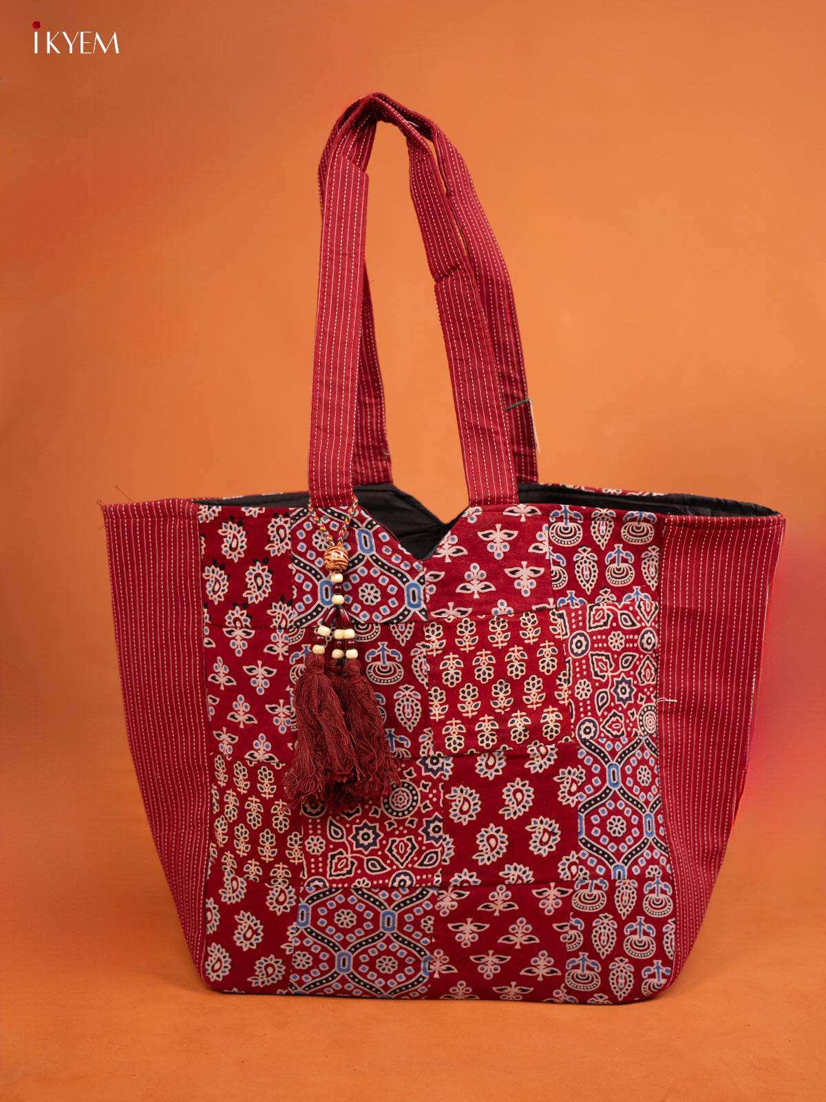 Ajrakh Printed Handbag with Small Pouch - Multicolour - KE16155