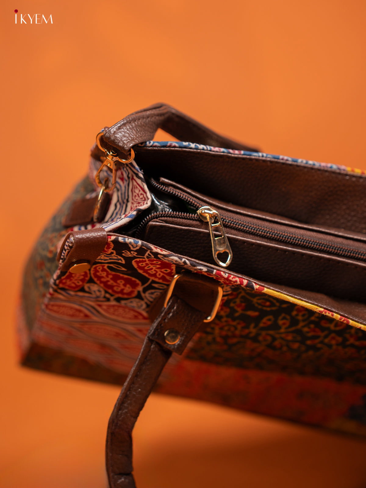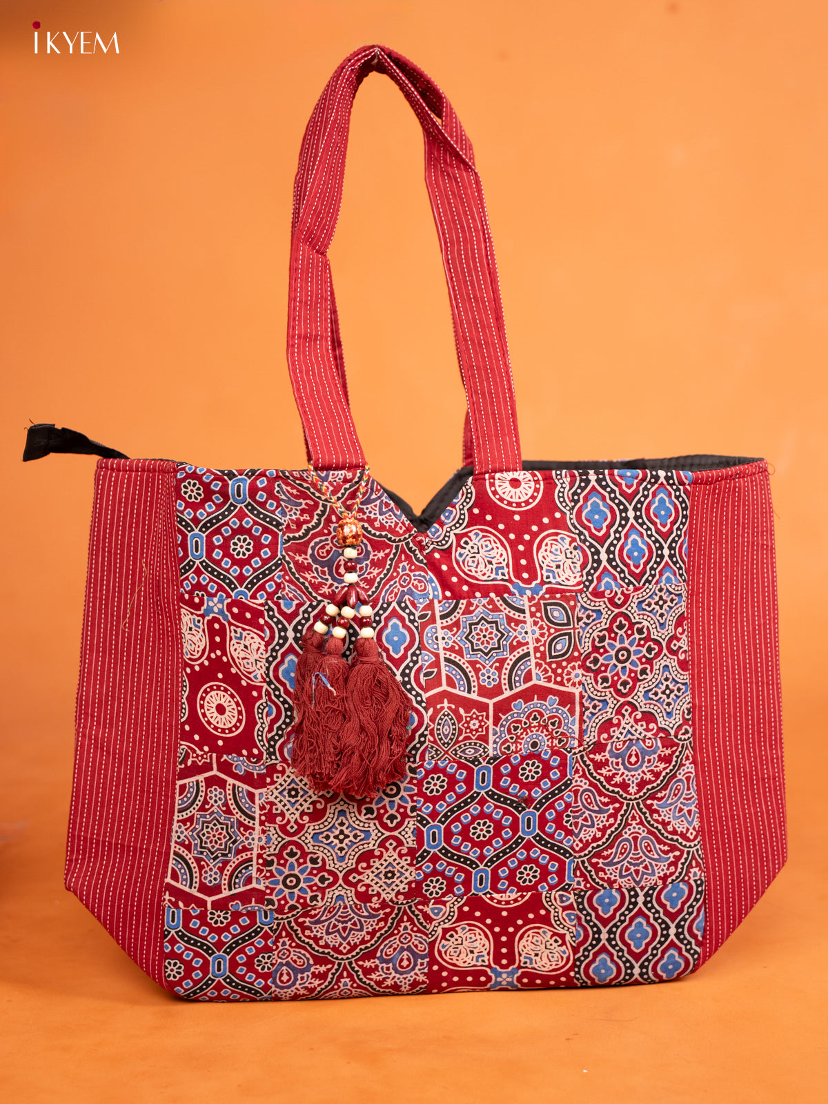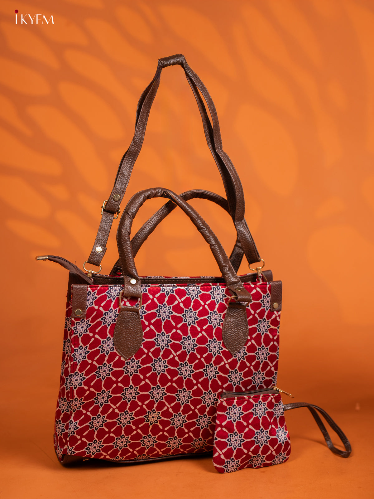 Ajrakh Printed Handbag with Small Pouch - Multicolour - KE16154