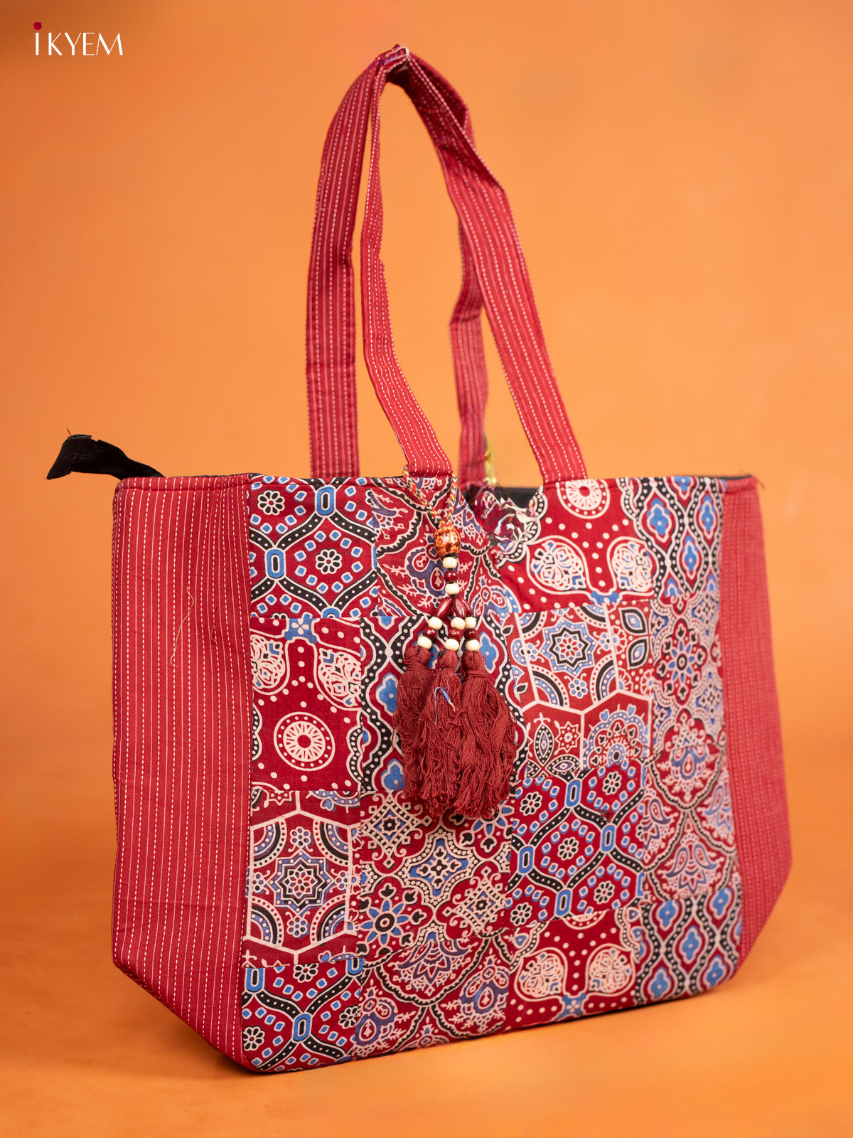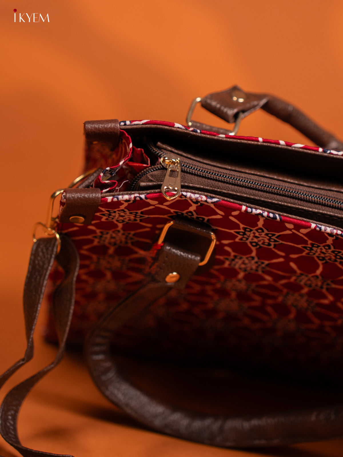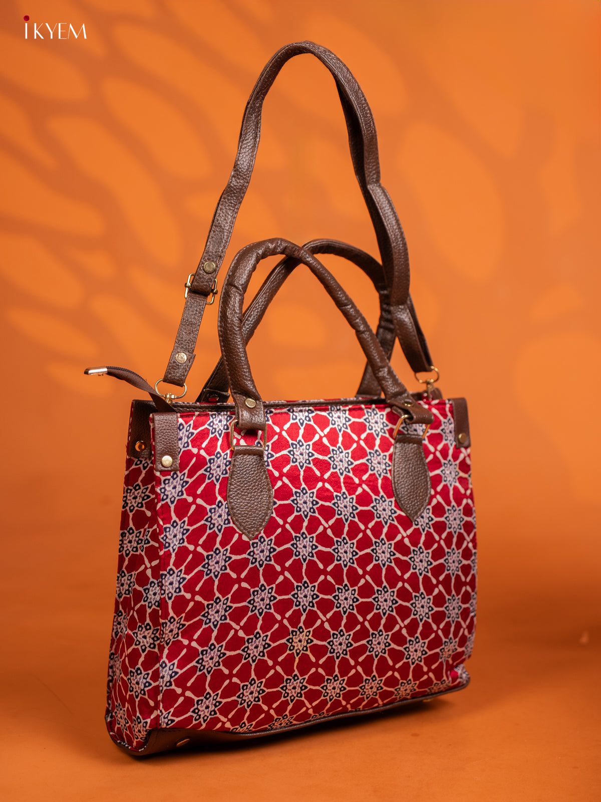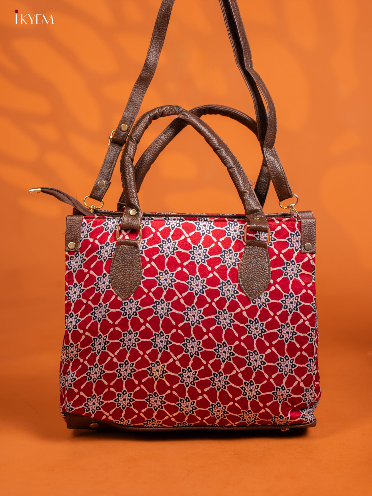 Ajrakh Printed Handbag with small pouch - Red - KE16144
