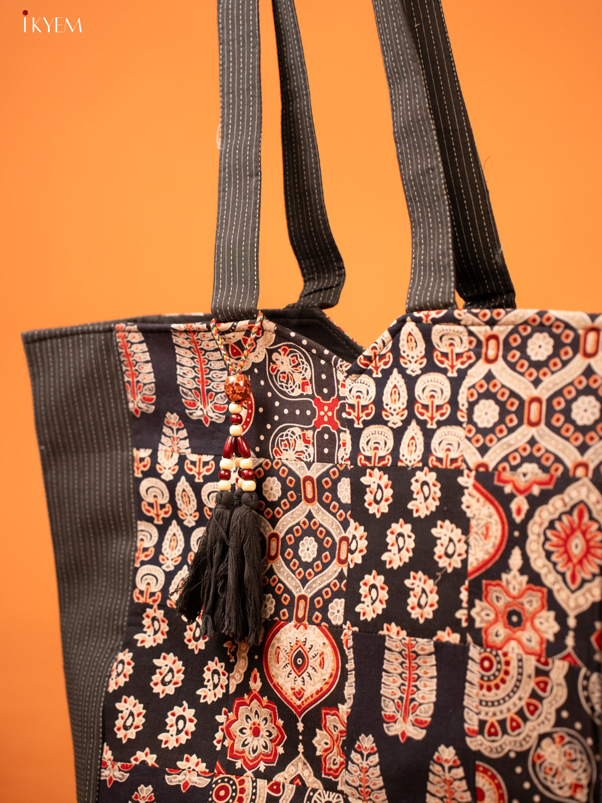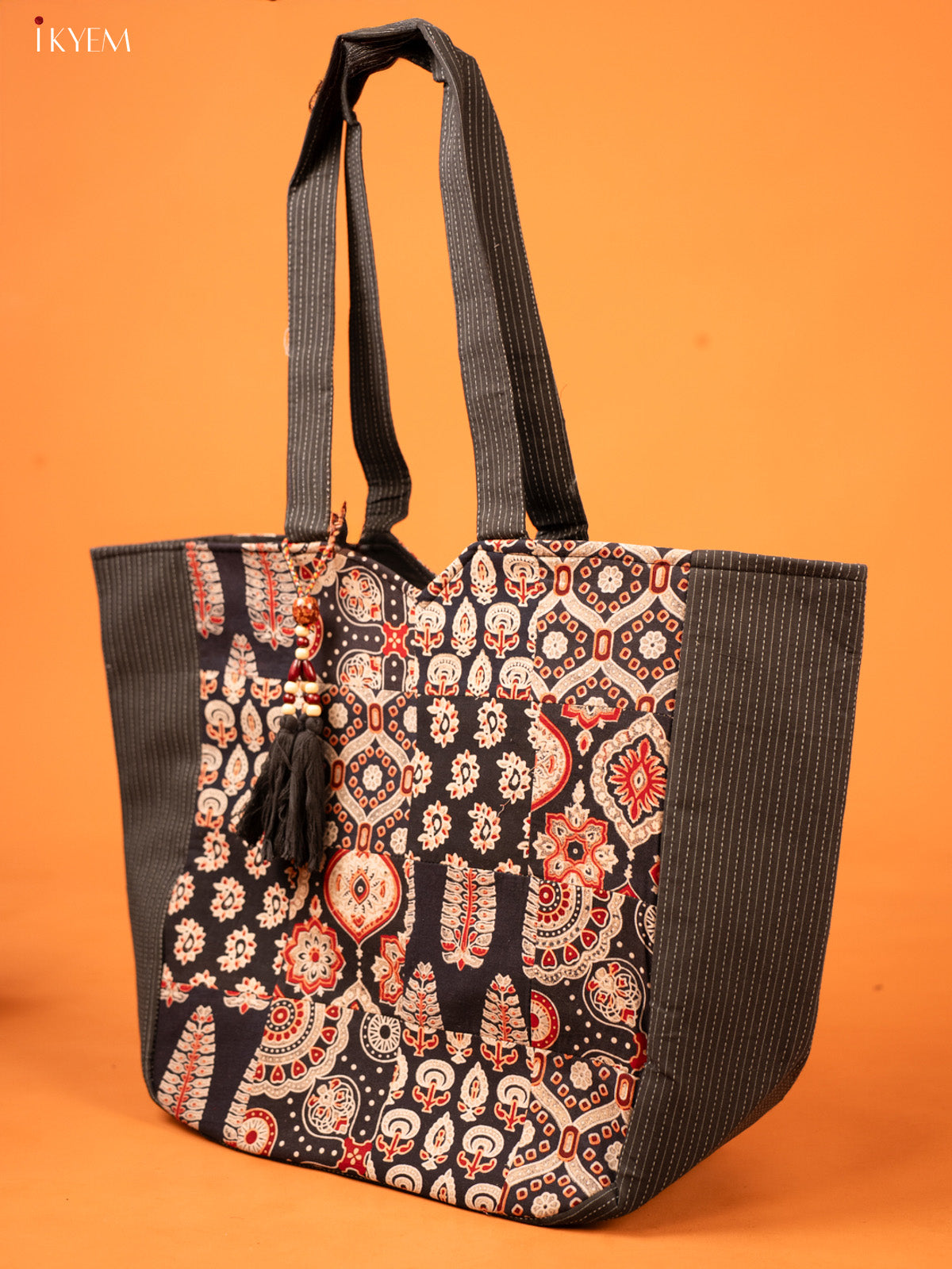 Ajrakh Printed Hand bag - Black