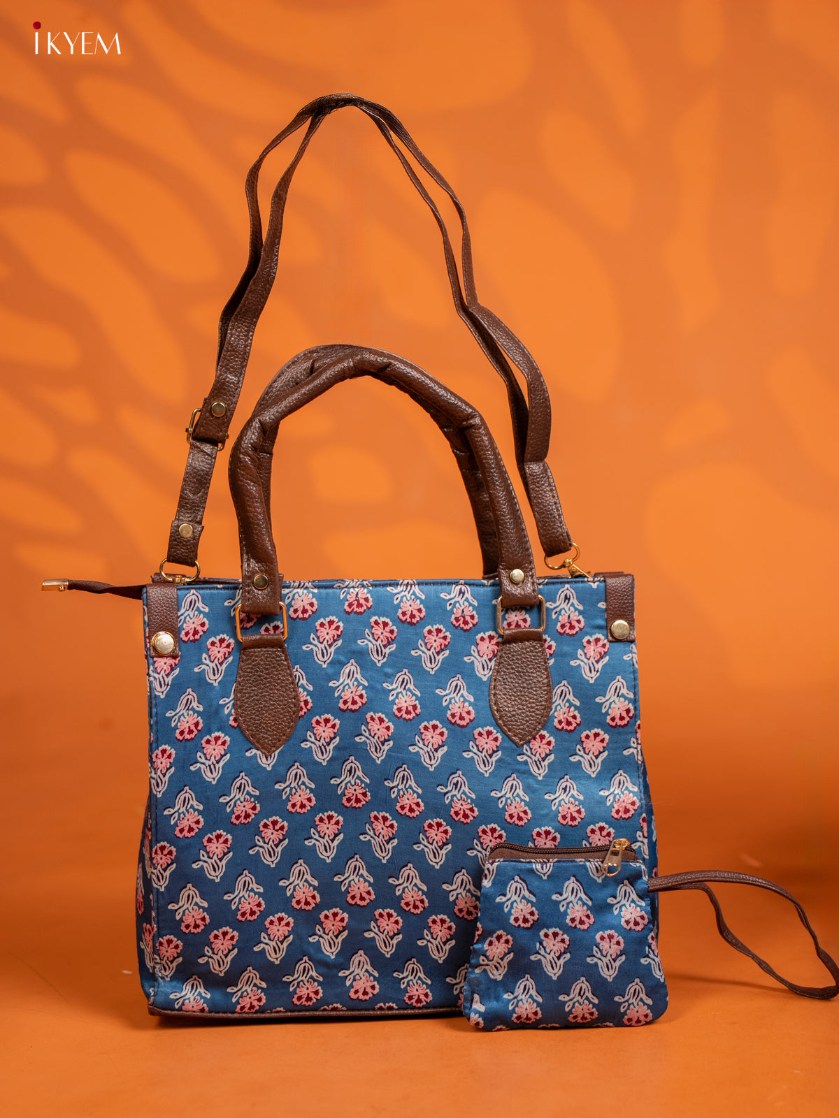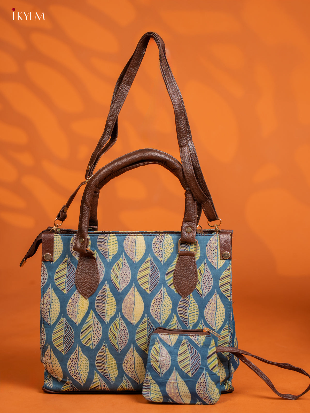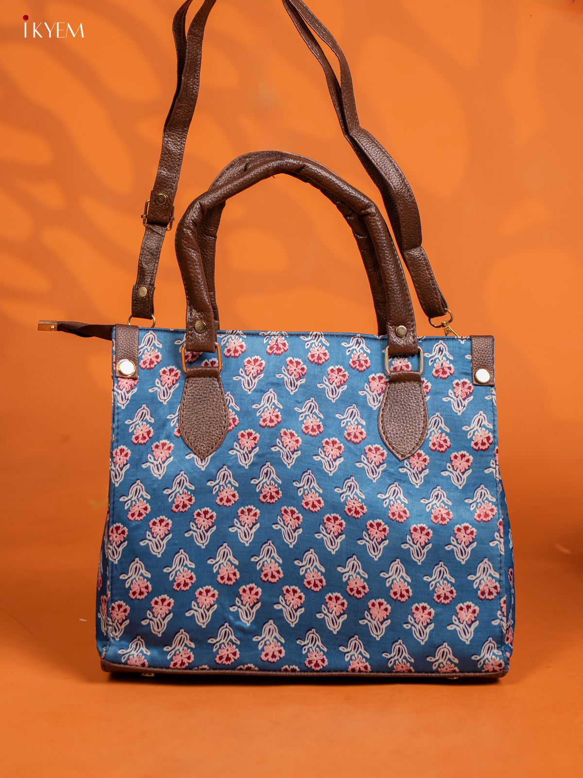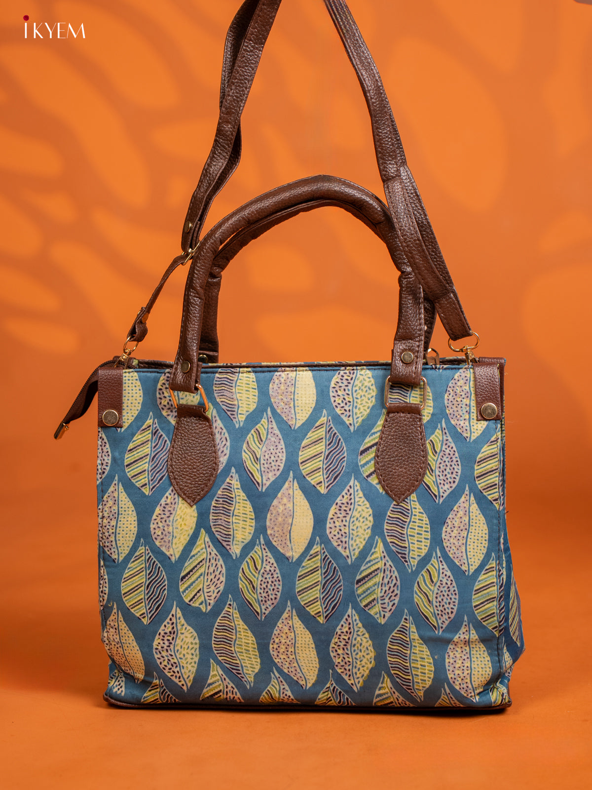 Ajrakh Printed Handbag with Small Pouch - Blue - KE16145