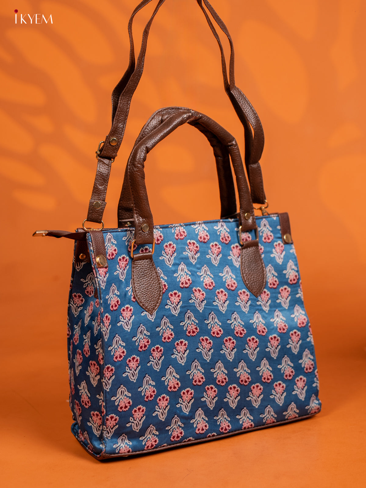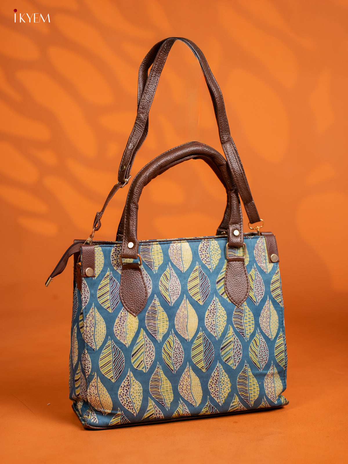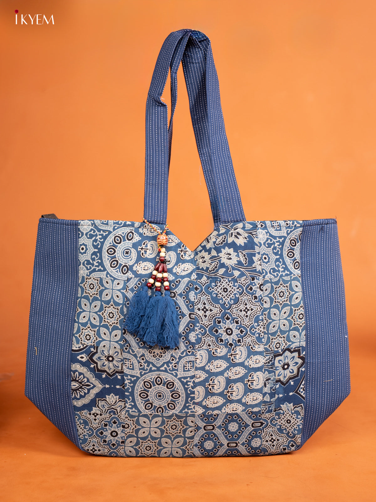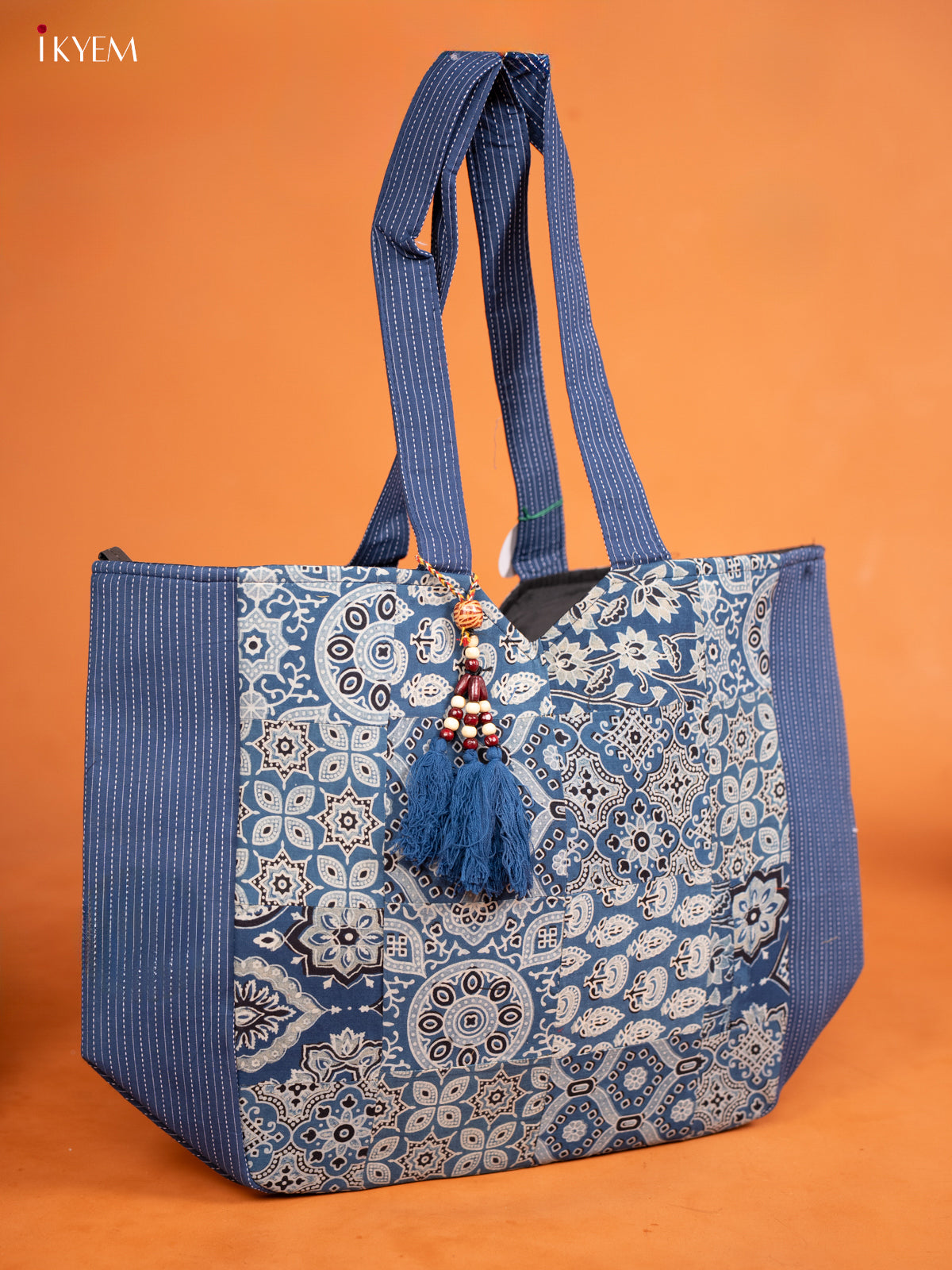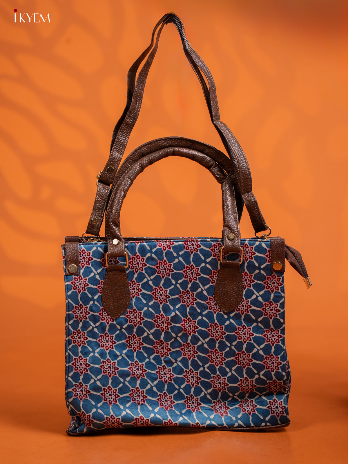 Ajrakh Printed Handbag with Small Pouch - Blue - KE16145