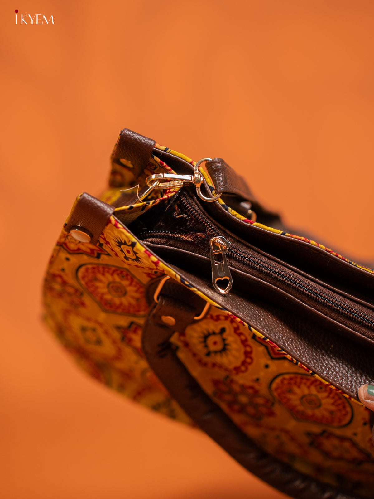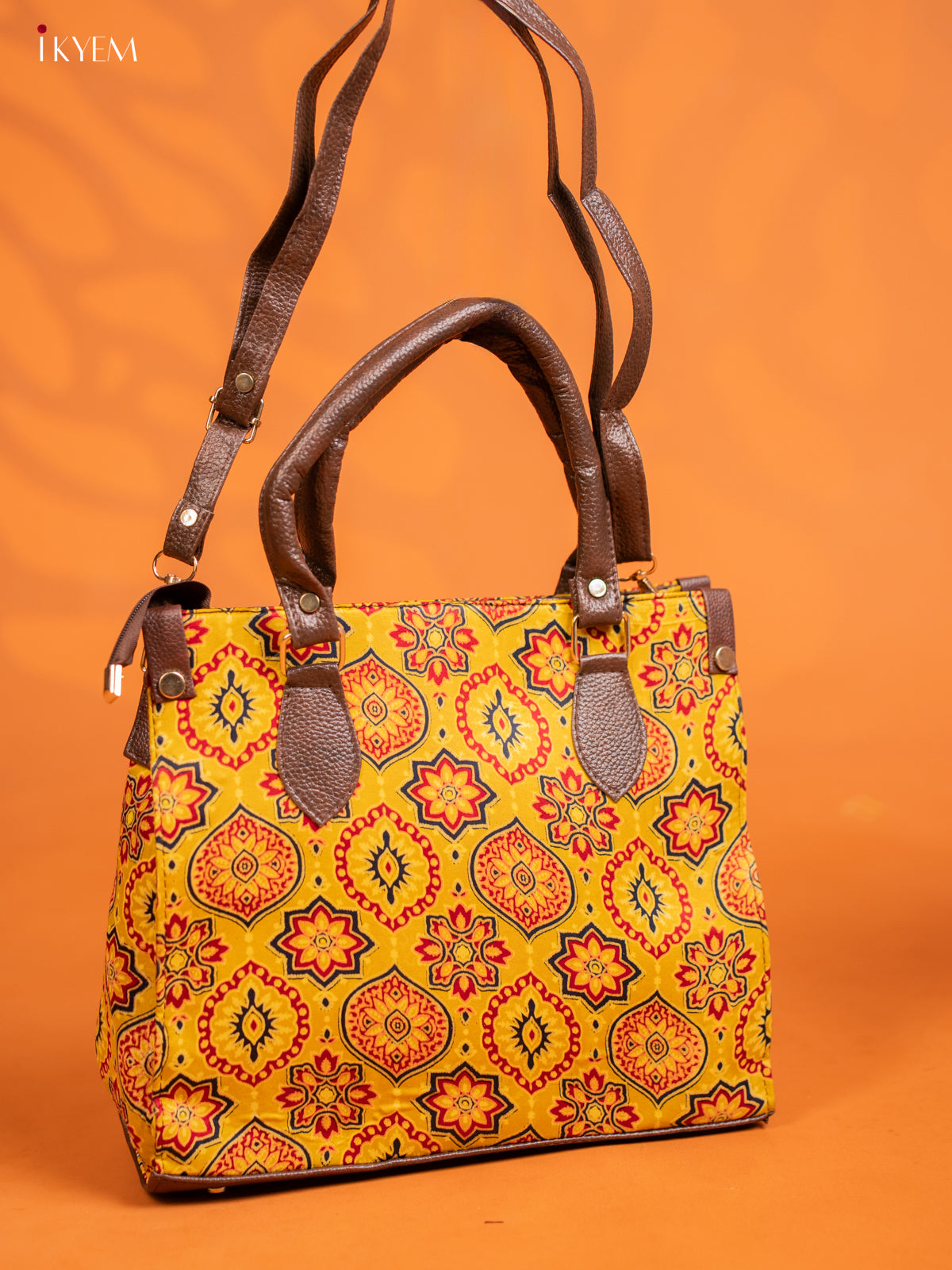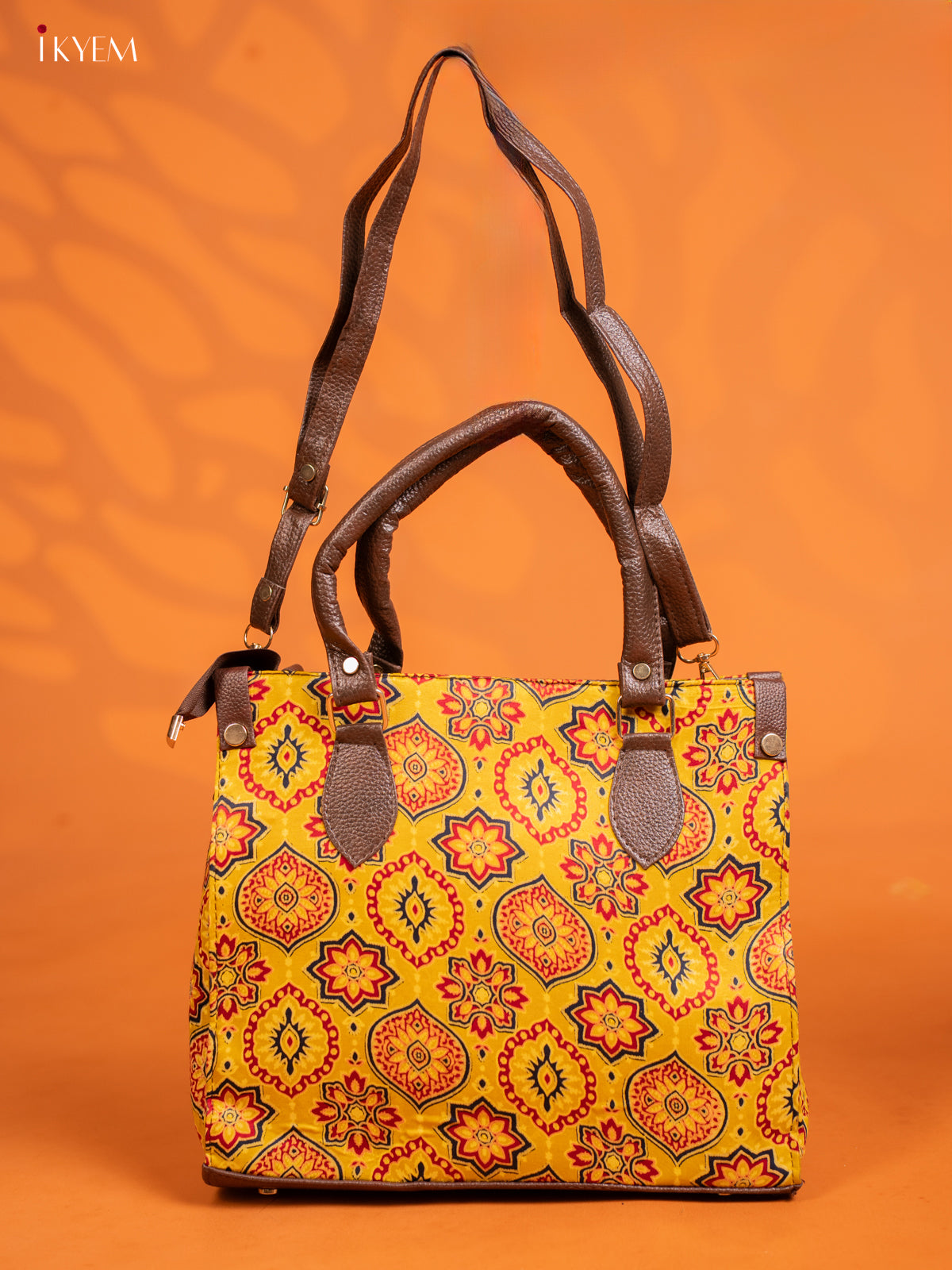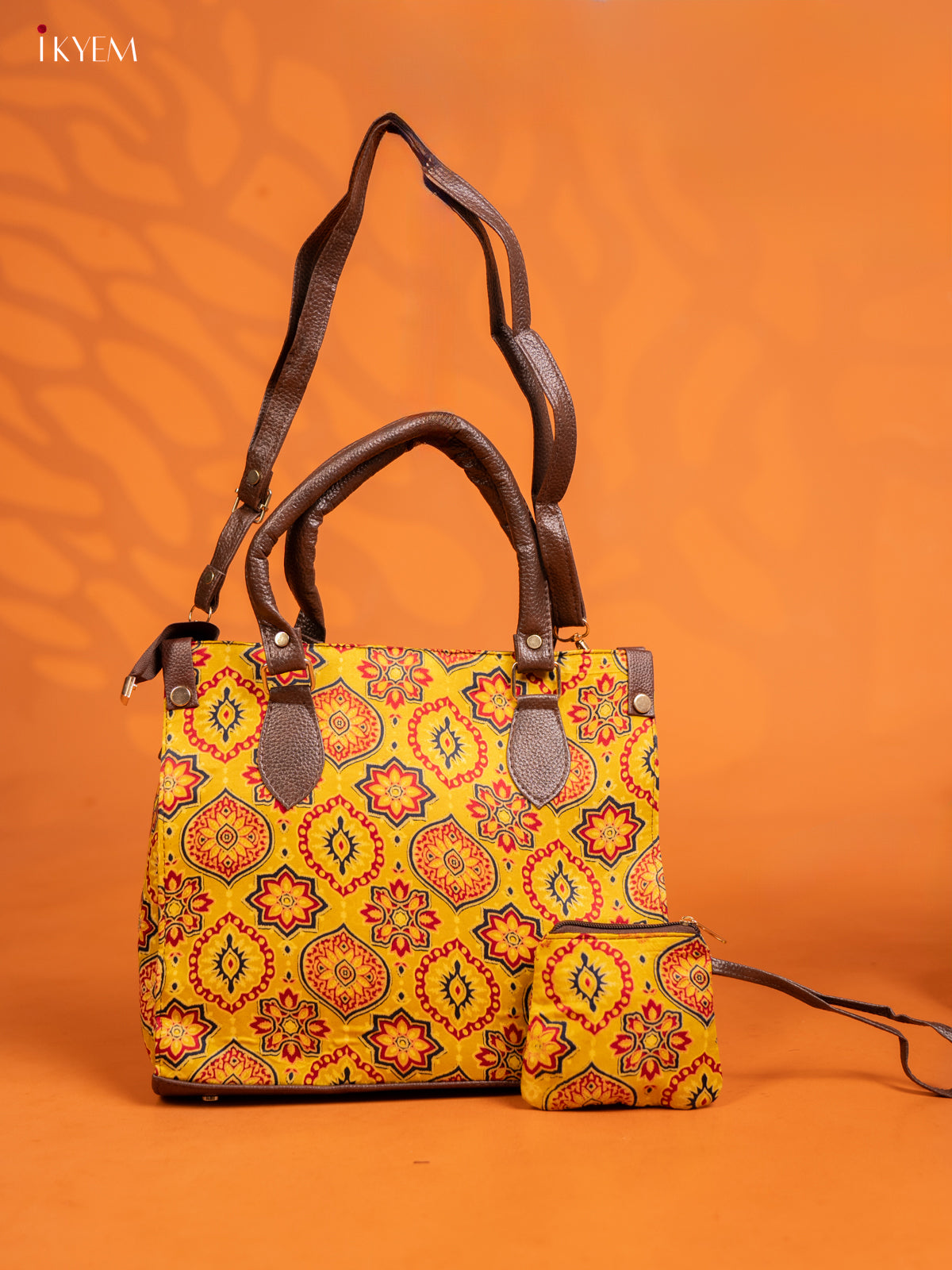 Ajrakh Printed Handbag with small pouch - yellow - KE16142