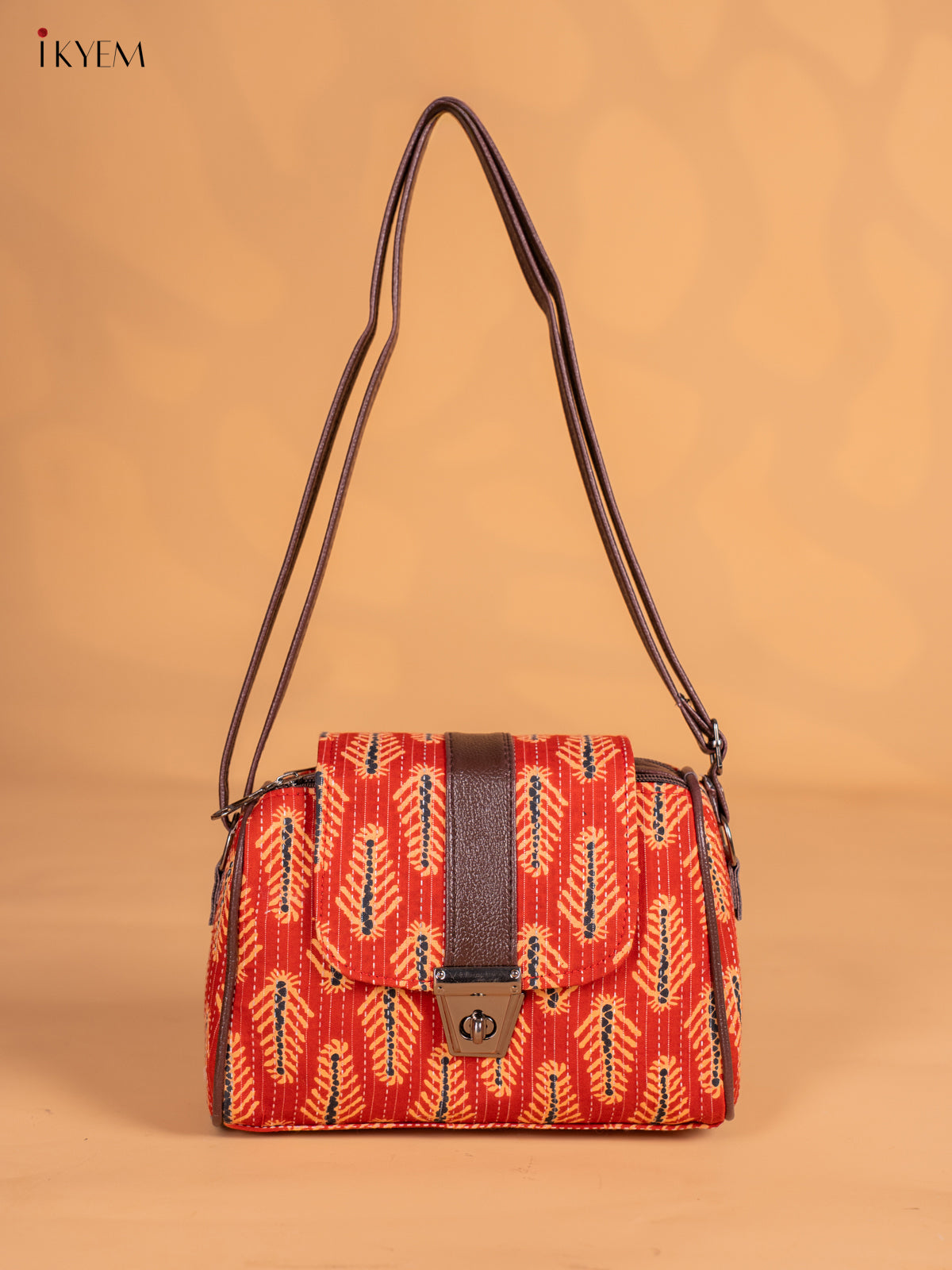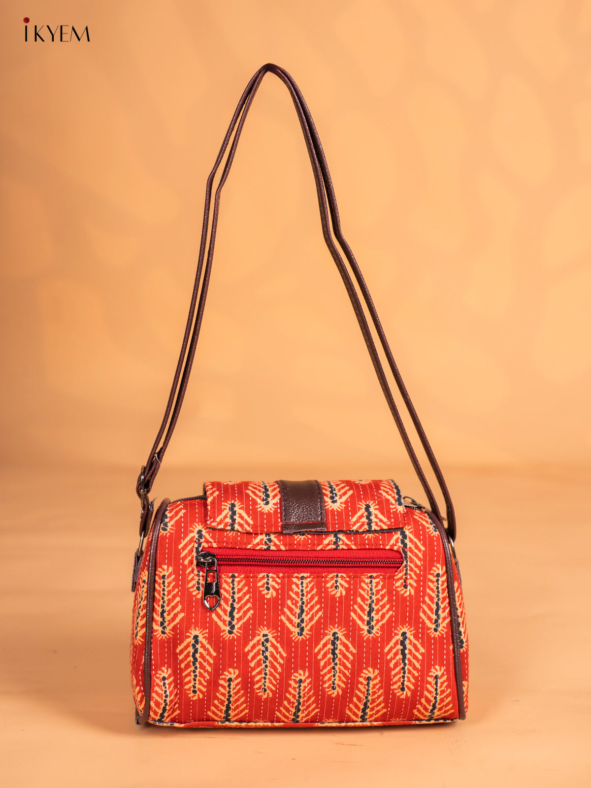 Ajrakh Printed Flap Sling Bag - Red - KN05137