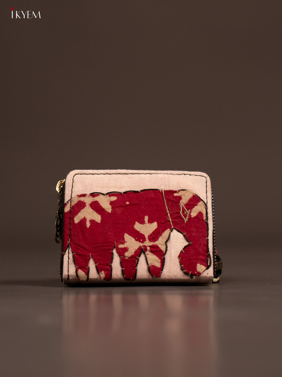 Embroidery Small Wallet - Cream with maroon - KE21196