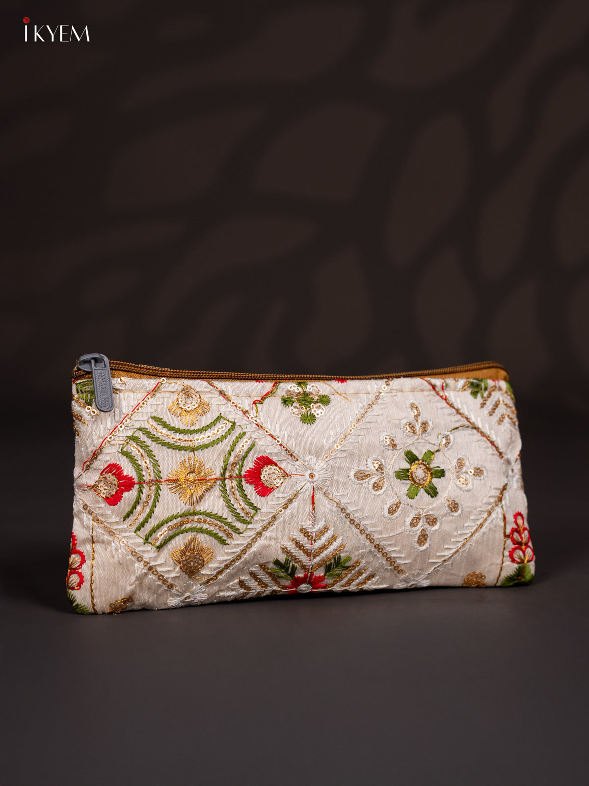 Embroidered Samosa Pouch - Cream - KJ04164