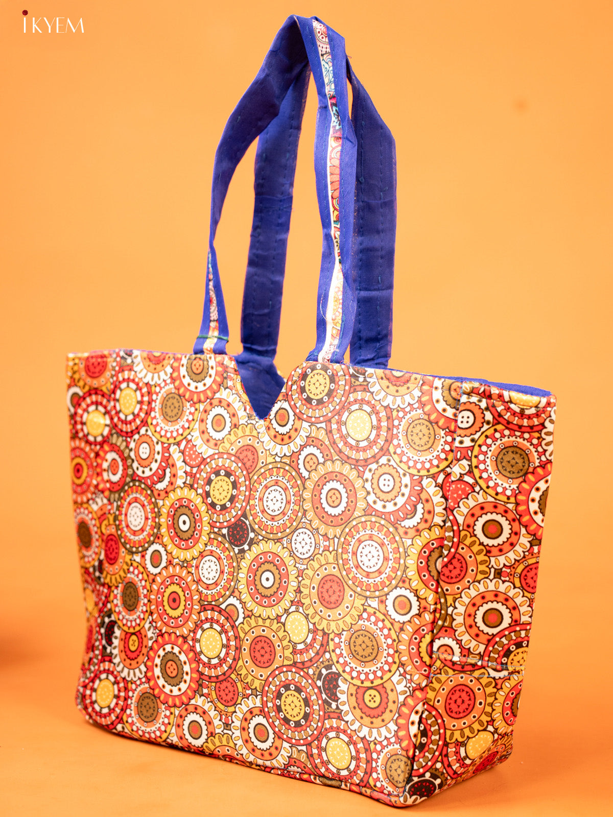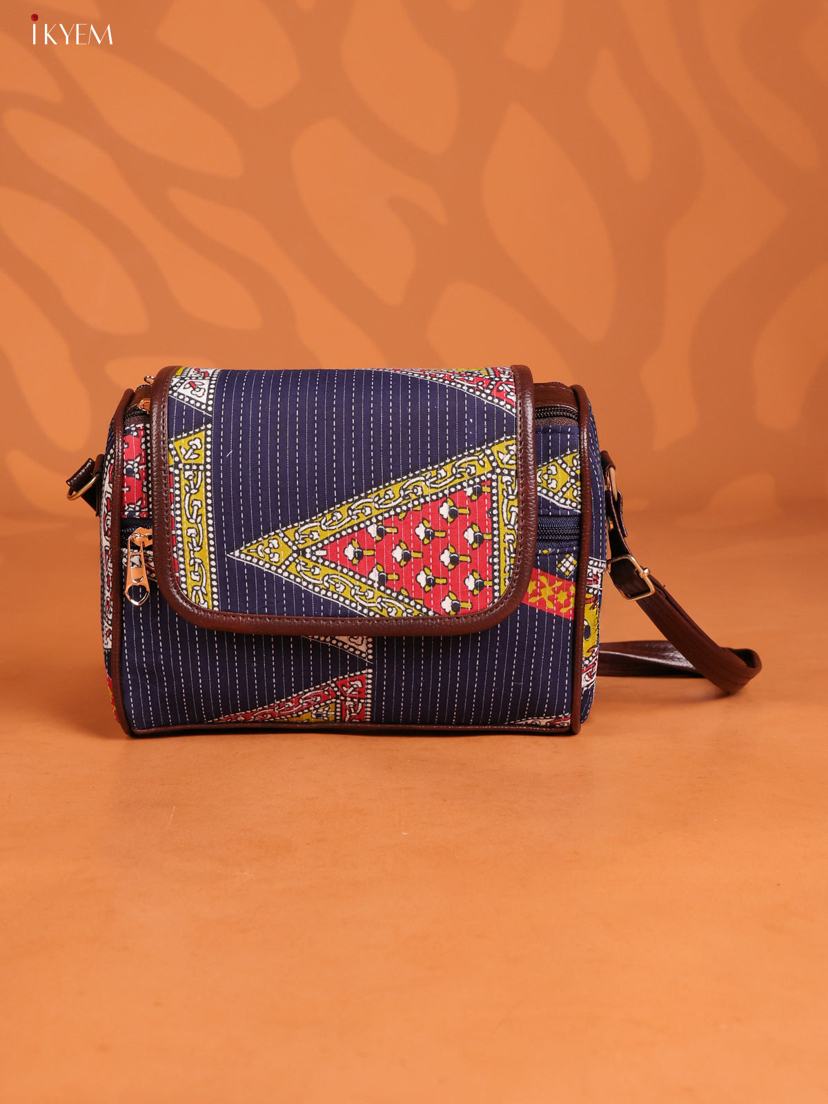 Ikat Printed Leather Sling Bag with 3 Compartments -indico Blue - KD26886