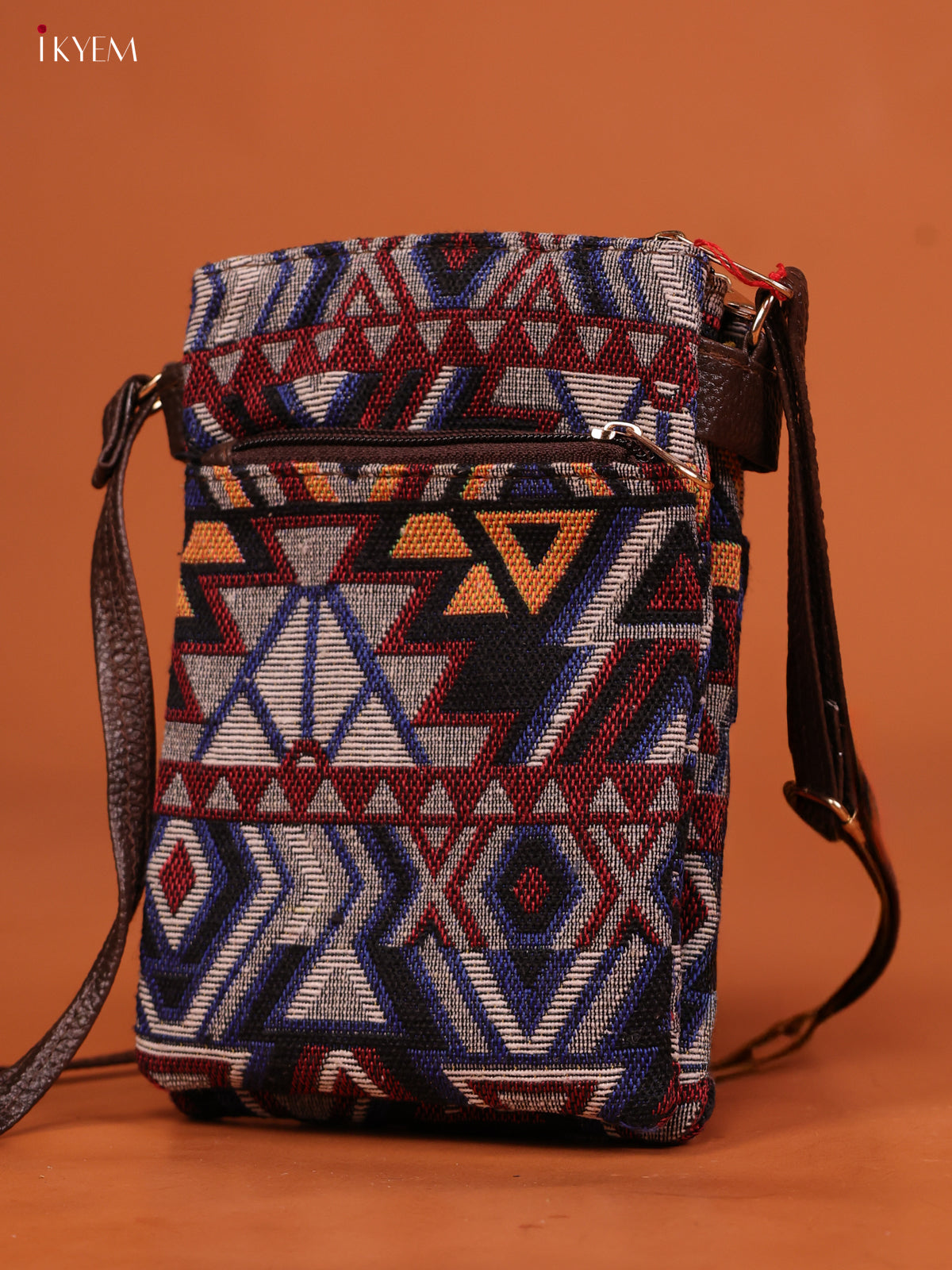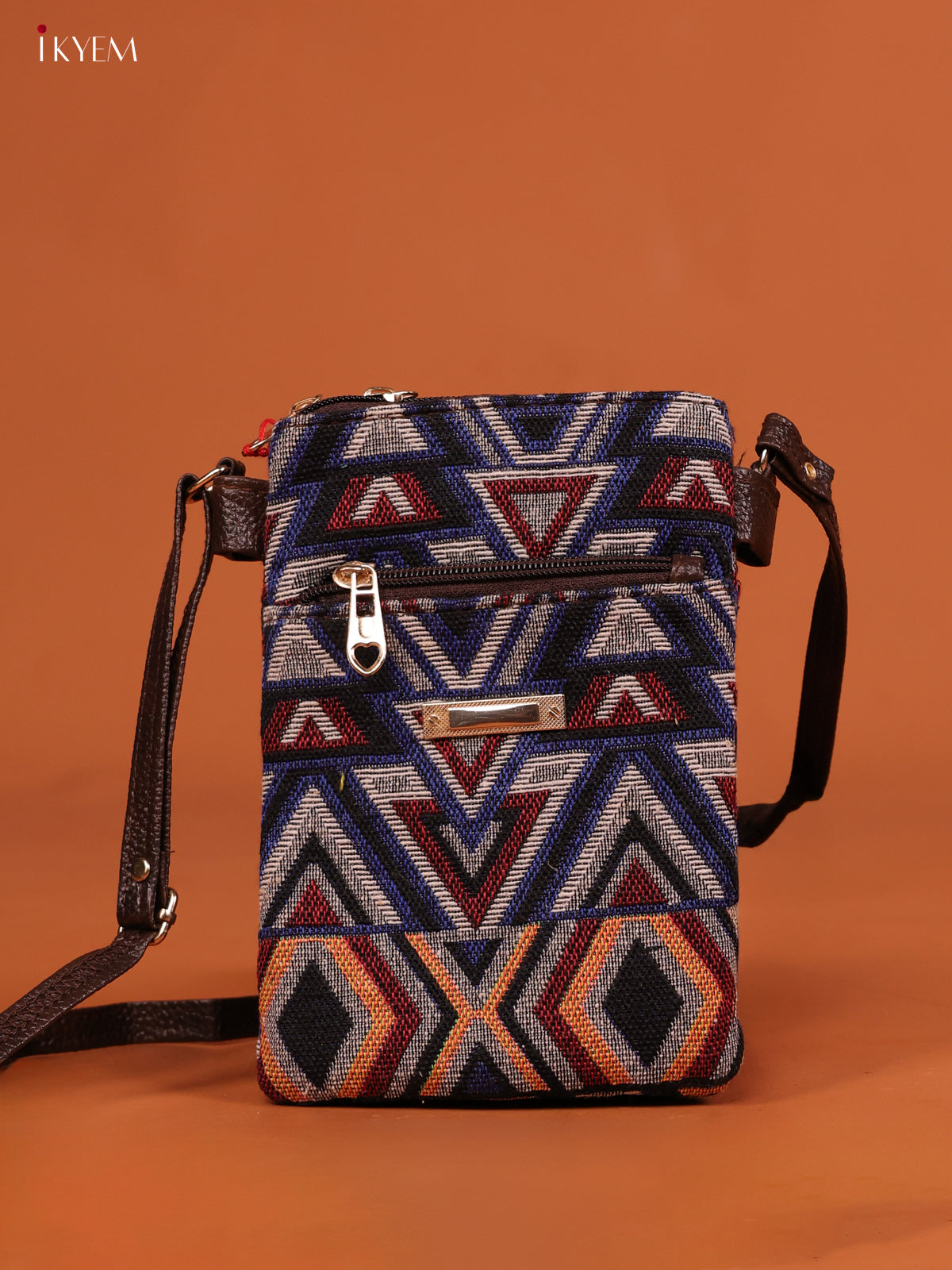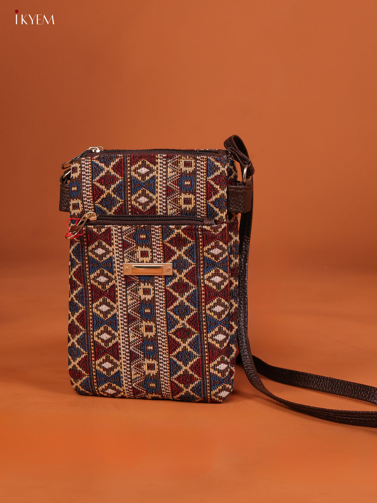Ikat Printed Leather Sling Bag with 4 compartments - Multicolour - KD26899