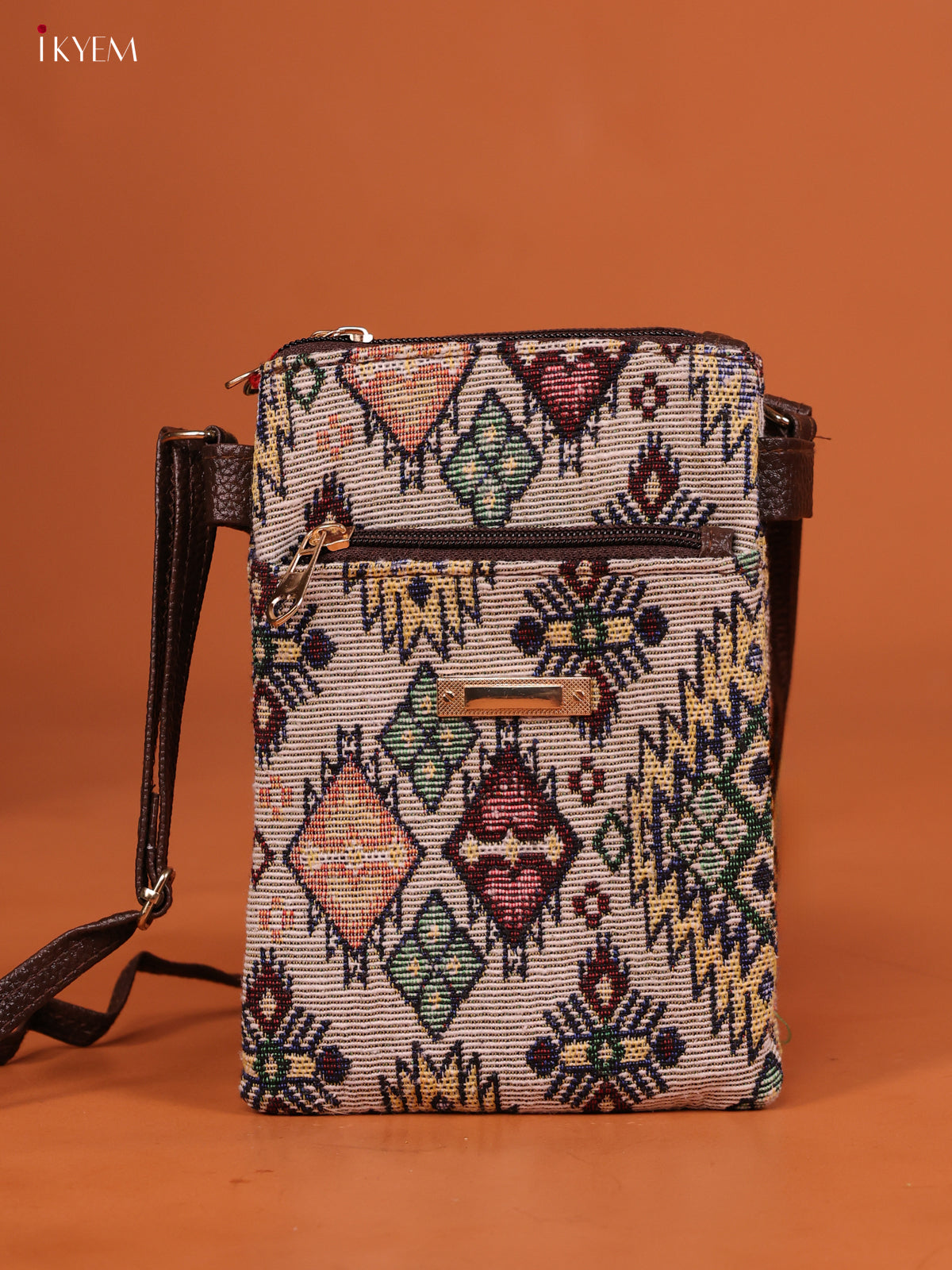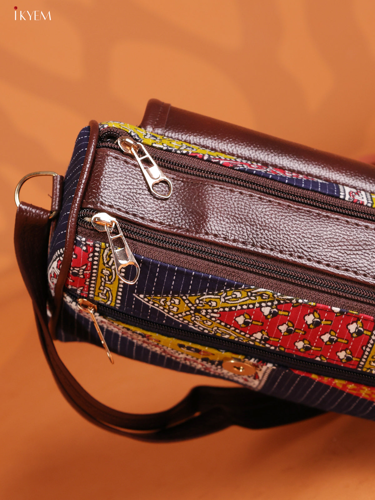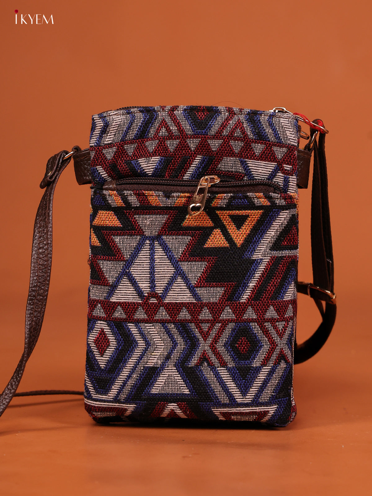 Ikat Printed Leather Sling Bag with 4 compartments - Multicolour - KD26899