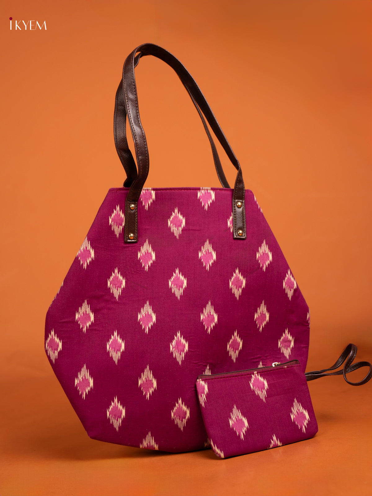 Ikkat Design Shoulder Bag with small pouch - indigo blue