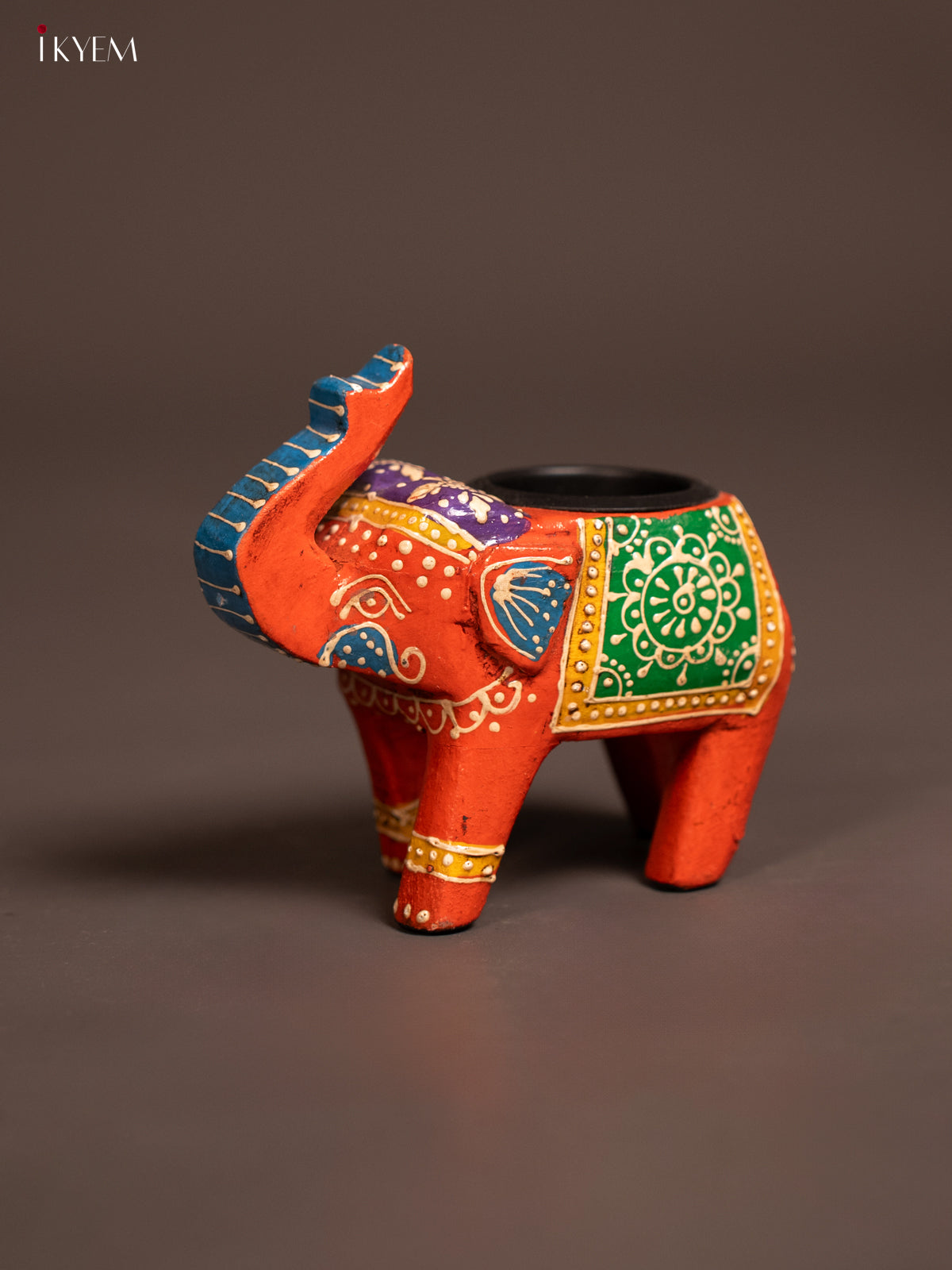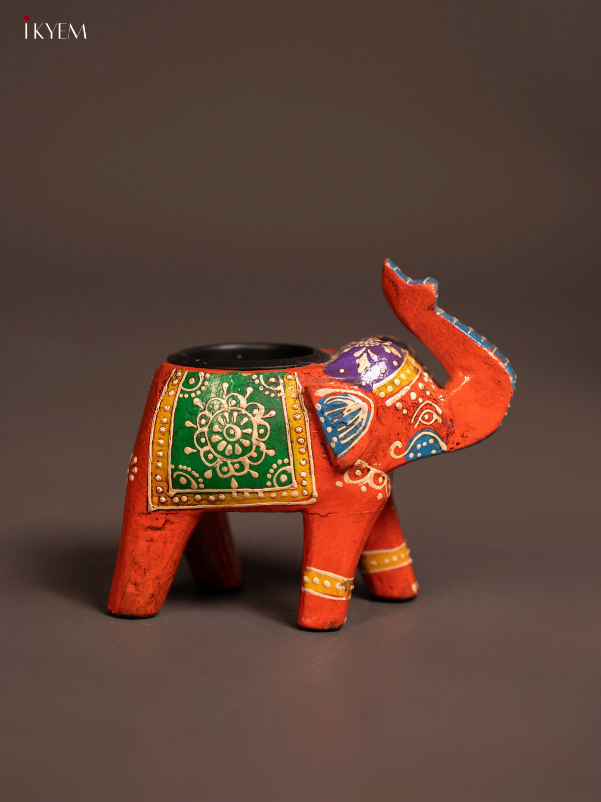 Hand-painted Wooden T- Light Elephant - Orange - 5 Inch - KE24111