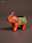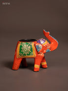 - This beautifully crafted wooden tealight holder features a hand-painted orange elephant design, adding a touch of elegance to your home decor.