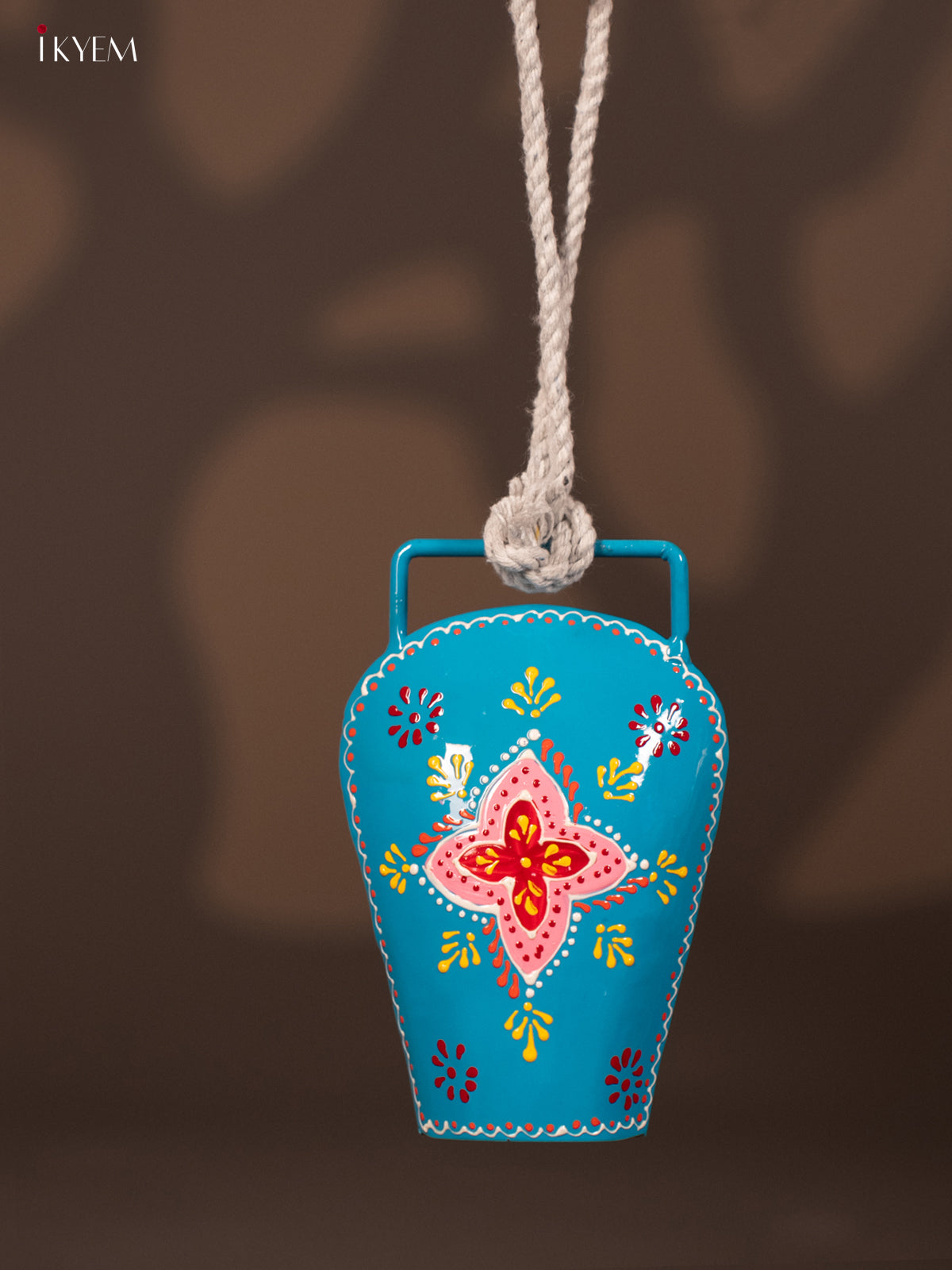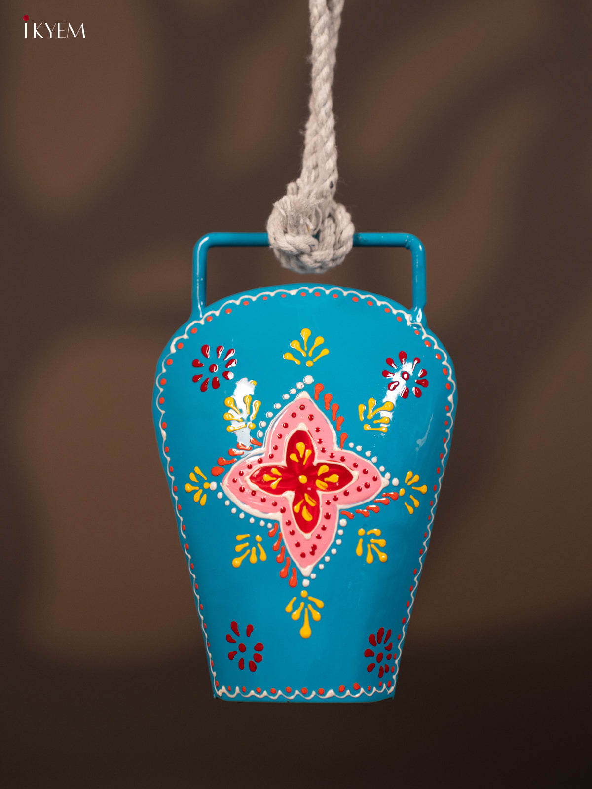 • This hand-painted cow bell features a sturdy rope handle for easy hanging.