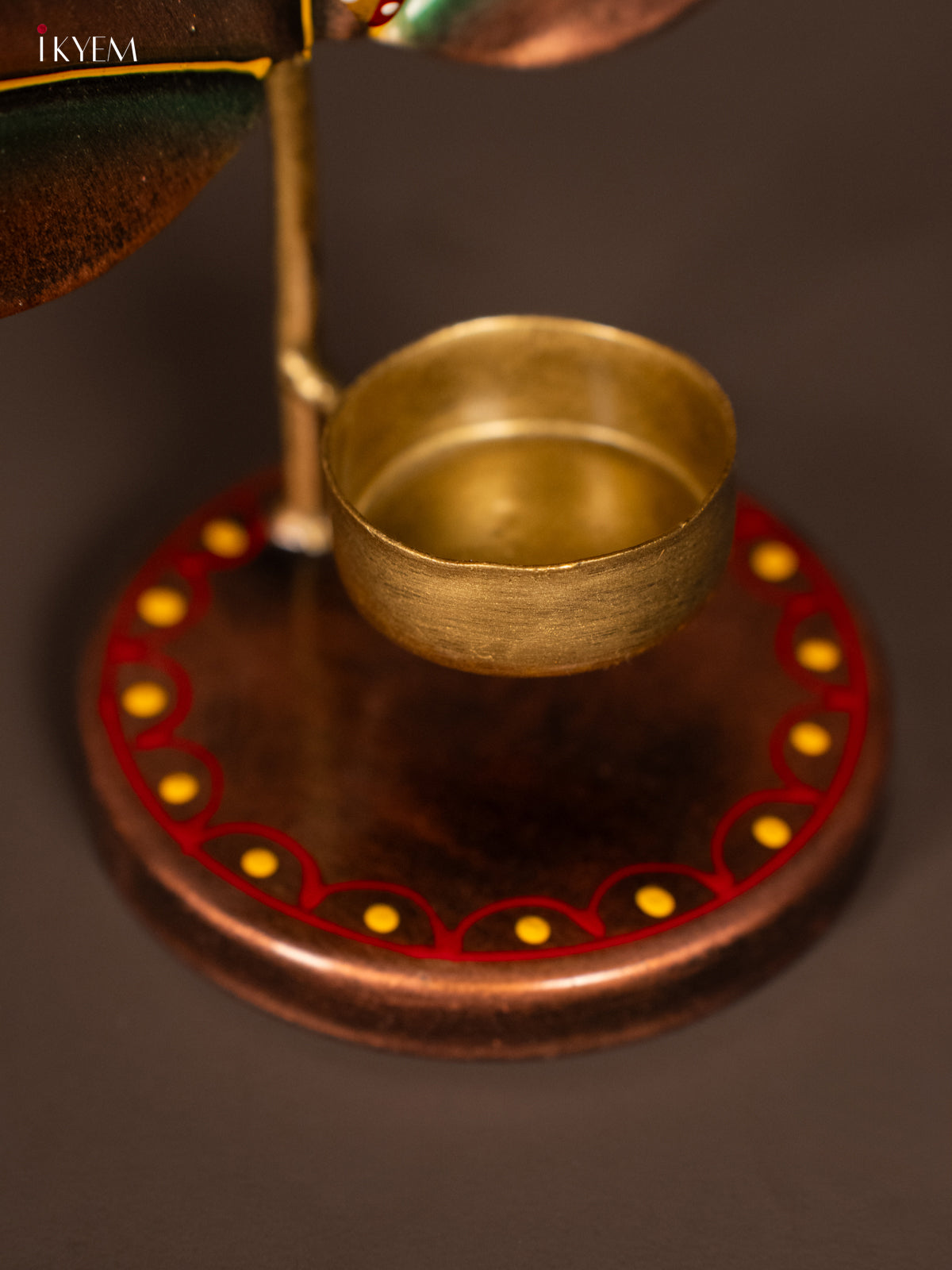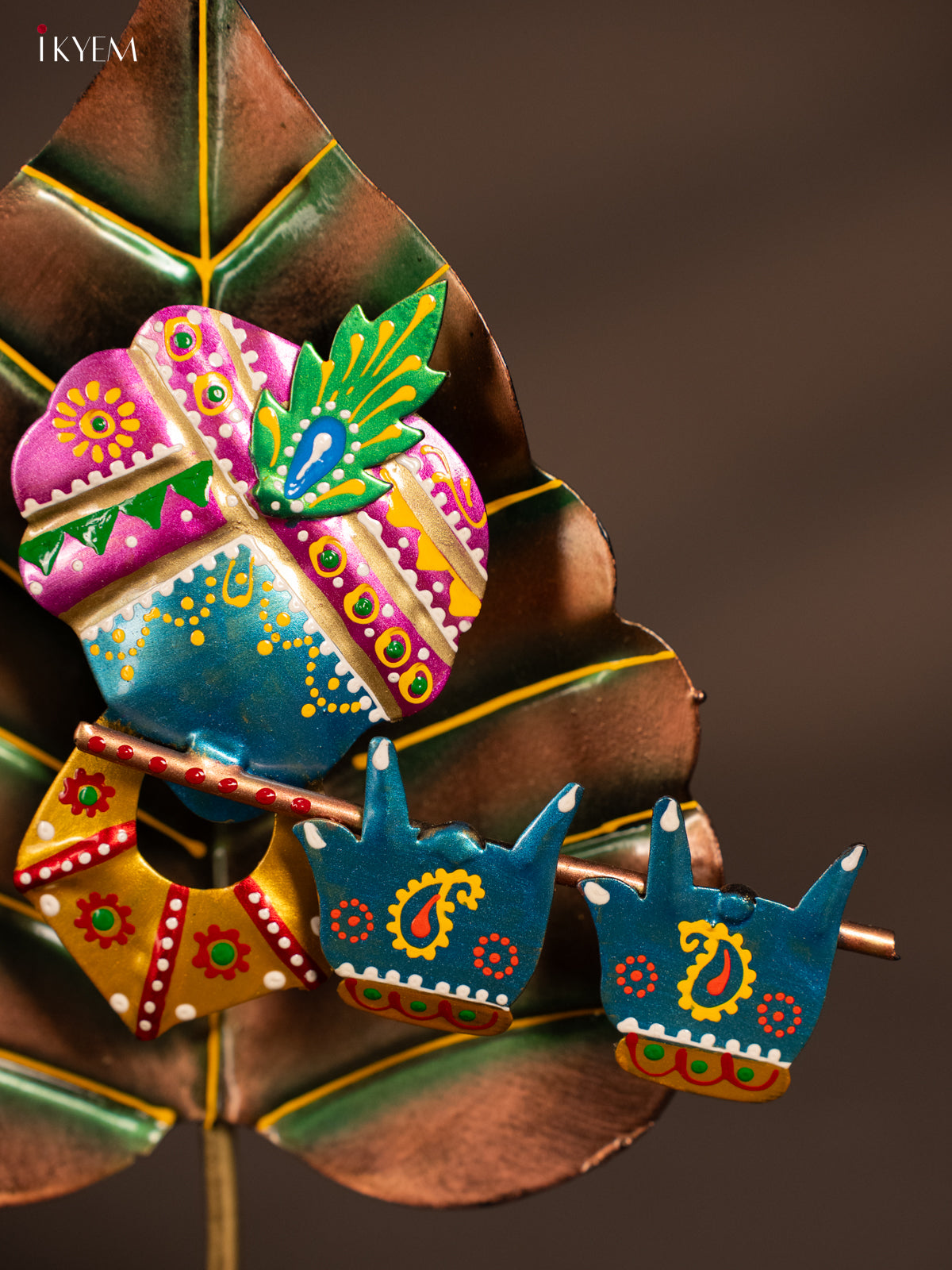 - This 10-inch Metal Hand Painted Leaf Krishna T-Lite Candle Holder features detailed artistry inspired by Lord Krishna’s leaf symbol.