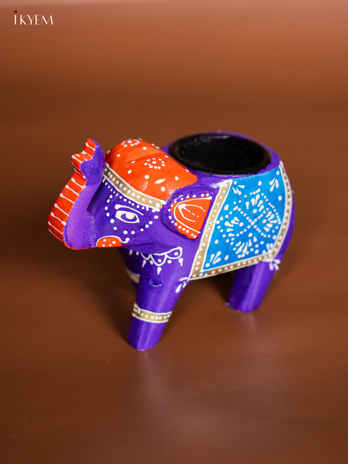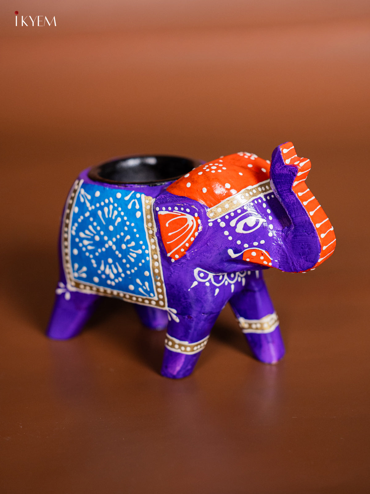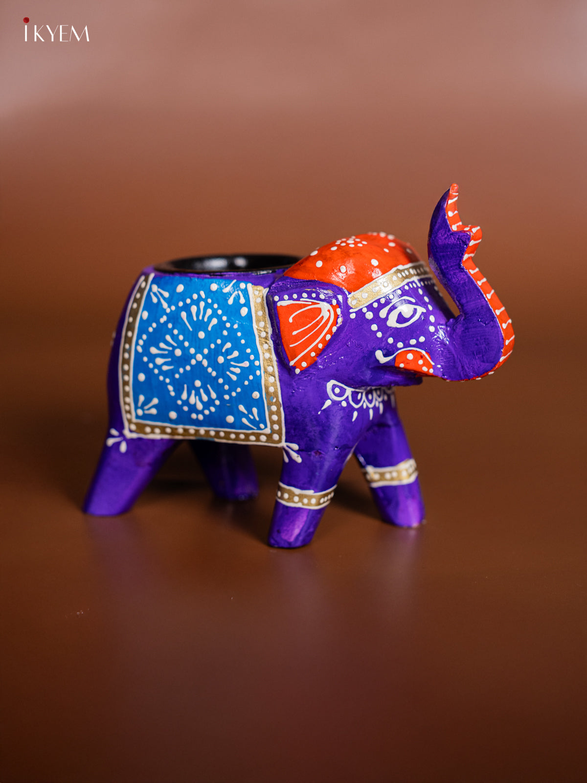 Hand-painted Wooden T- Light Elephant - Violet - 4 Inch - KJ06180