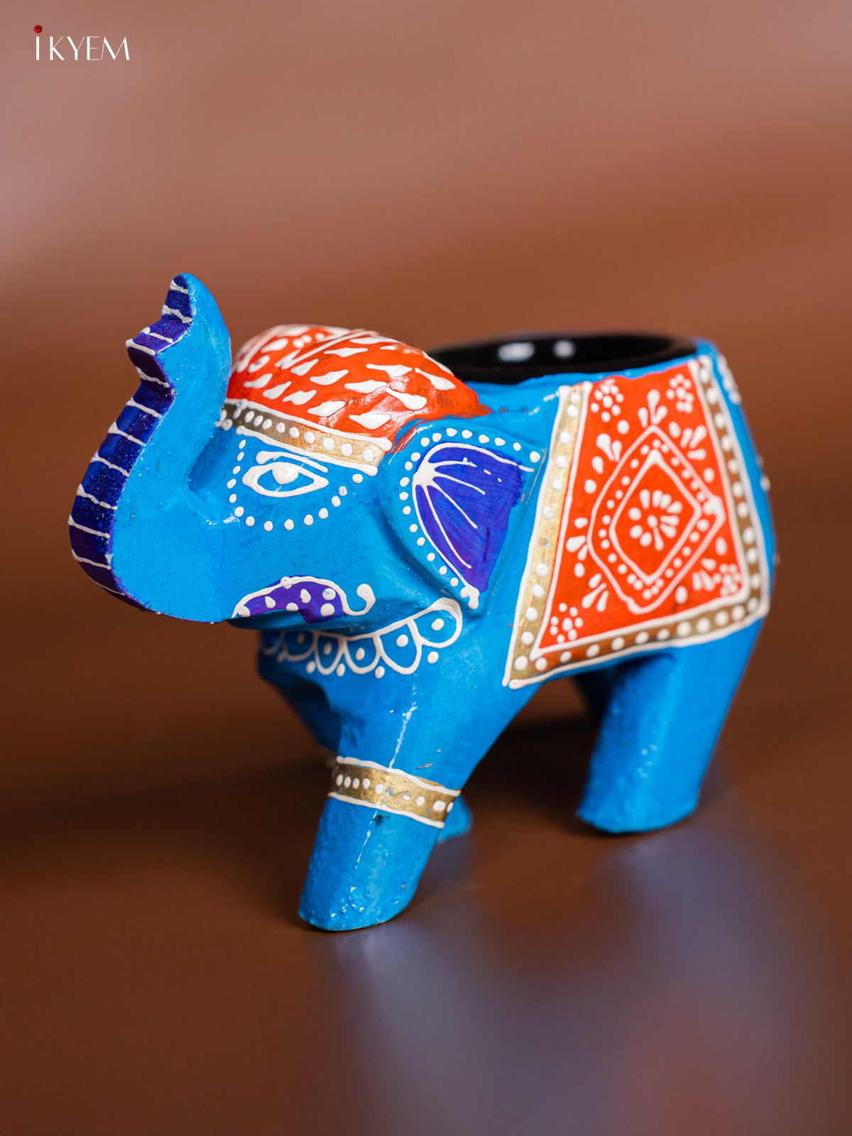 Brighten your decor with the Hand-painted Wooden T-Light Elephant, a charming decorative candle holder perfect for homes, festive setups, and gifting. This beautifully hand-painted piece measures 4 inches height × 2 inches breadth × 5 inches length, adding vibrant personality to mantels, shelves, or tabletops.