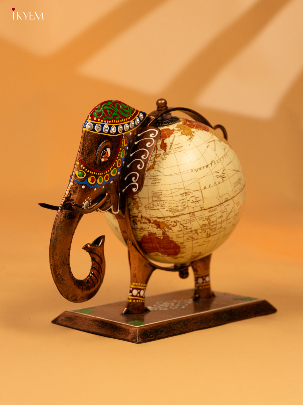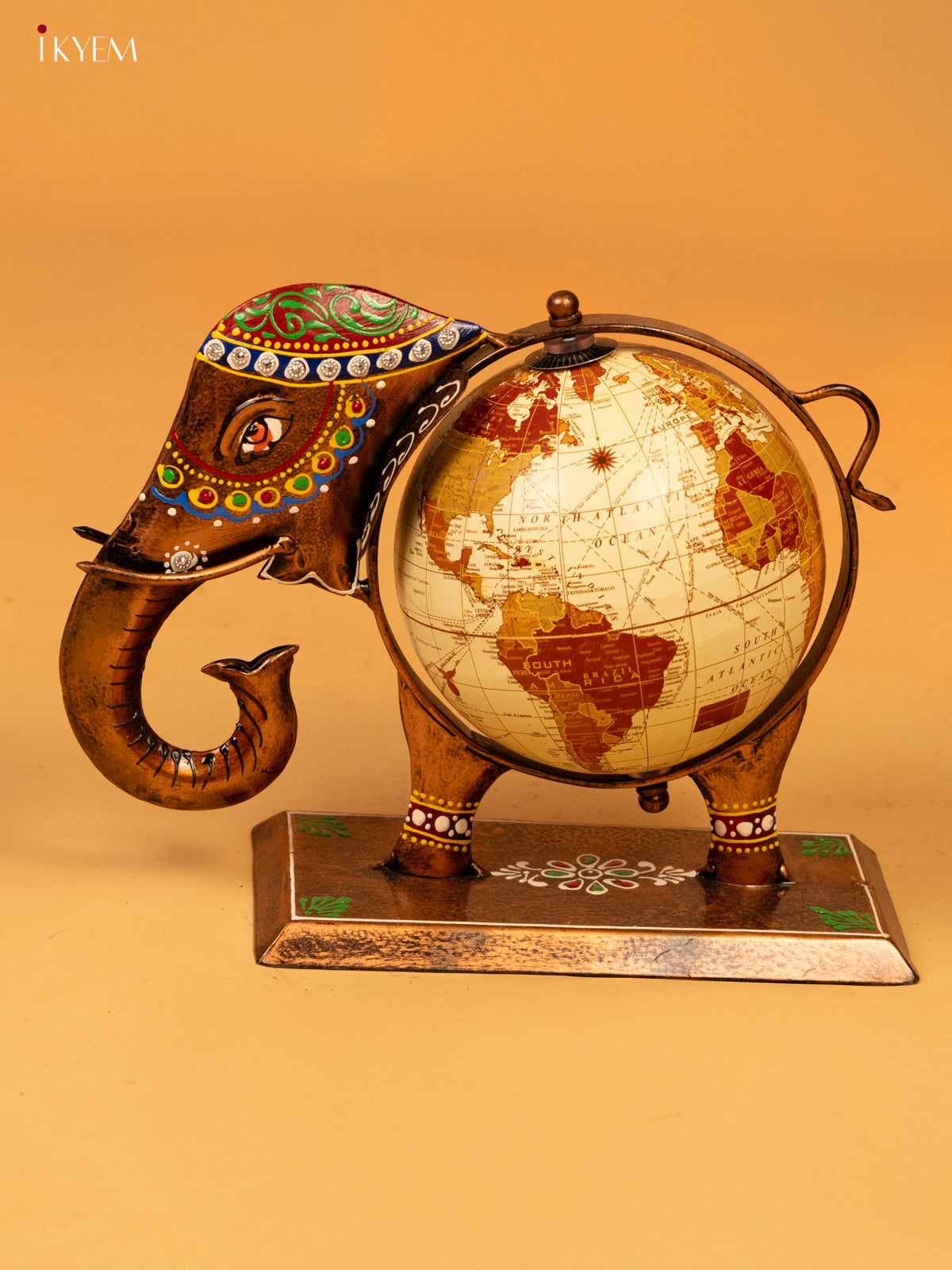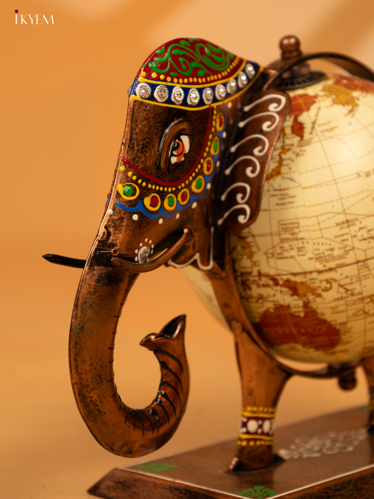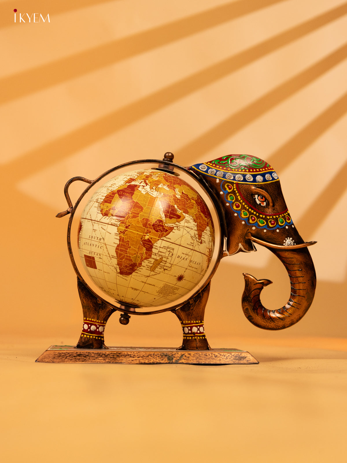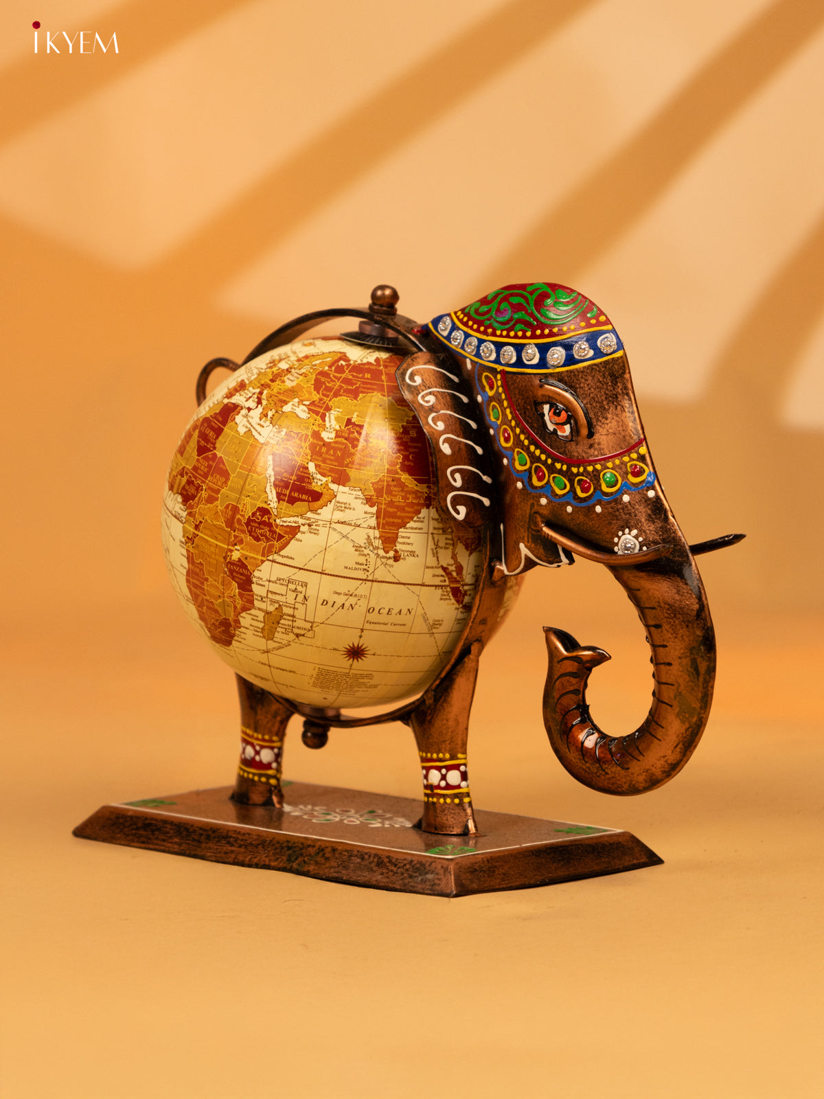 - Expertly crafted from high-quality metal, this decorative elephant globe will add a touch of sophistication to any room.