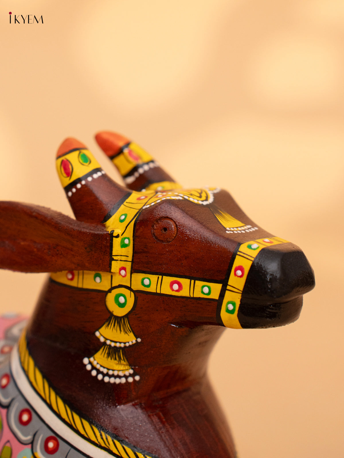 Hand-Painted Wooden Nandhi - Pink - 7 Inch - KN15124