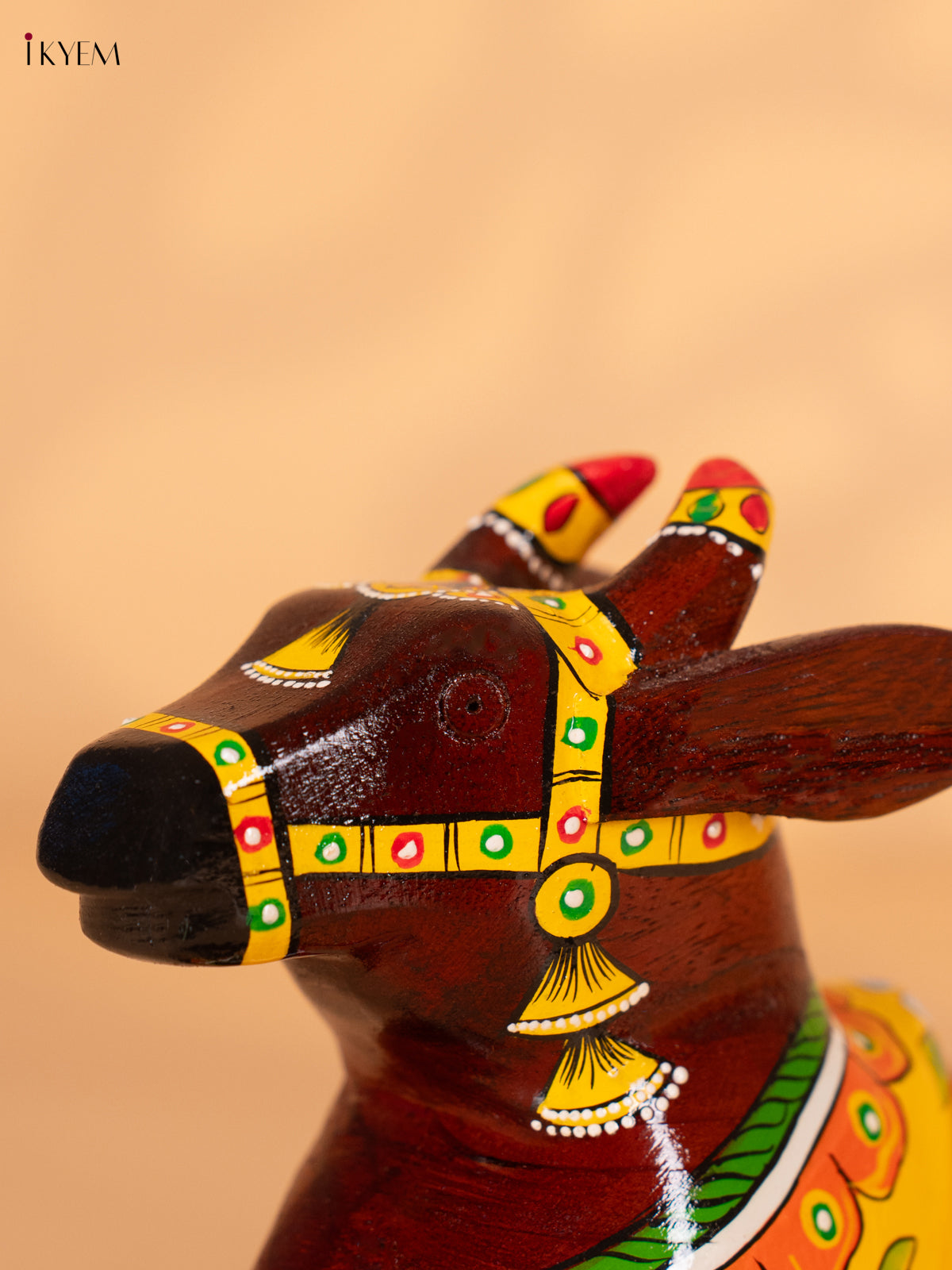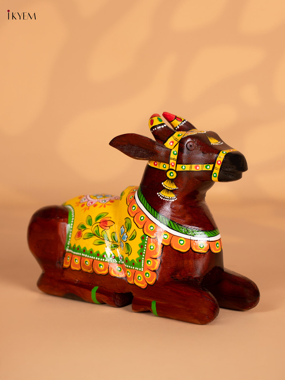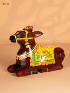 Hand-Painted Wooden Nandhi - Yellow - 7 Inch - KN15125