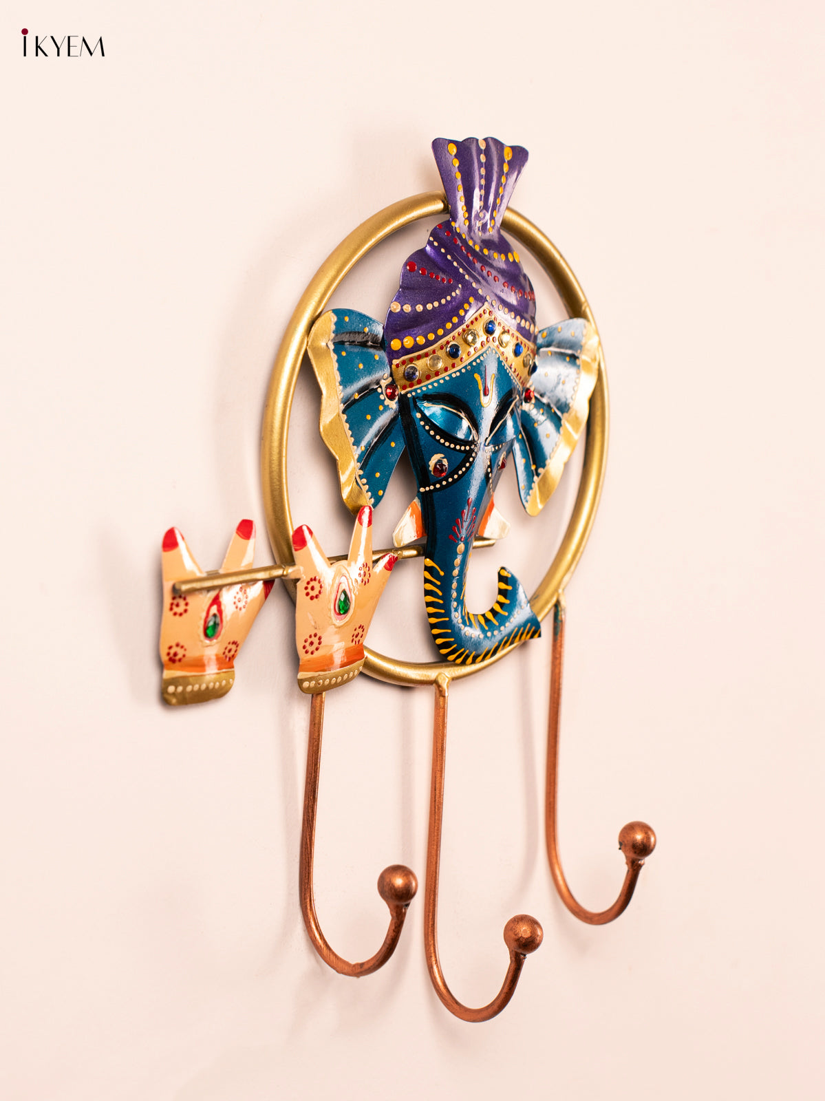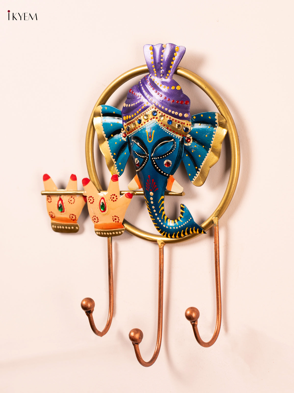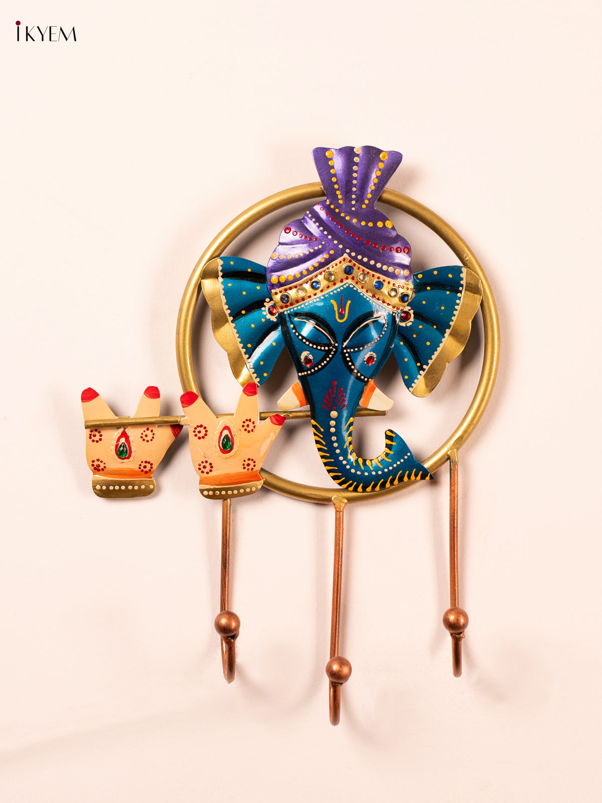 - This metal painted wall Ganesh with three hooks is designed to offer a blend of devotional significance, decorative appeal, and practical utility