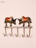 - This metal painted wall decor with two OX and 5 hooks is designed to combine traditional symbolism, decorative appeal, and everyday utility