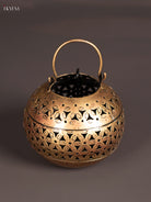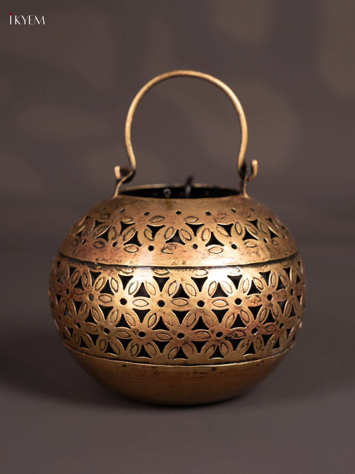 - Designed to hold a tea light candle, the perforated metal body allows warm light to glow through the cutwork