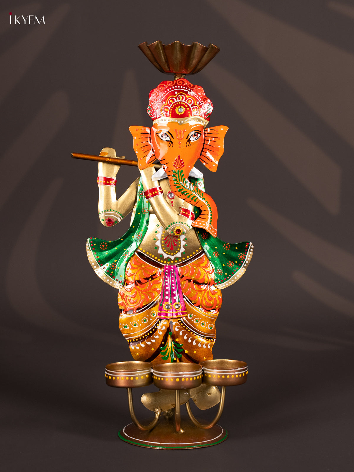 - The Metal Painted Tea Light Ganesha on Stand serves both spiritual and decorative purposes, combining traditional symbolism with functional design