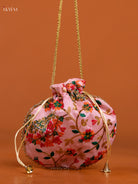Embroidered Floral Design Potli Bag Baby Pink - KD26519