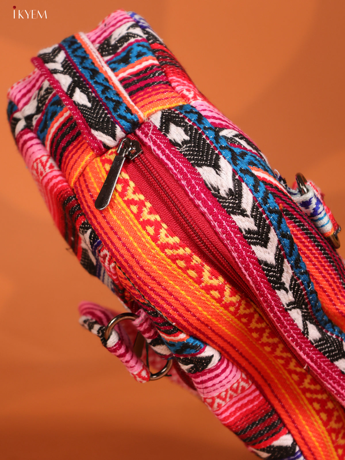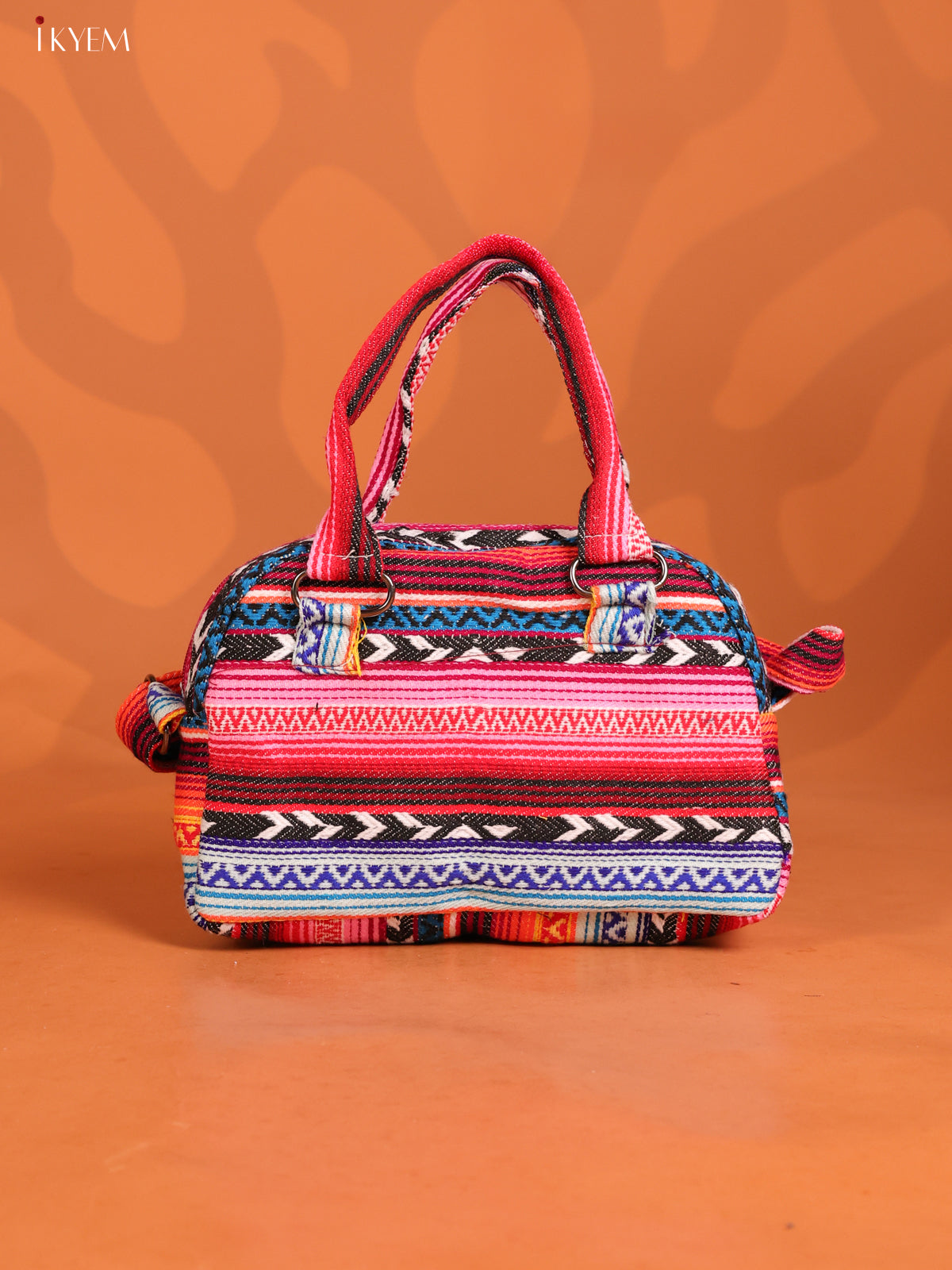 Jute Printed Crushed Sling Bag with 2 Compartments - Multicolour -