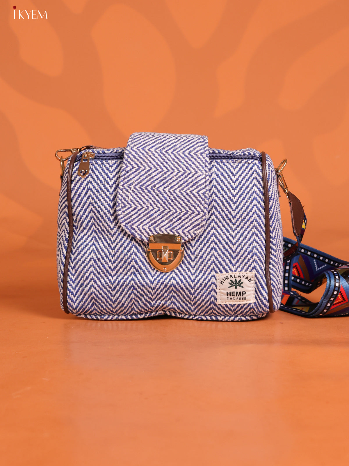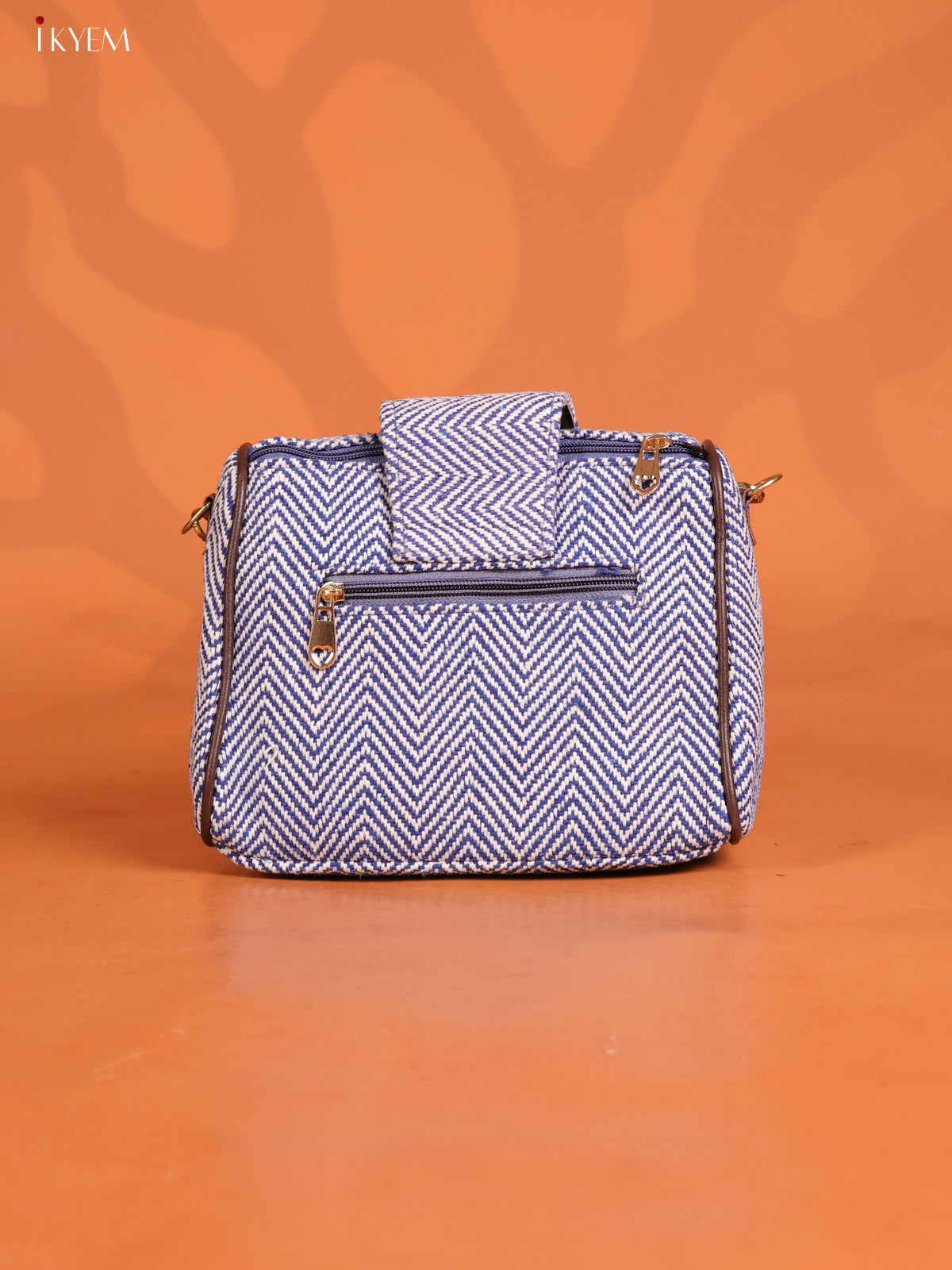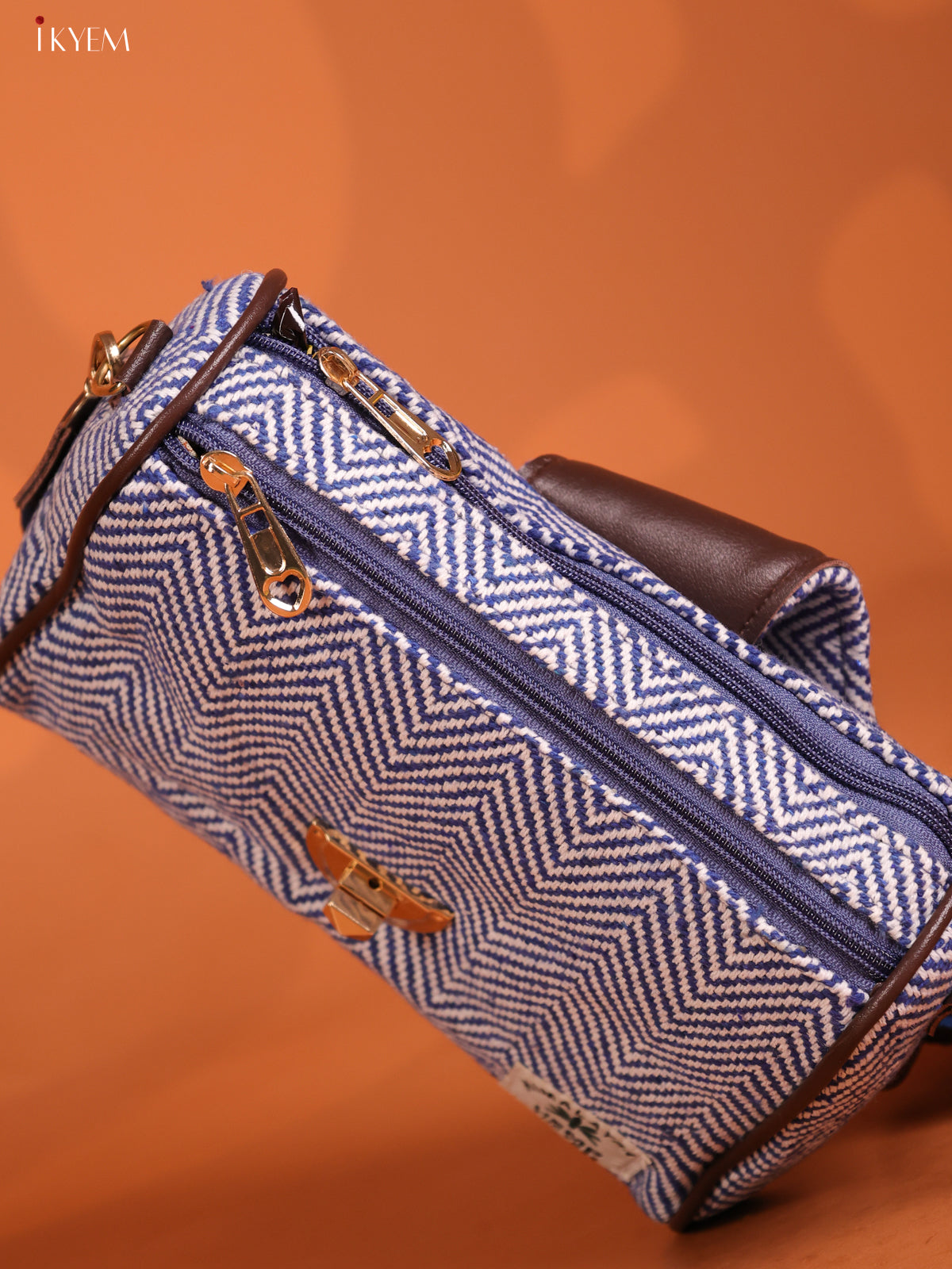 Jacquard Zigzag Pattern Leather Sling Bag Gusset & Flap with 3 compartments - Navy Blue - KD26836