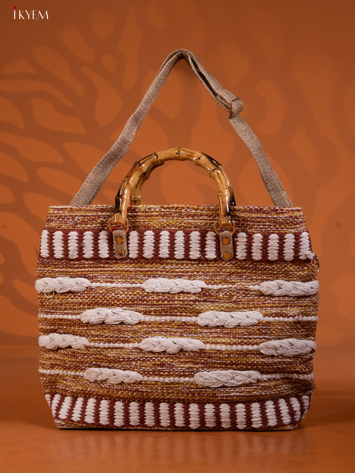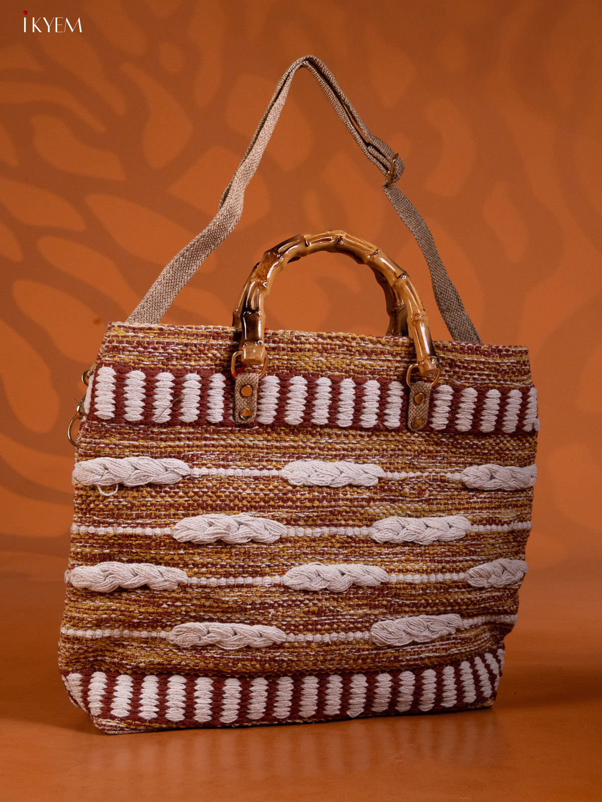 • Elevate your style with our Brown Jacquard woven rugs Tote Bag & sling.