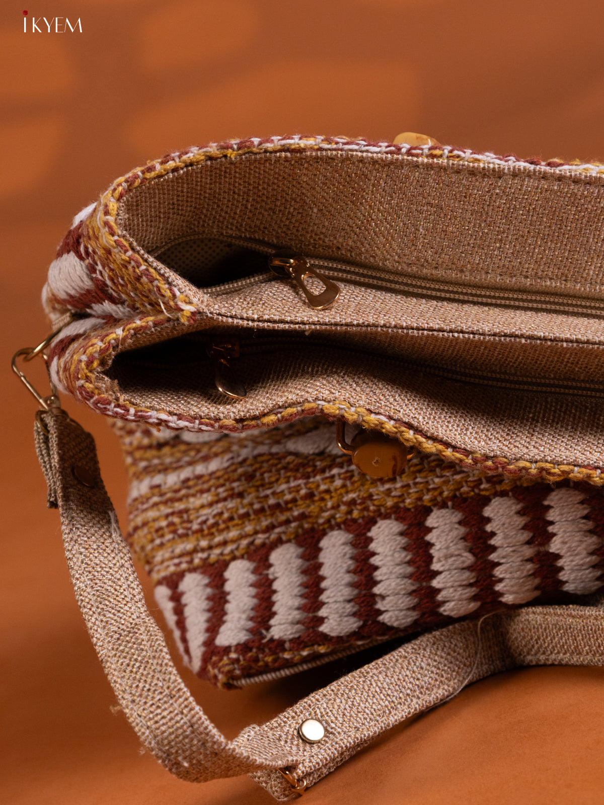 Jacquard woven rugs Tote Bag & sling with 2 compartments - Brown - KE16250